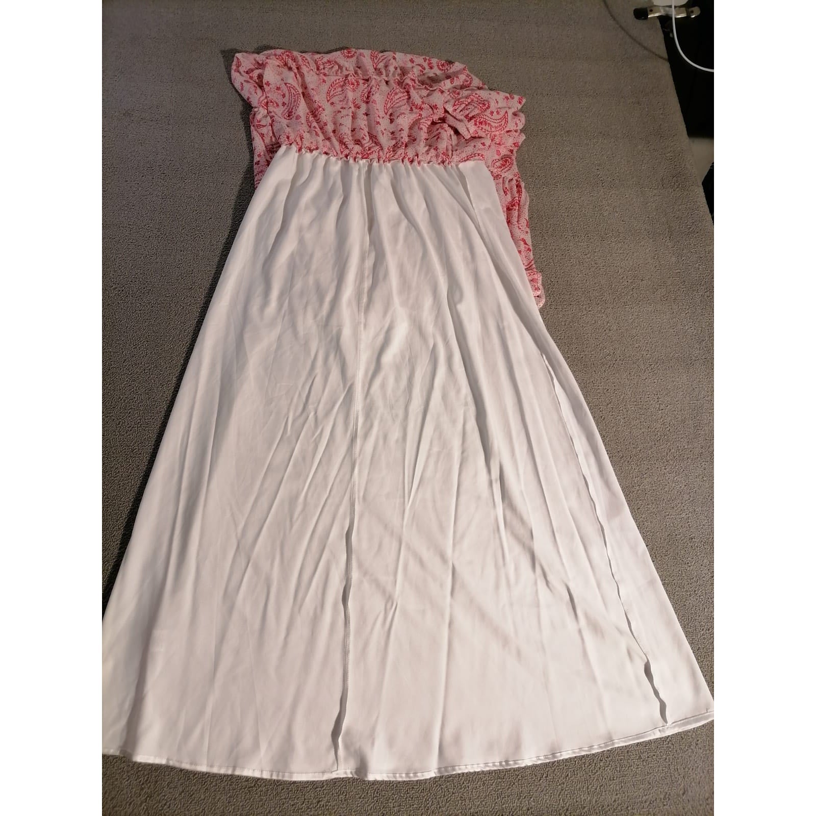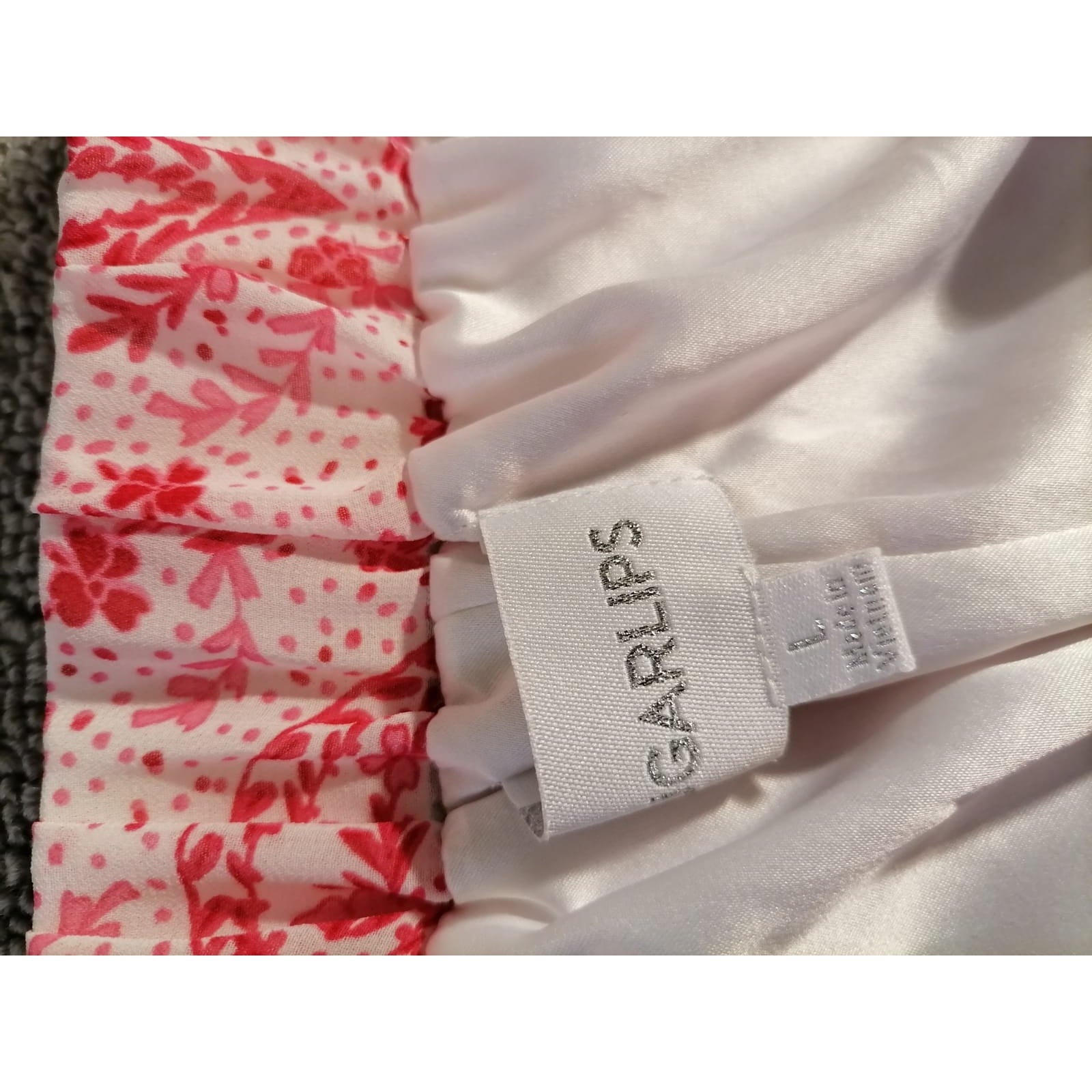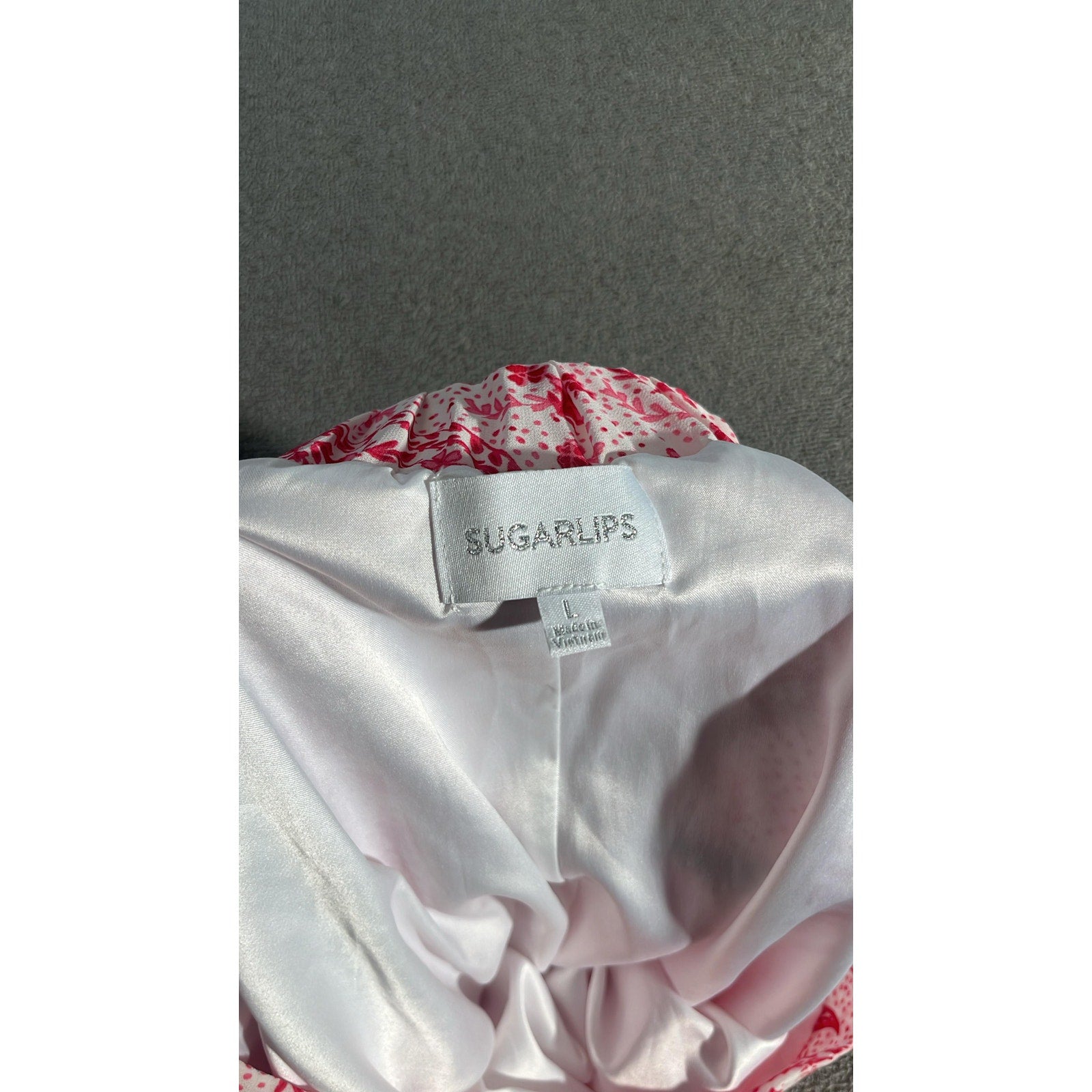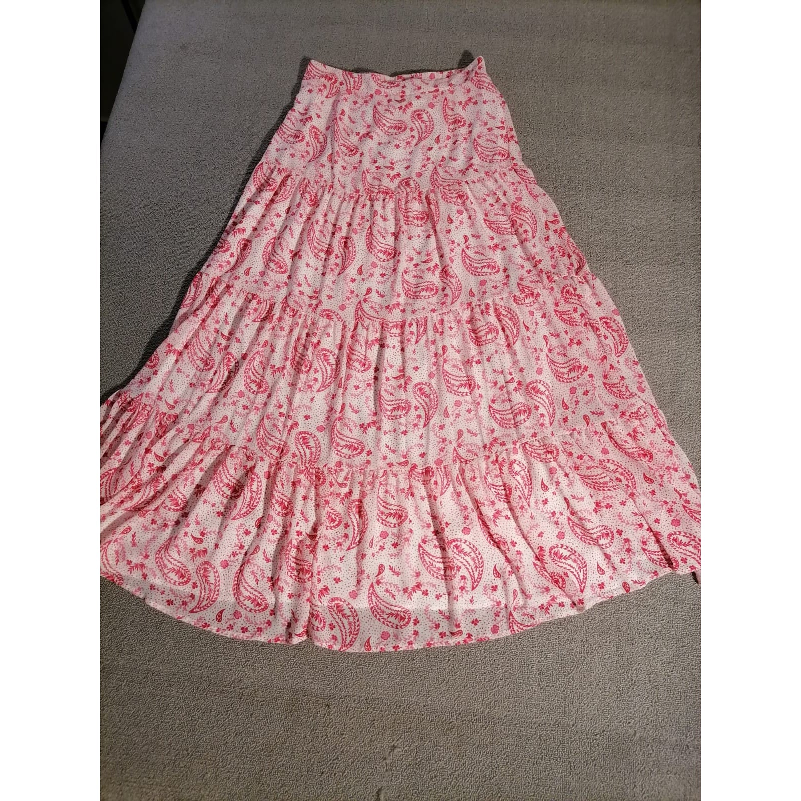 Soft-tiered maxi skirt by Sugarlips, featuring a delicate pink and red paisley print on a flowing lightweight fabric. Looks gently worn, with slight light wear but no visible stains or defects.