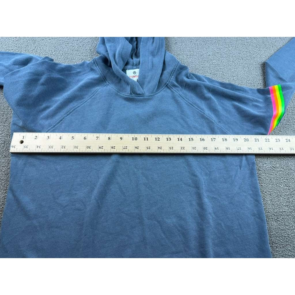 Sundry Pullover Hoodie Women 1 Blue Rainbow Stripe Sleeve Made USA