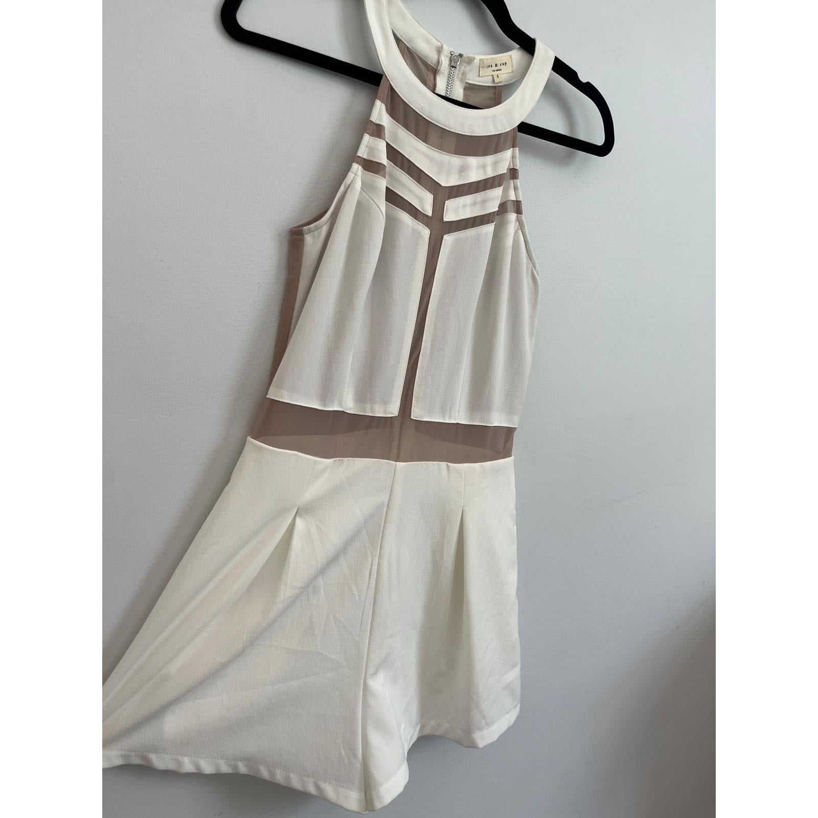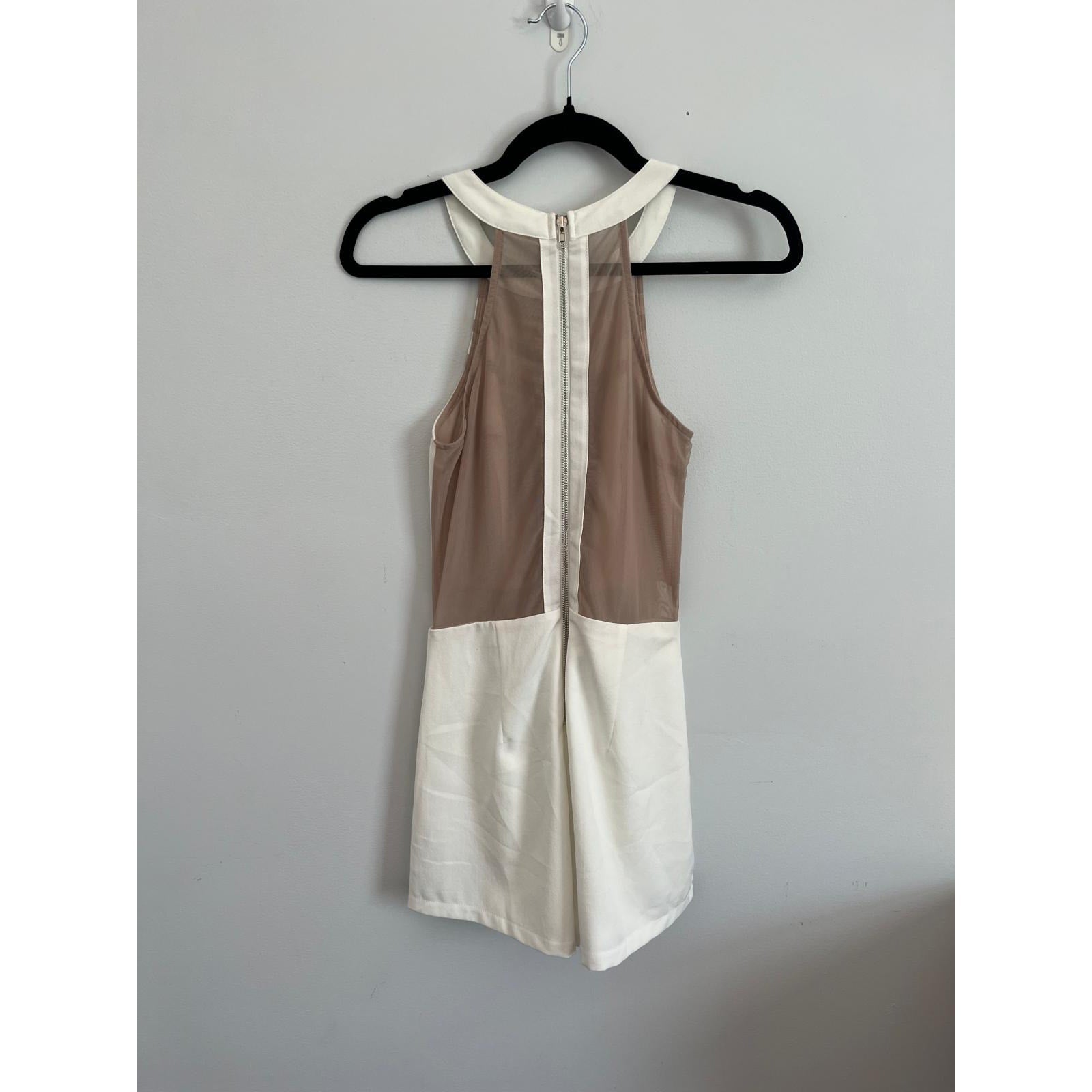 Tea & Cup Romper Women S White Mesh Inset Halter Back Zip Playsuit