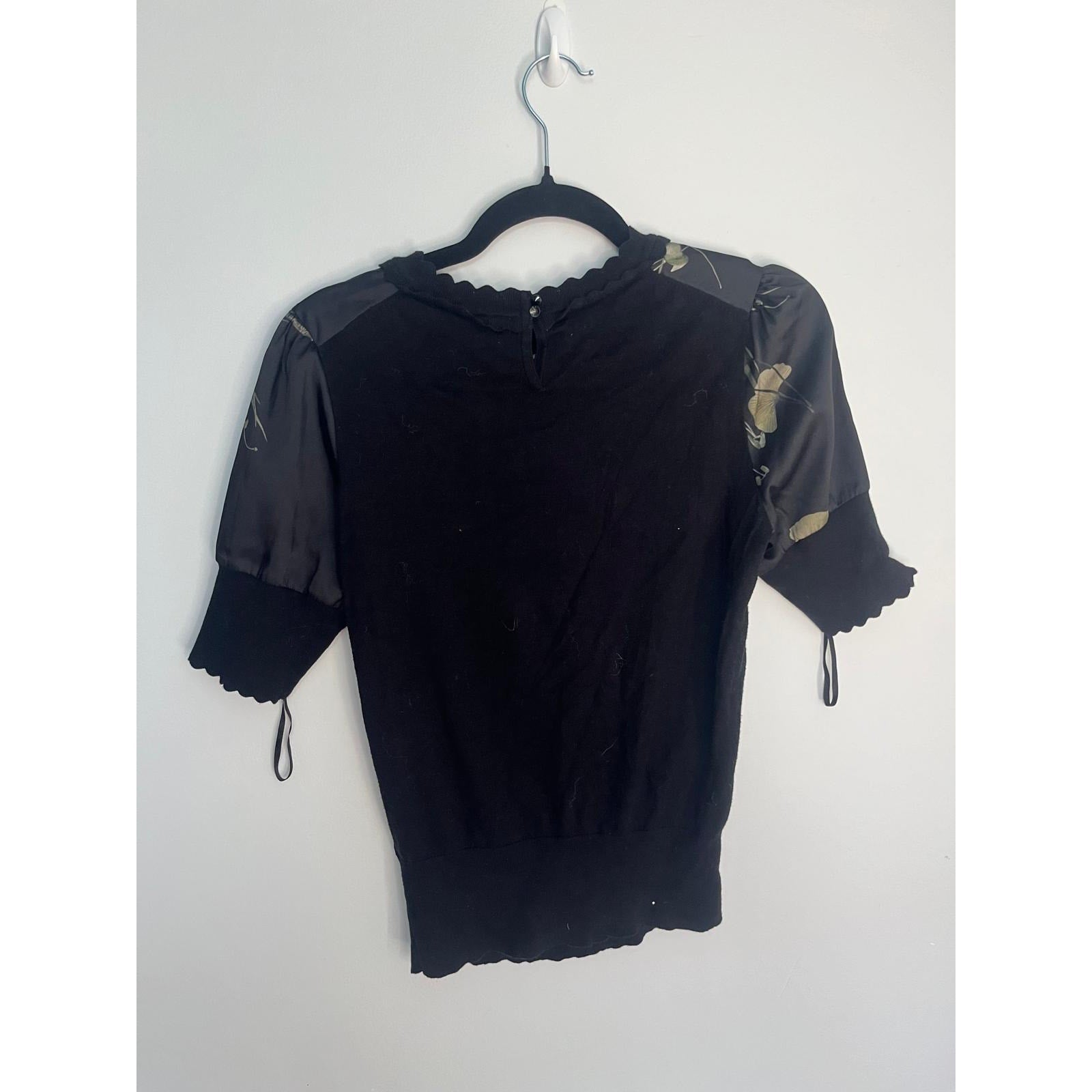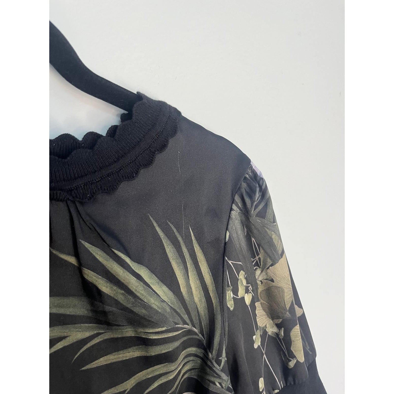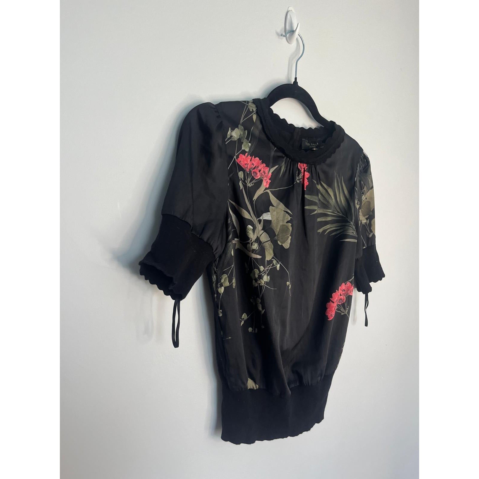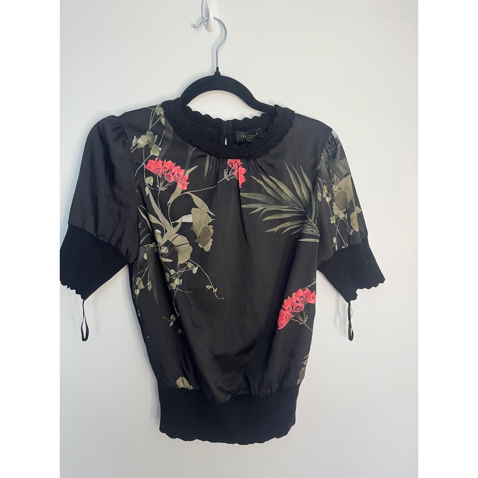 Ted Baker Floral Puff Sleeve Blouse Women Size 1 Black Red Tropical Top