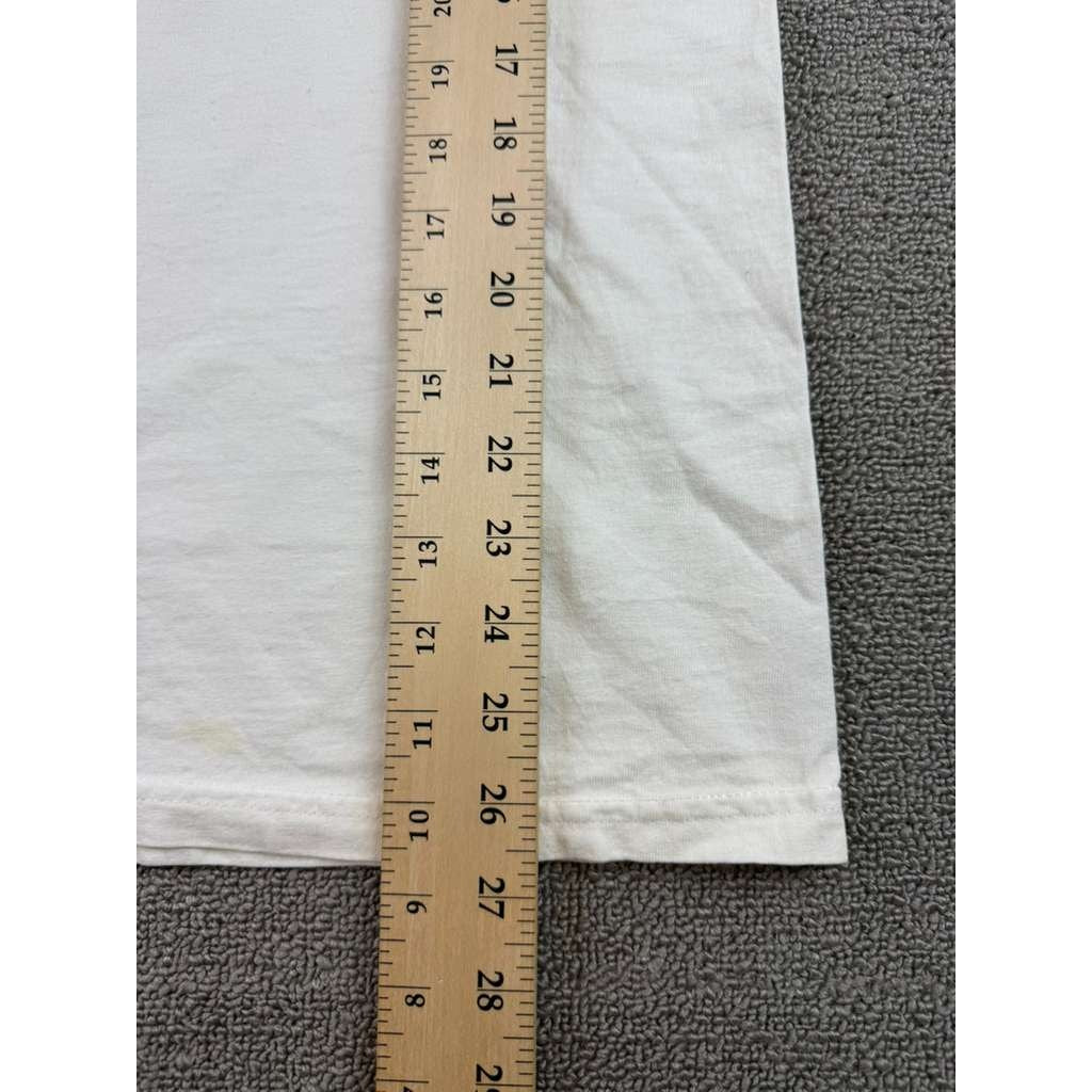 White Disney Store tee with panoramic beach graphic featuring Mickey relaxing by the ocean; classic USA-made cotton with soft worn-in feel and straight hem. Clean minimalist front art with “paradise found” text—great parks souvenir vibe.