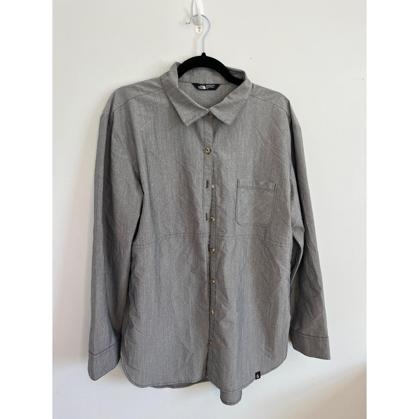 The North Face Button Down Shirt Women L Gray Outdoor Lightweight Casual