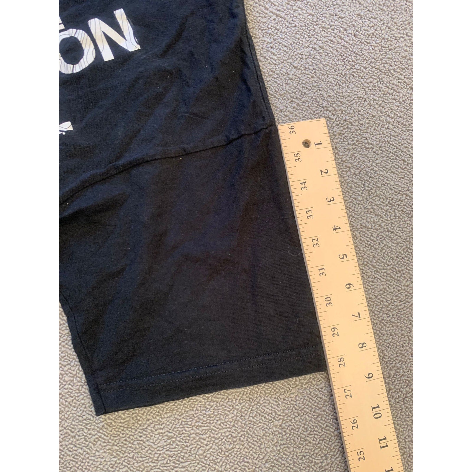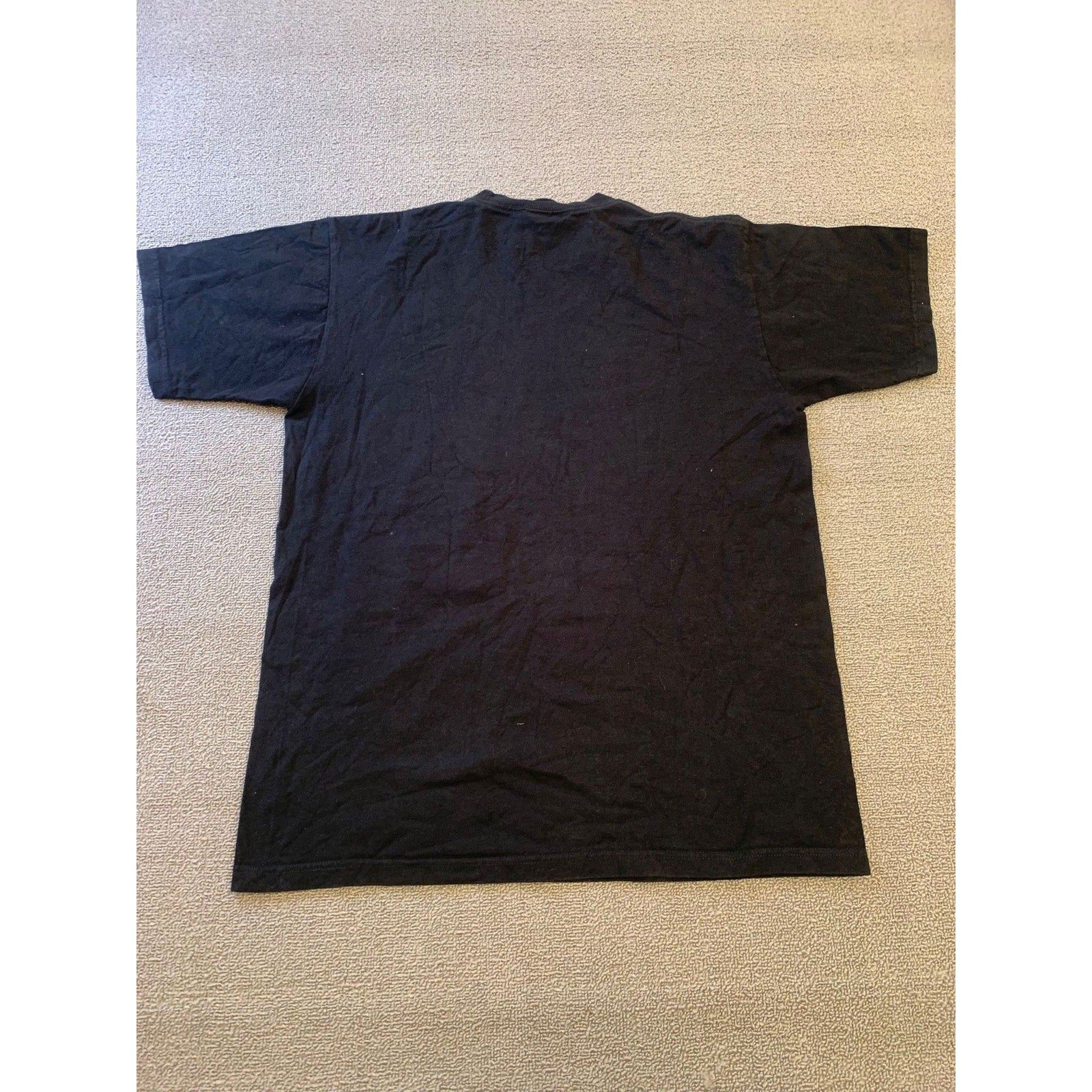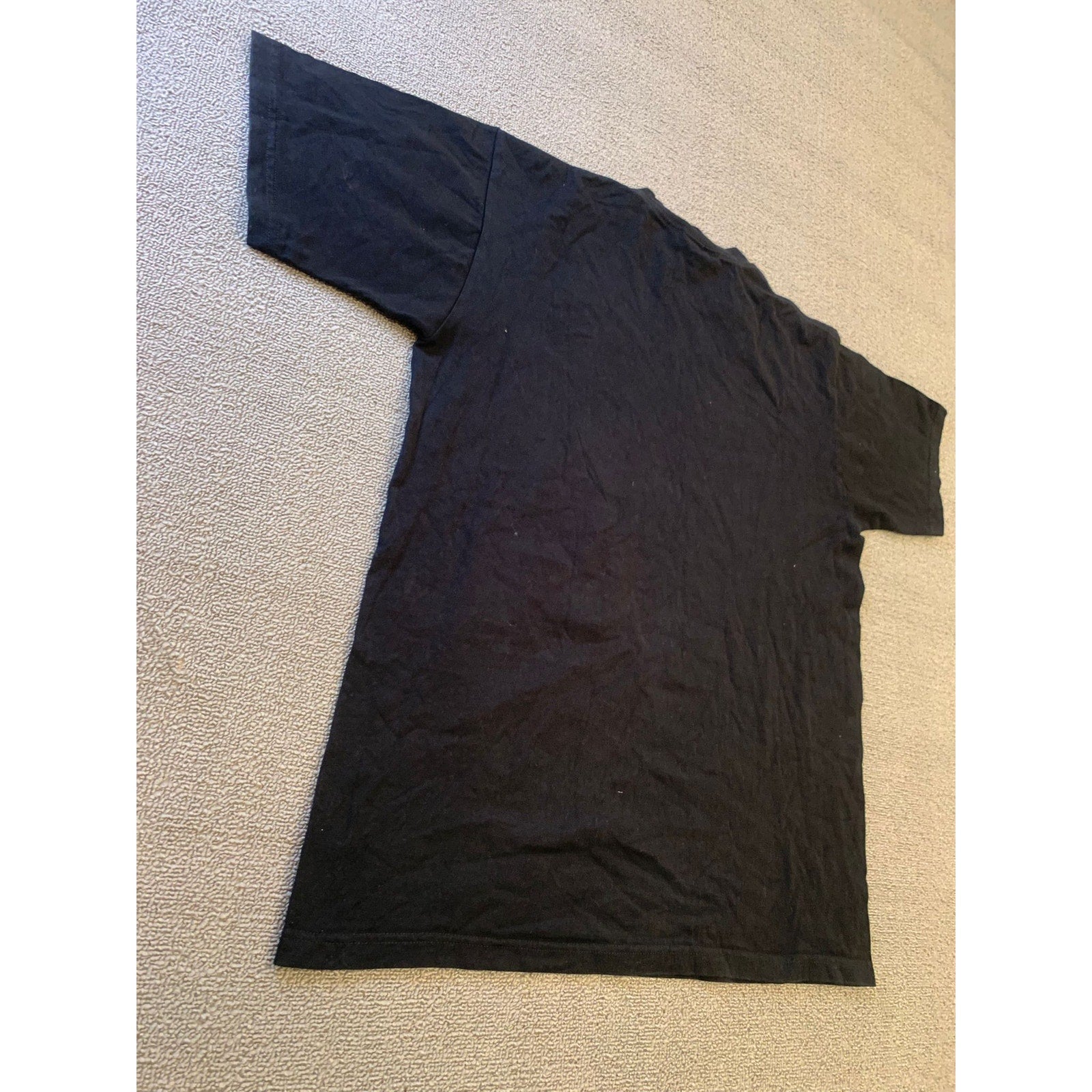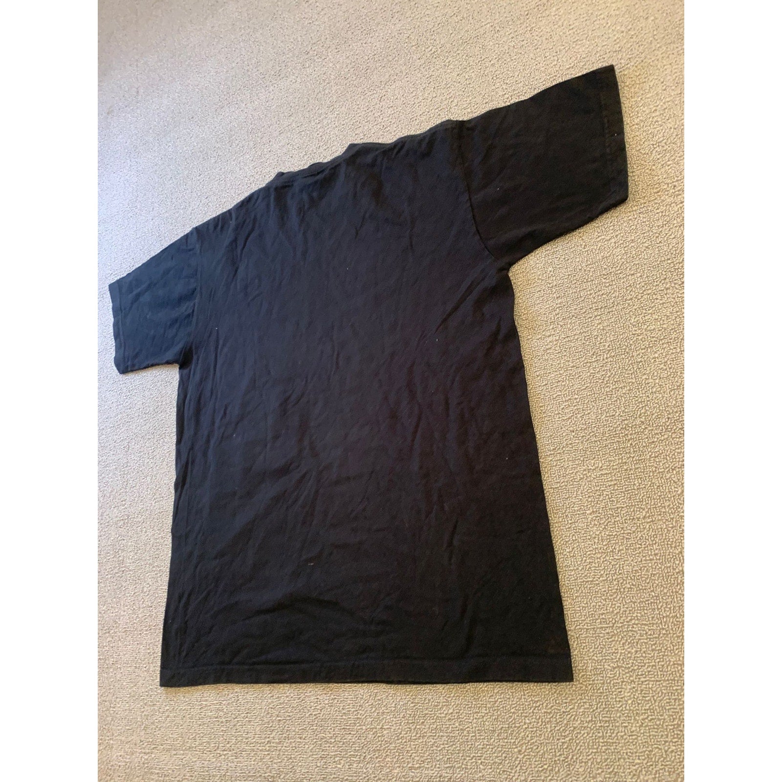 Men’s medium The North Face black crew T-shirt with a prominent vertical logo and topographic graphic print. Outdoor-inspired style in soft cotton—a versatile classic.