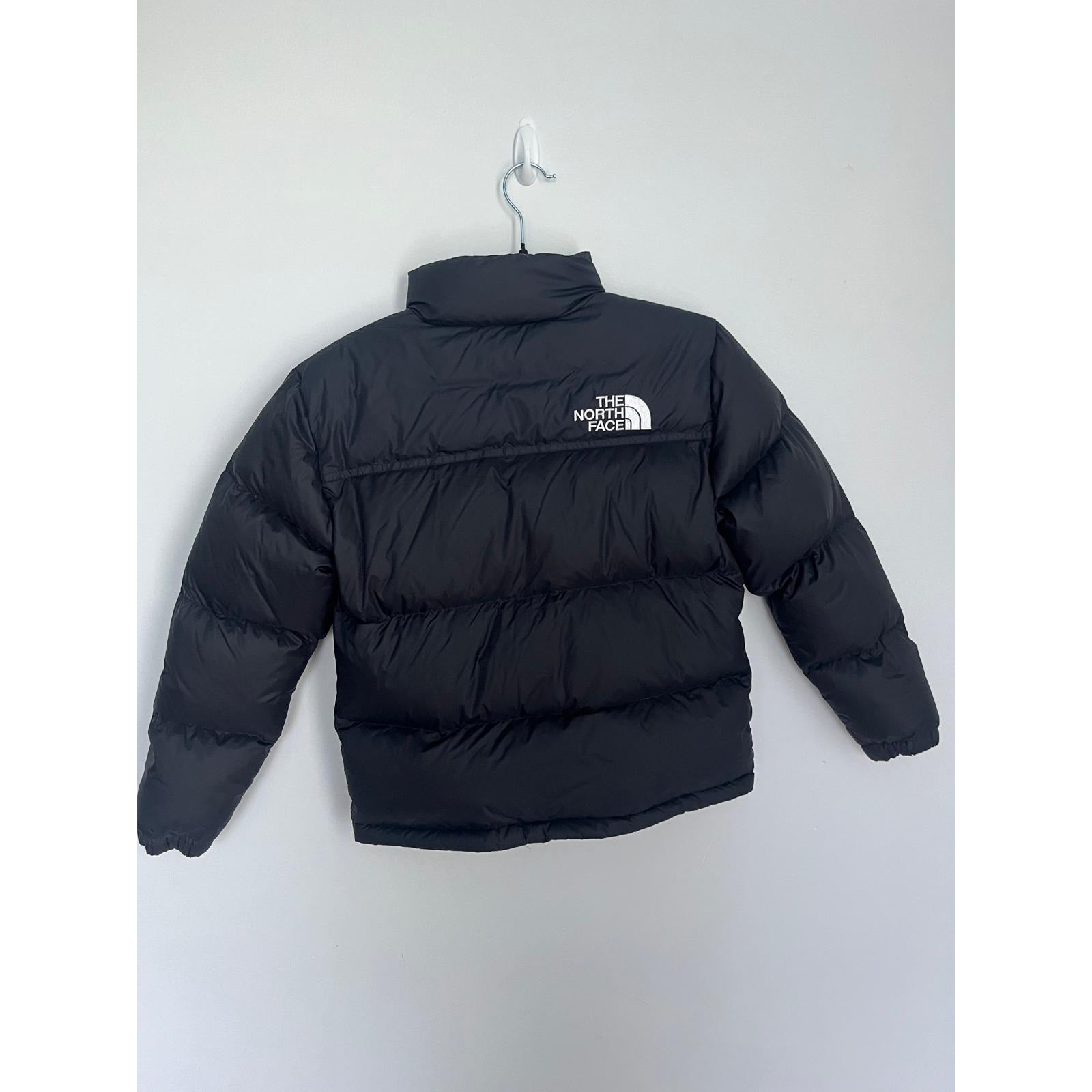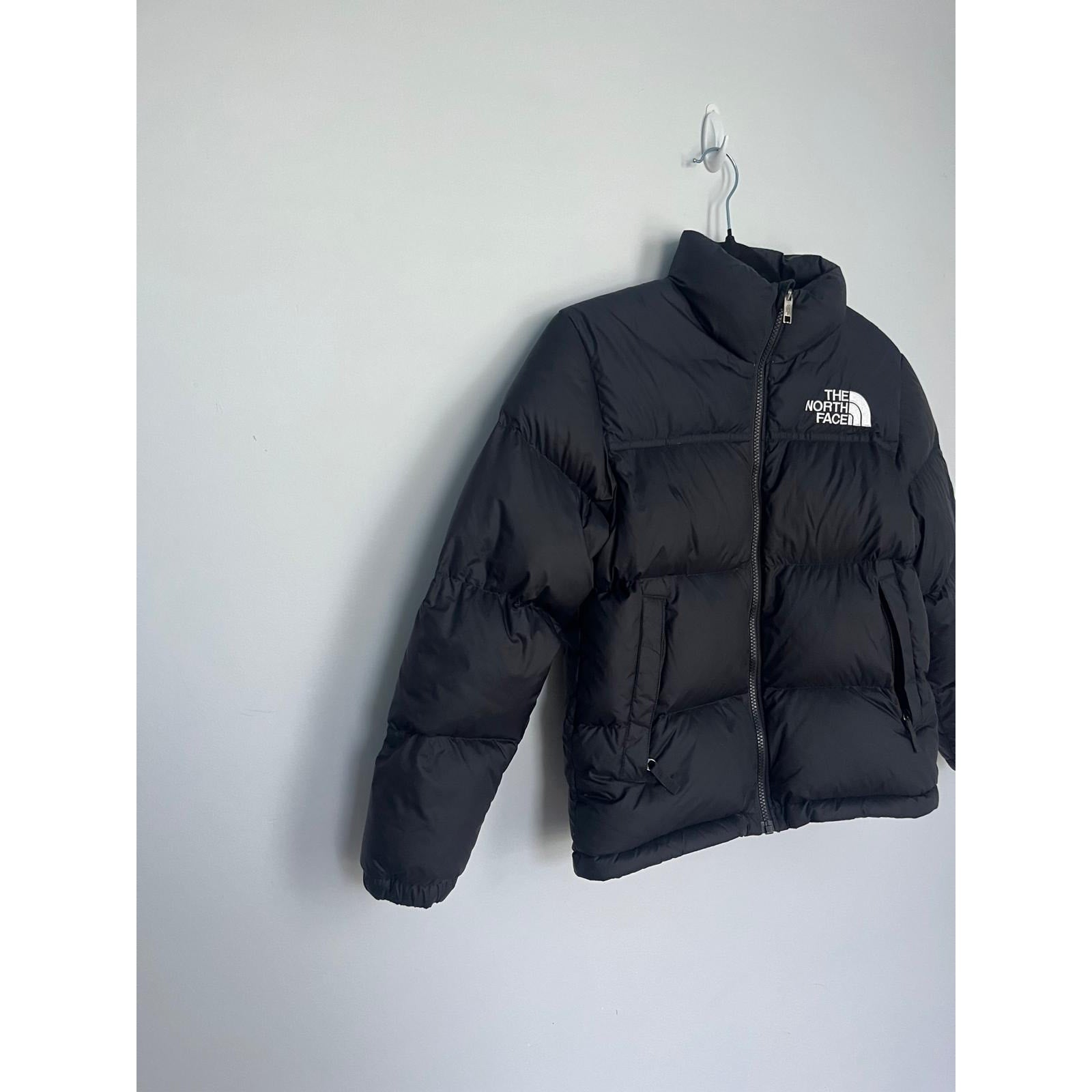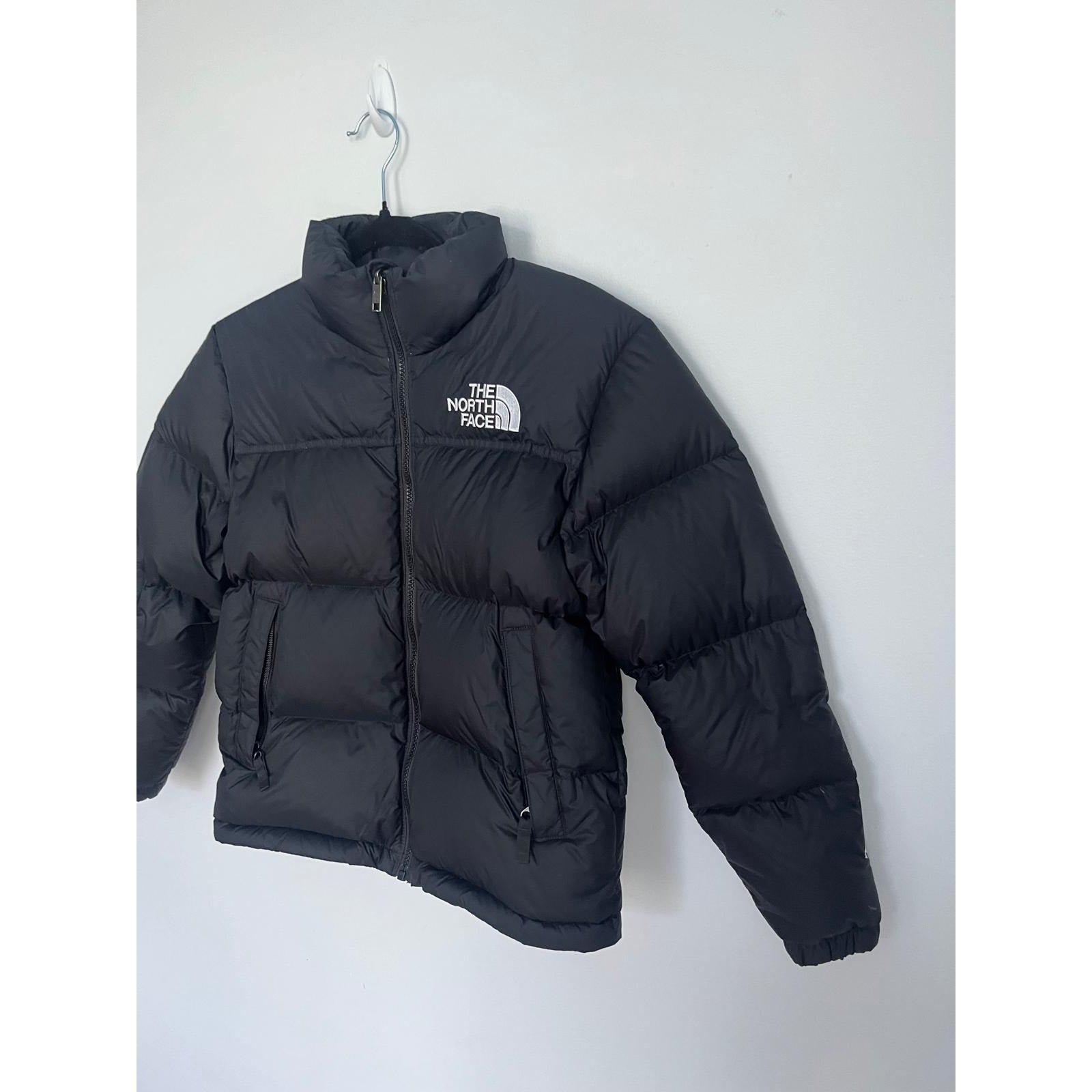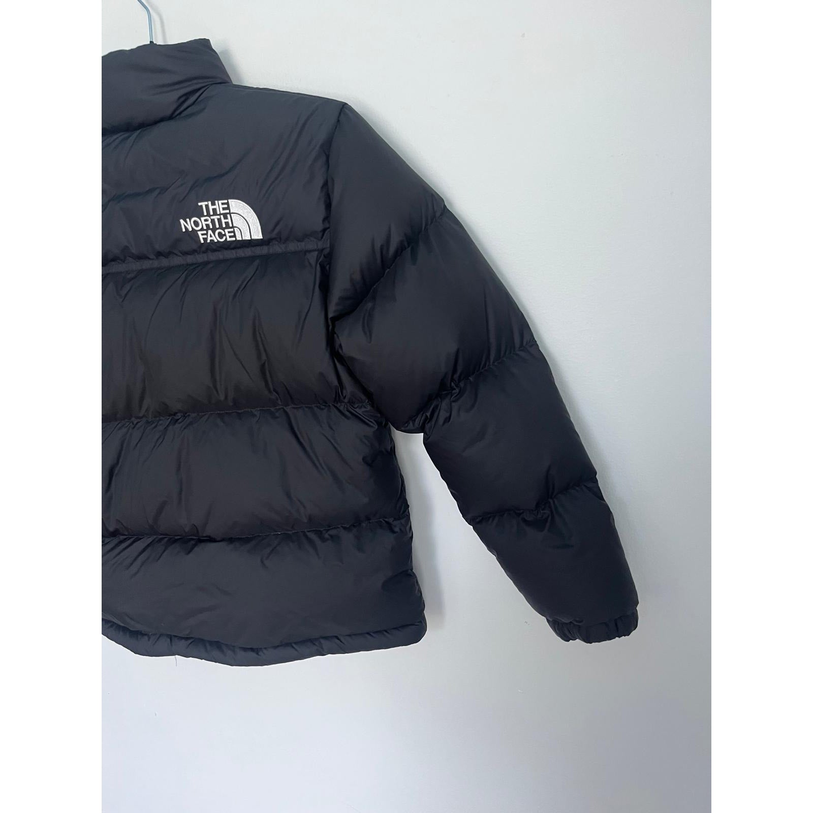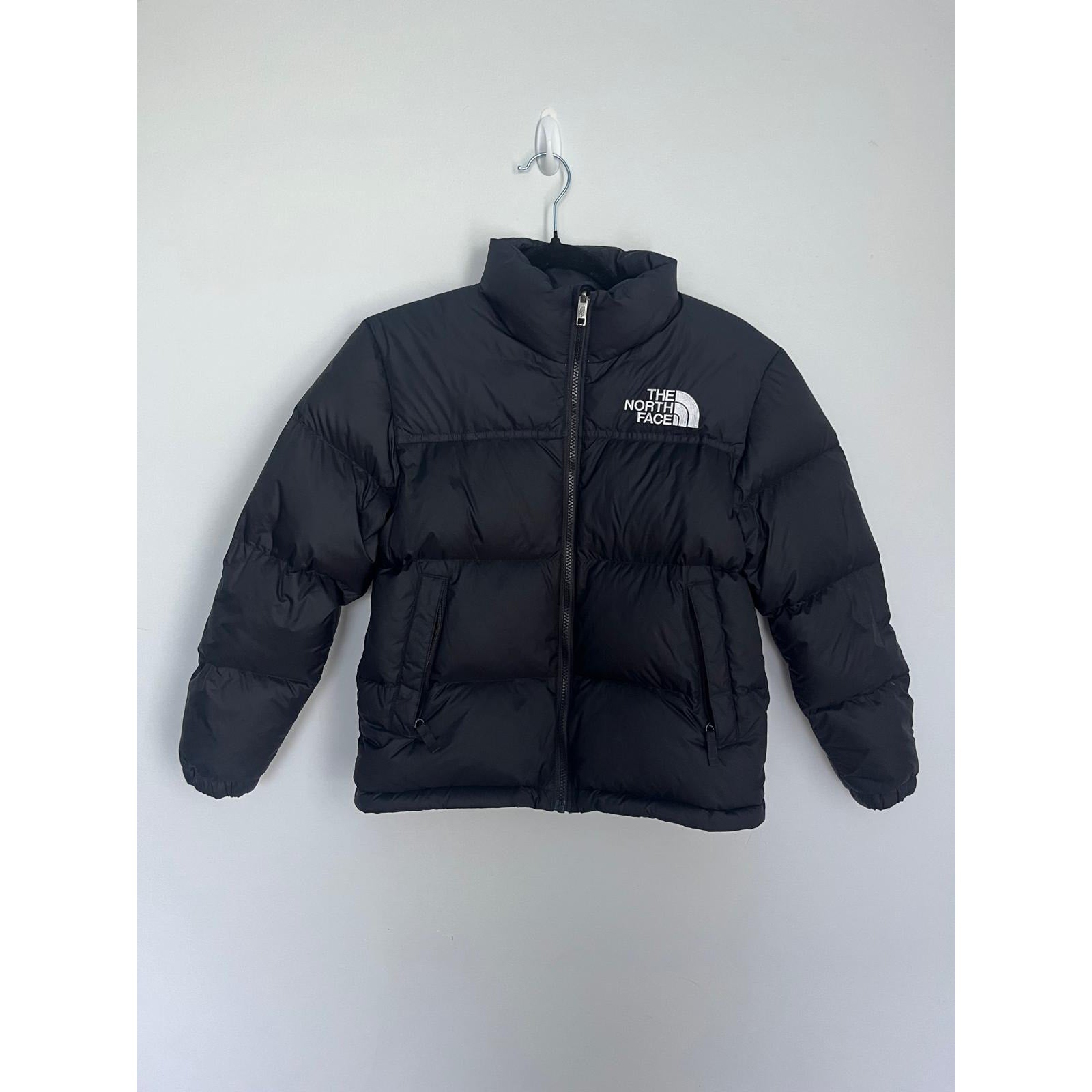Classic North Face insulated puffer jacket in black with zip front, high neck, and two zip pockets. Designed for teen unisex sizing, this piece is warm, durable, and perfect for cold-weather layering.