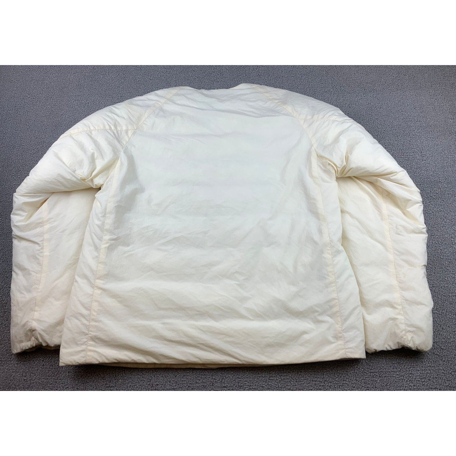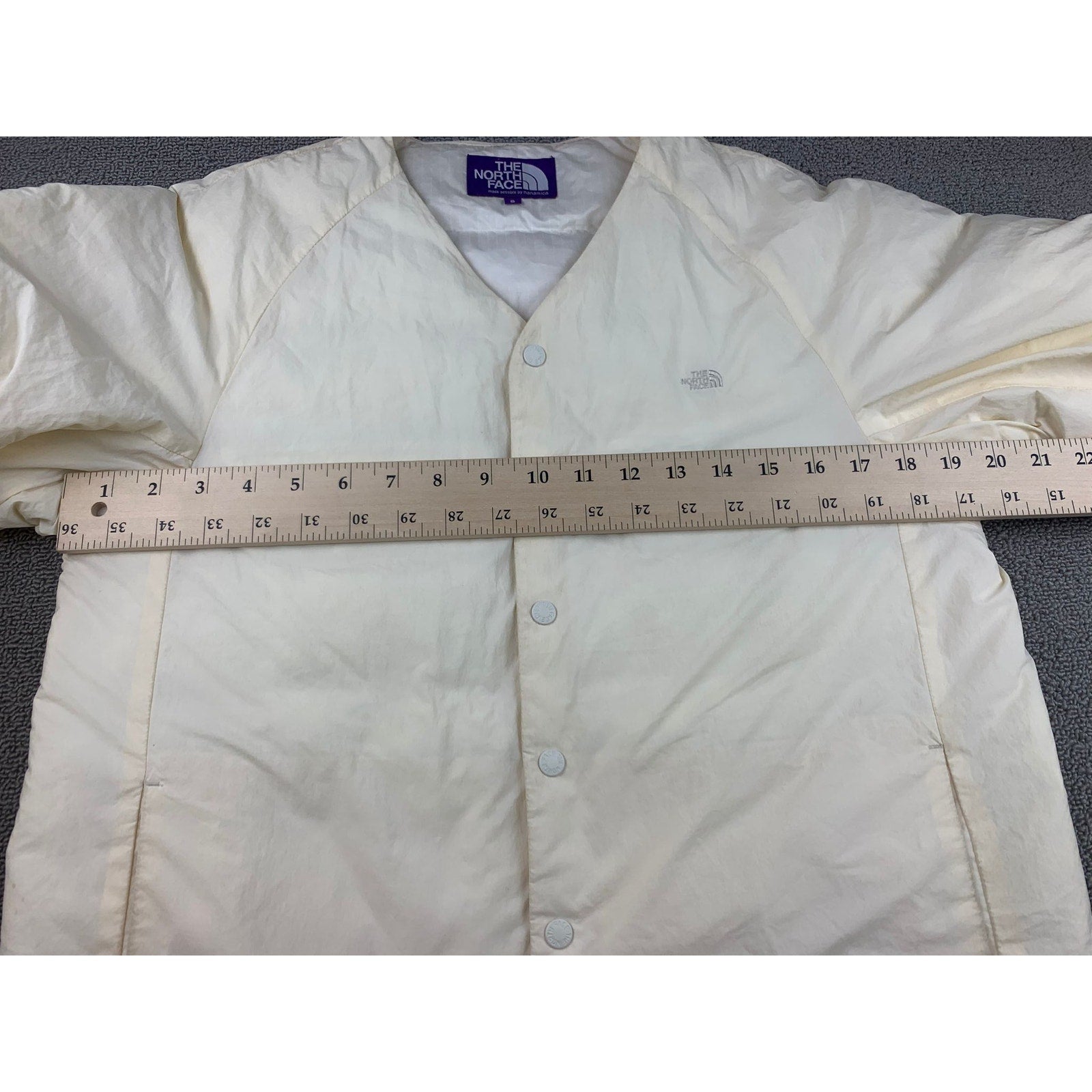 This collaborative piece from The North Face Purple Label and nanamica features a clean cream-colored, insulated jacket with snap-front closure and minimalist V-neck styling. Lightweight yet warm, it blends outdoor functionality with refined design—perfect for layering as a standalone statement piece or under outerwear.