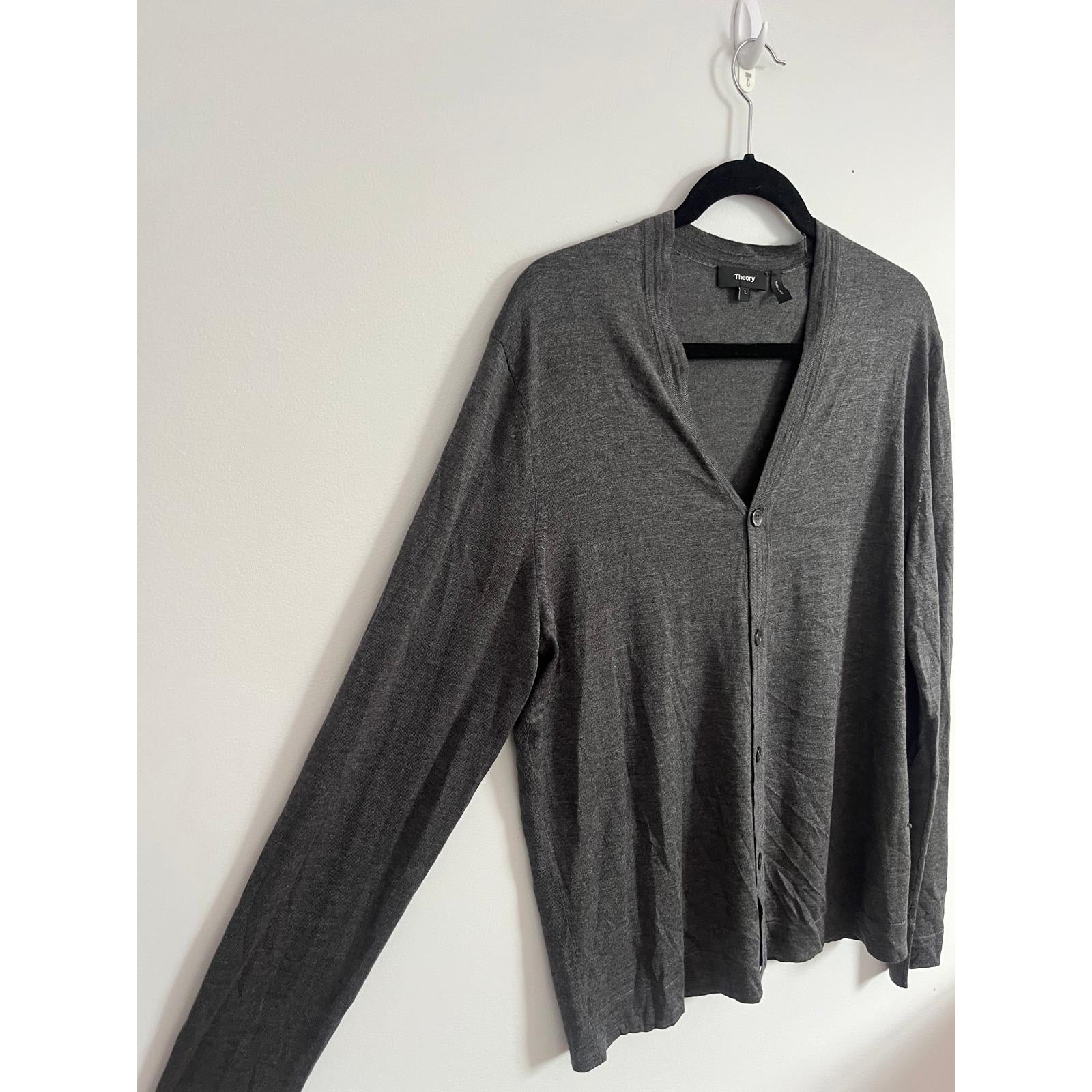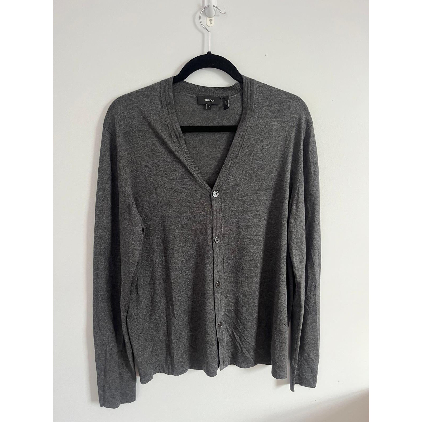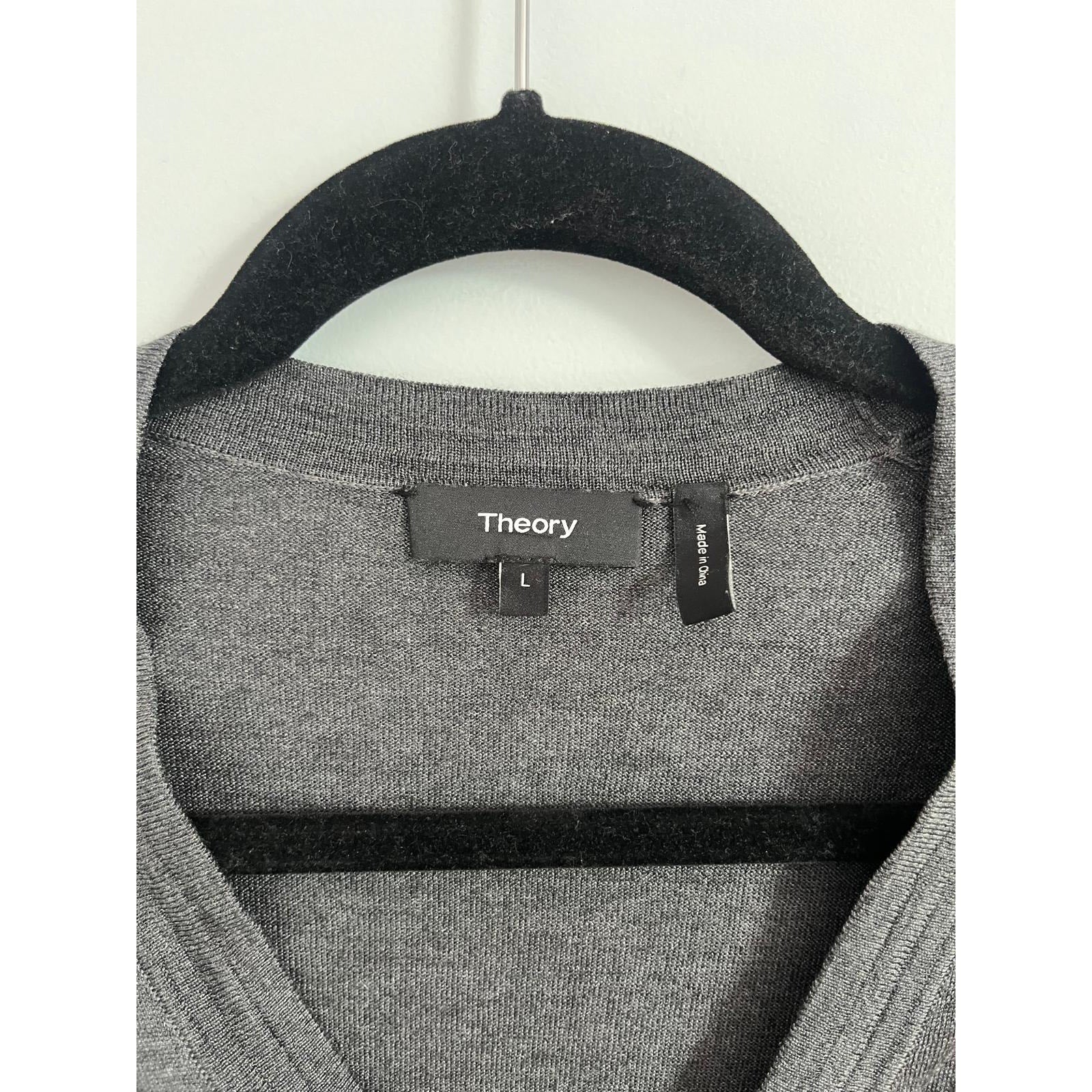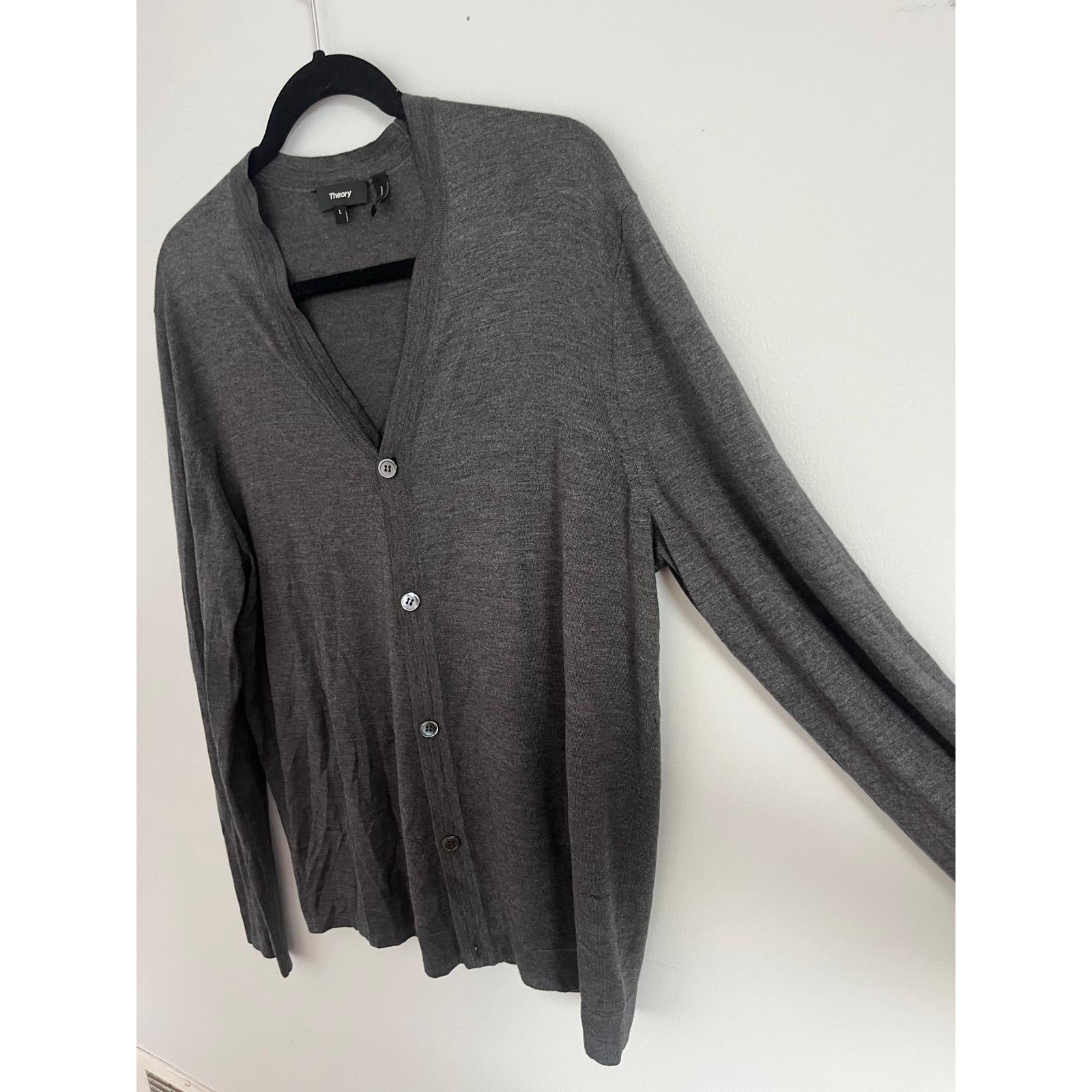 Theory Cardigan Sweater Men L Gray Lightweight Button Front Merino Blend