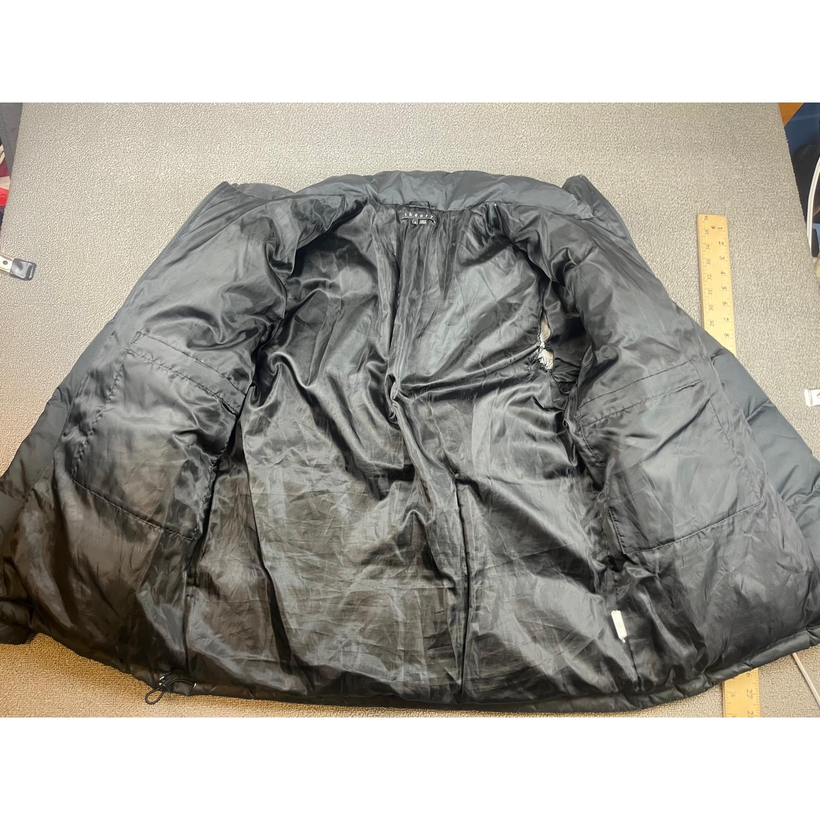 Theory Mens Size Small Down Puffer Full Zipper Black Jacket