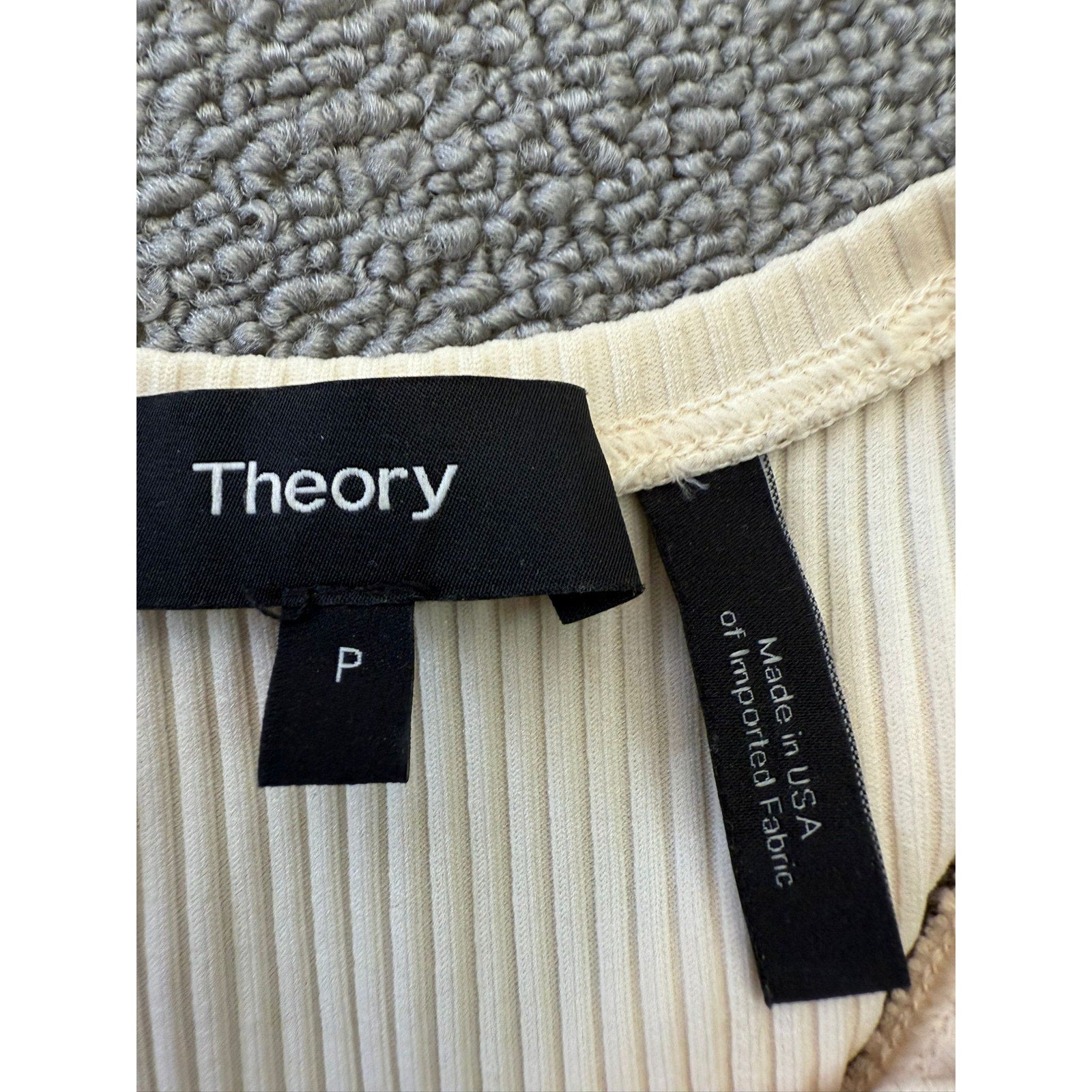 Theory Women's Small Petite Cream White Ribbed Tank Top Samek Belsay Sleeveless