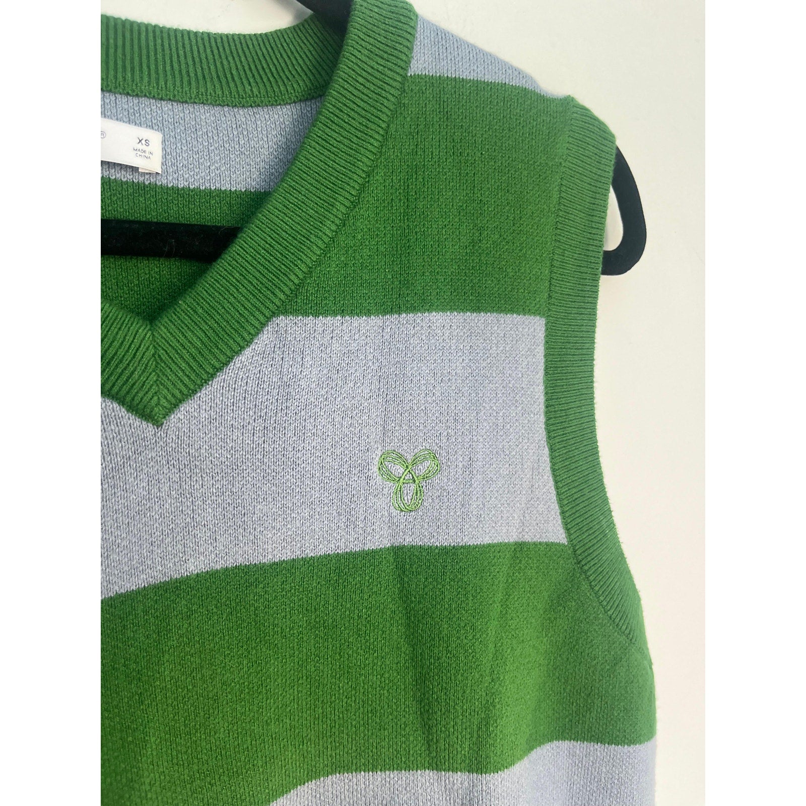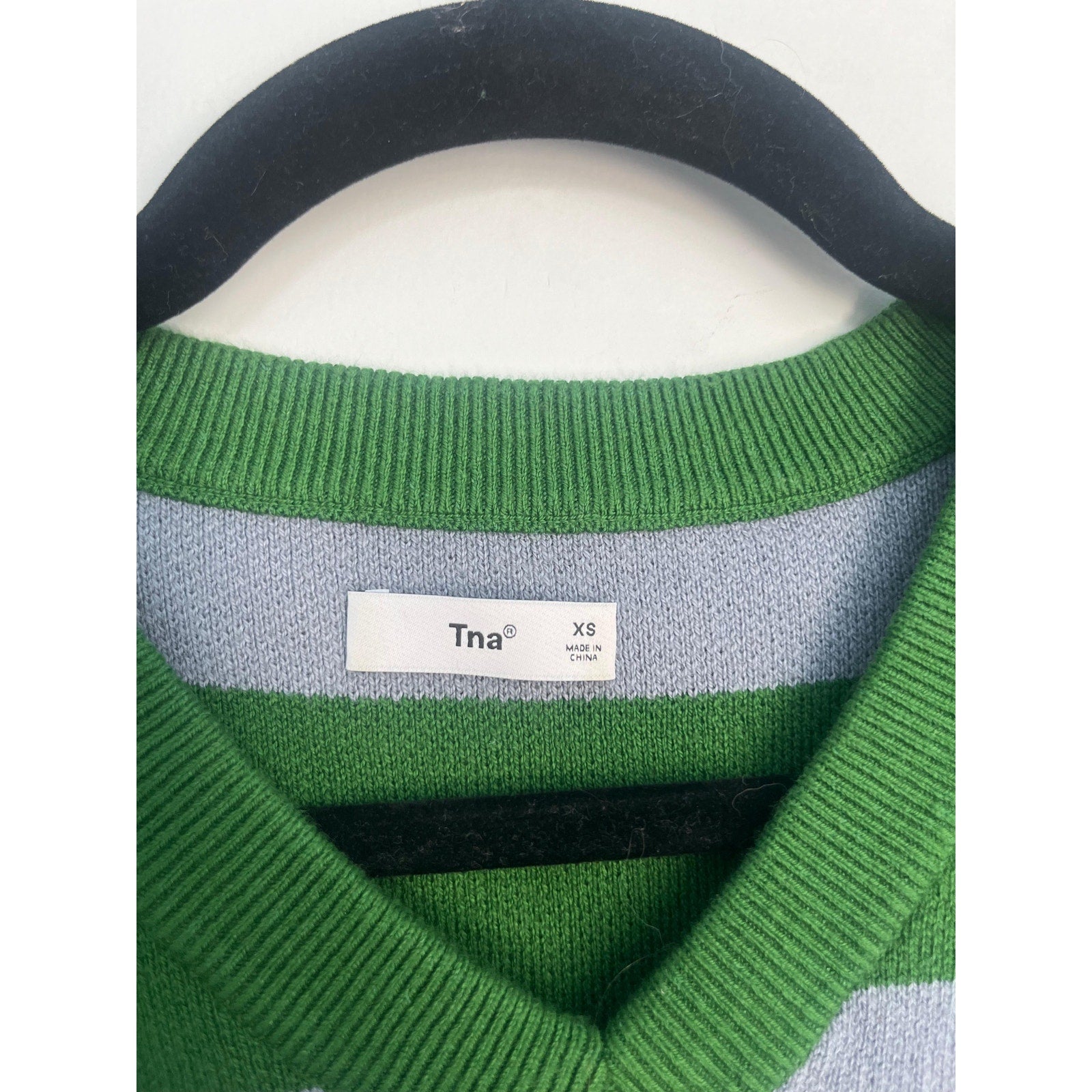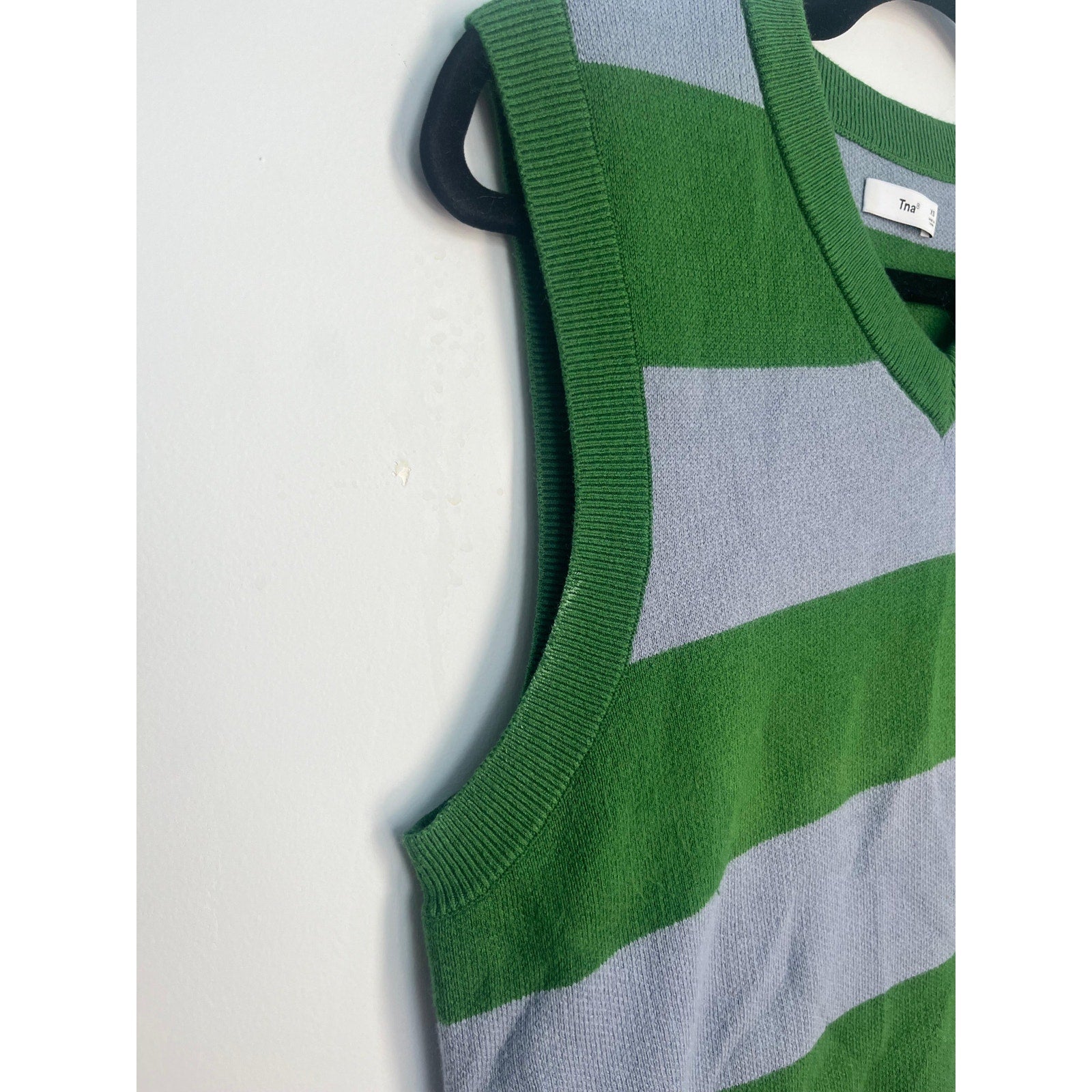 TNA Sweater Vest Women XS Green Gray Stripe V Neck Knit Preppy Y2K