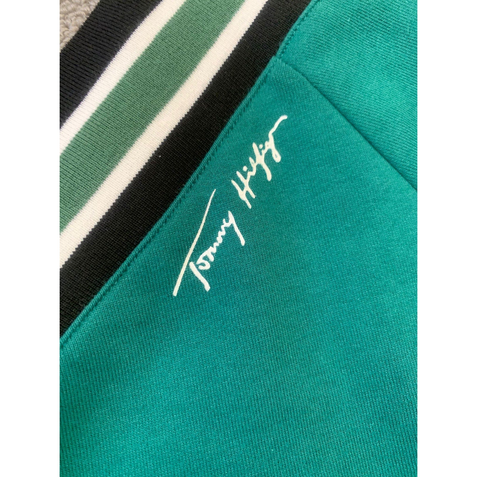 A vibrant Tommy Hilfiger x NFL collaboration pullover featuring the New York Jets, styled in green with bold “JETS” lettering and team logo across the chest. V‑neck sweater design with striped neckline and relaxed, sporty fit—XL size for women.