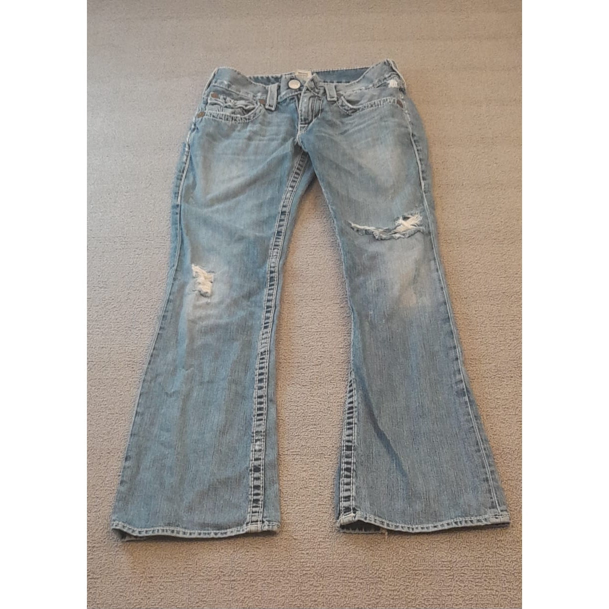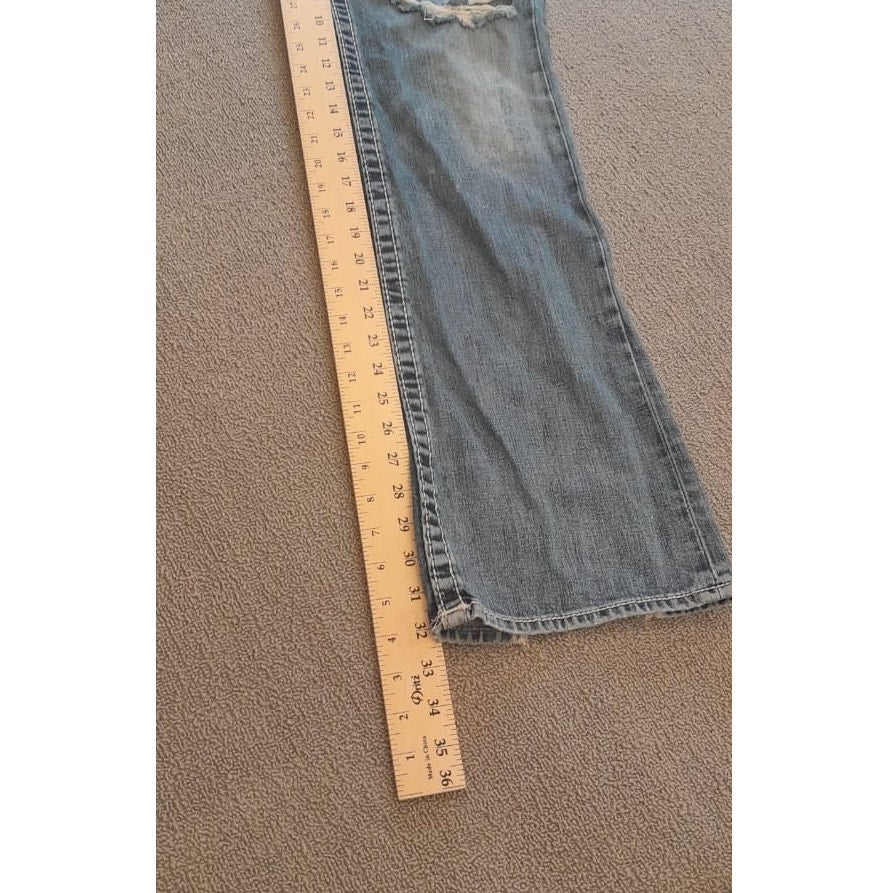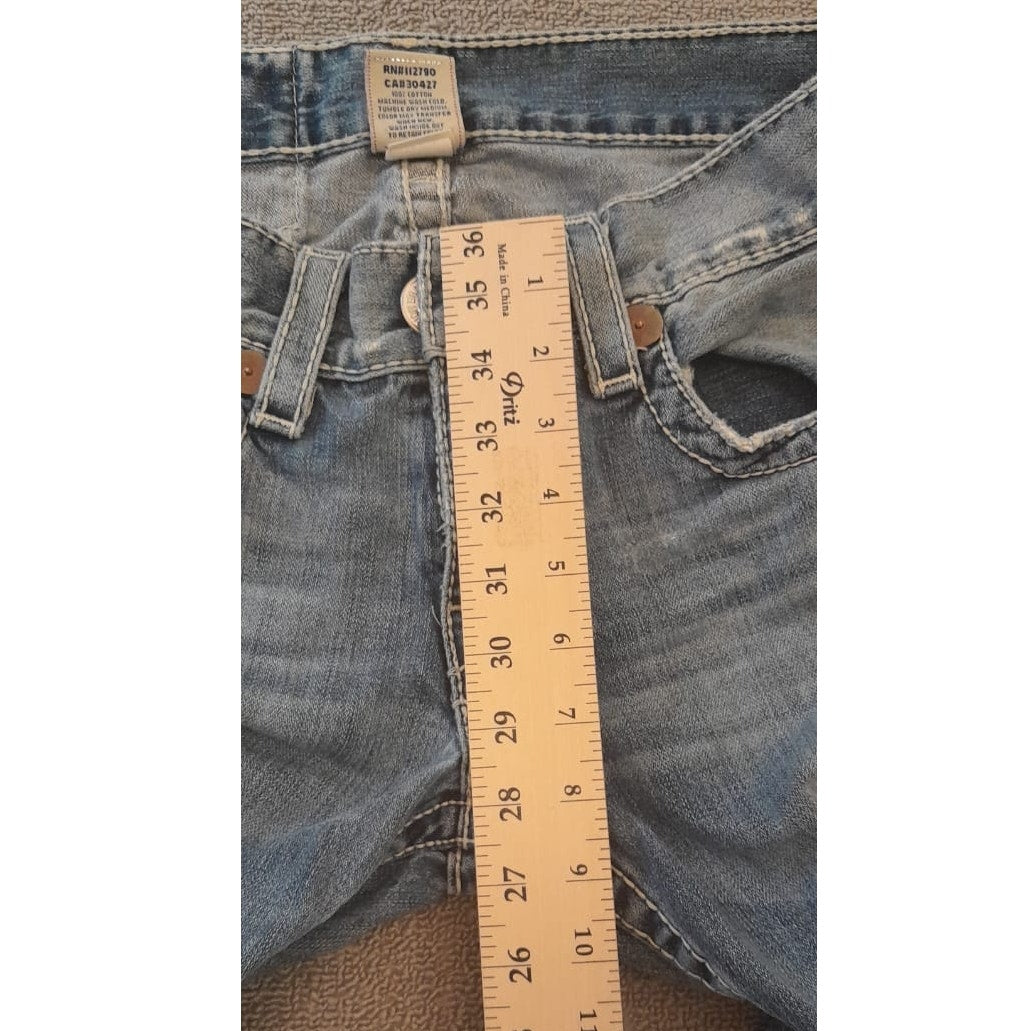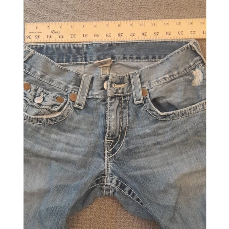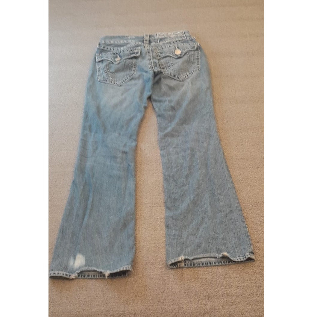 True Religion Womens 32 Light Wash Blue Bootcut Distressed Ripped Jeans