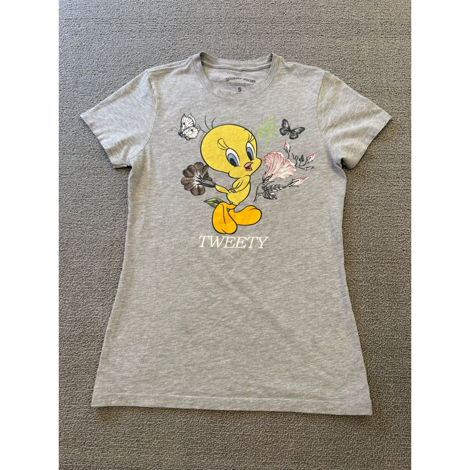 Tweety Bird Looney Tunes Womans Small Gray Short Sleeve T-Shirt