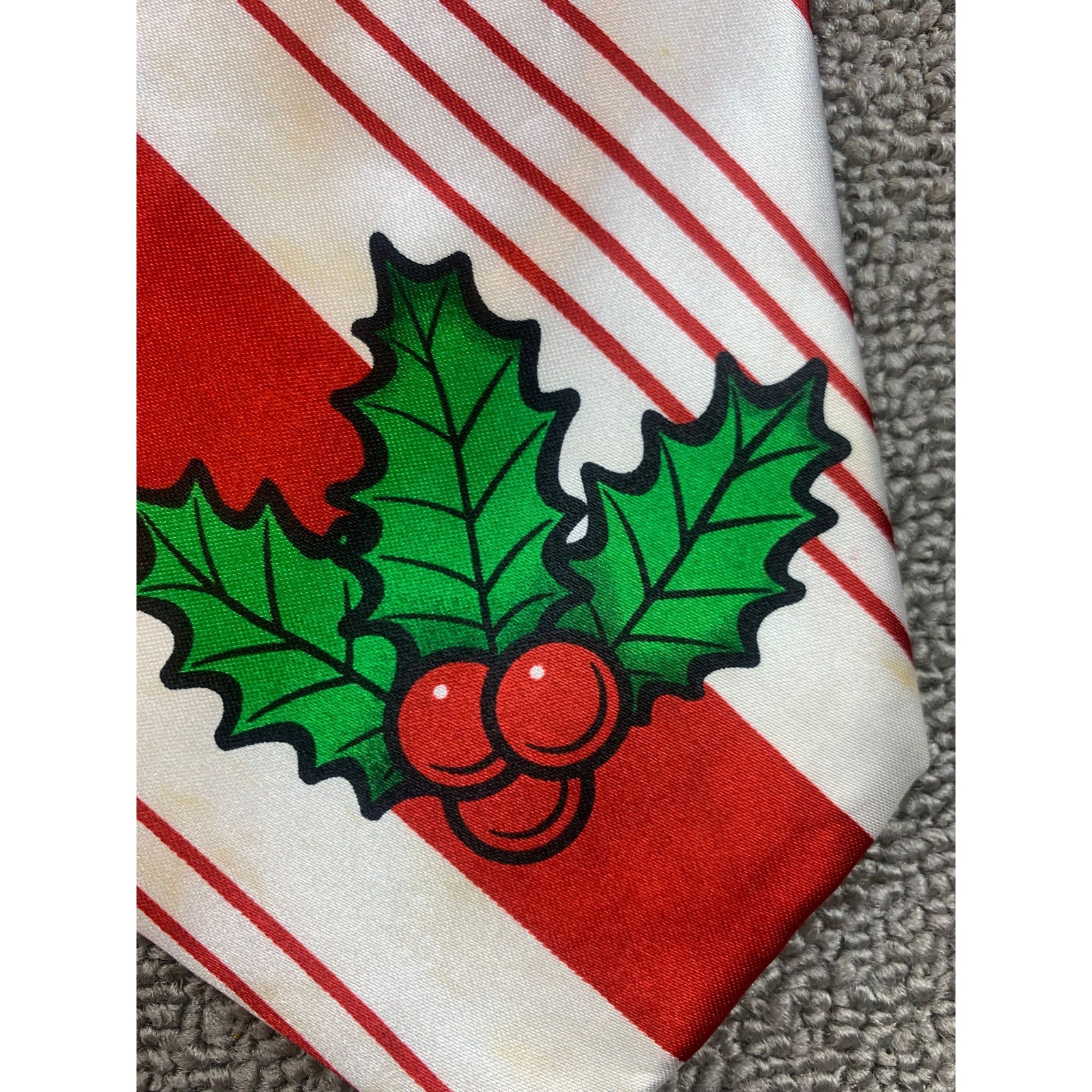 Unbranded Men Red White Christmas Holiday Striped Candy Cane Casual Tie