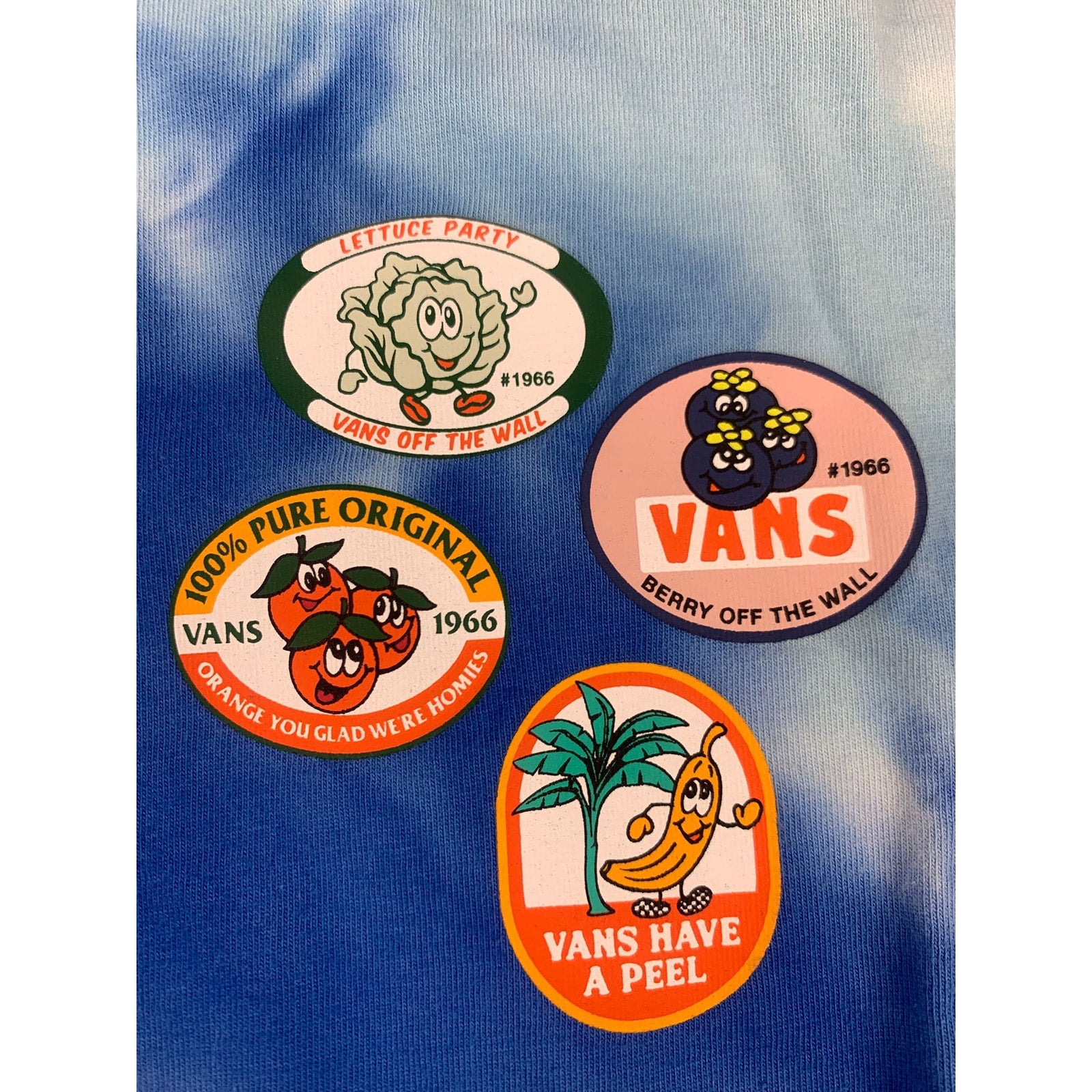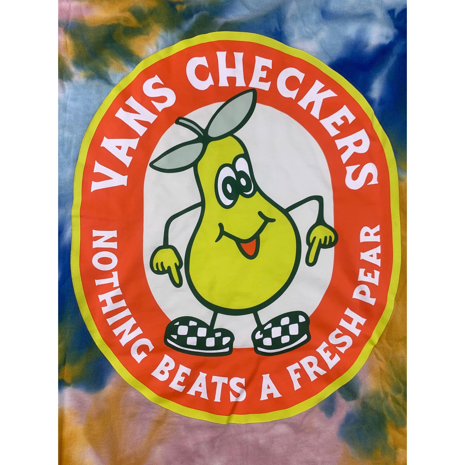 Bright and colorful Vans tie-dye t-shirt featuring classic fit and front graphic patches. Made from cotton for breathable comfort. Unique multicolor design makes it a standout casual piece.