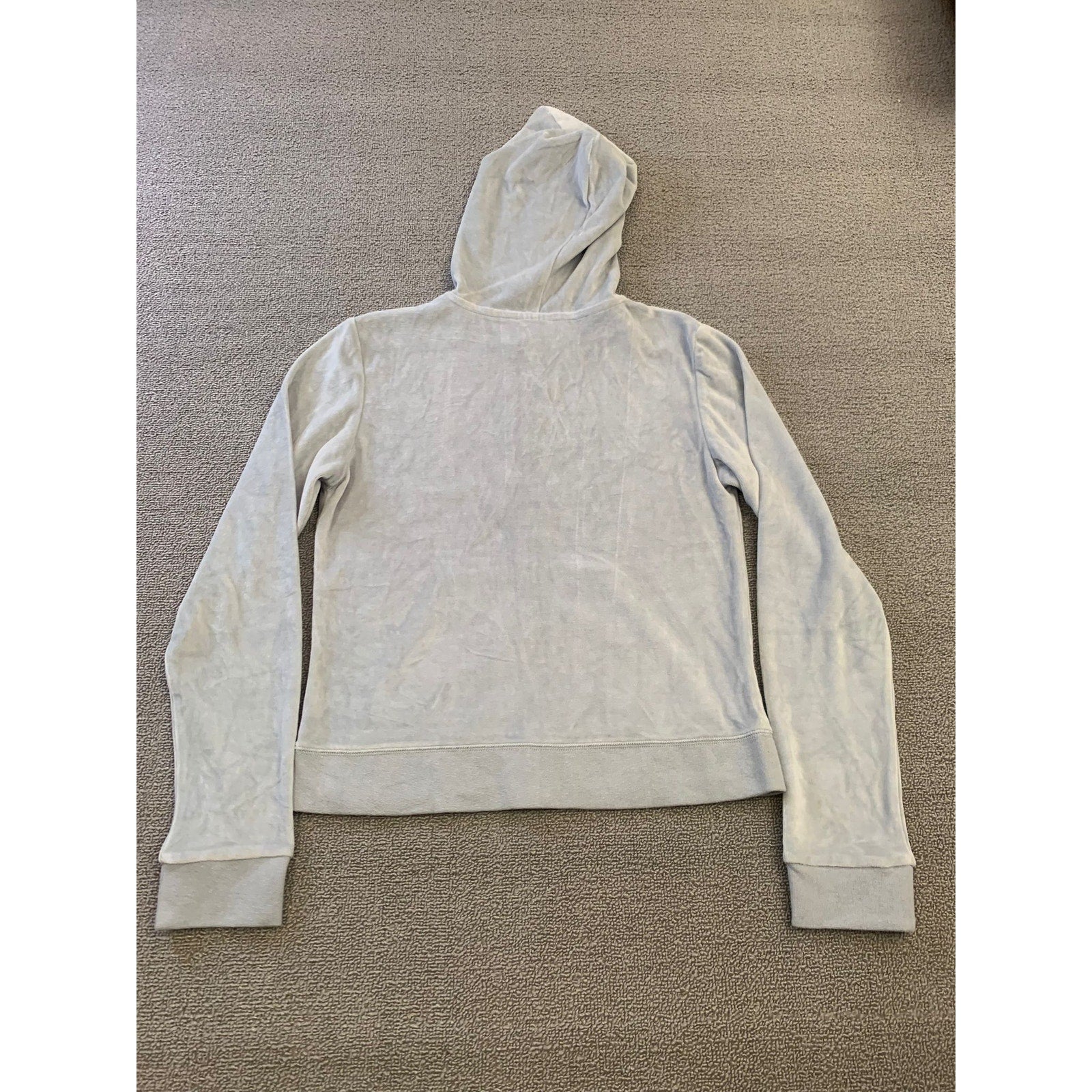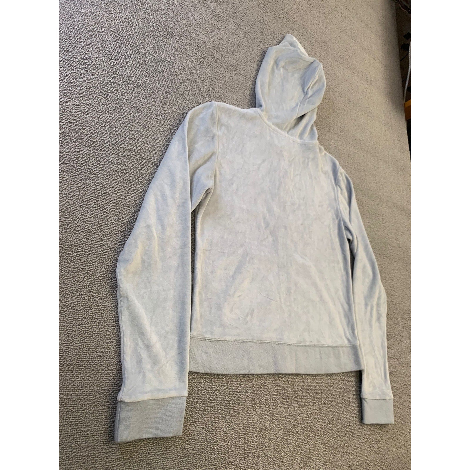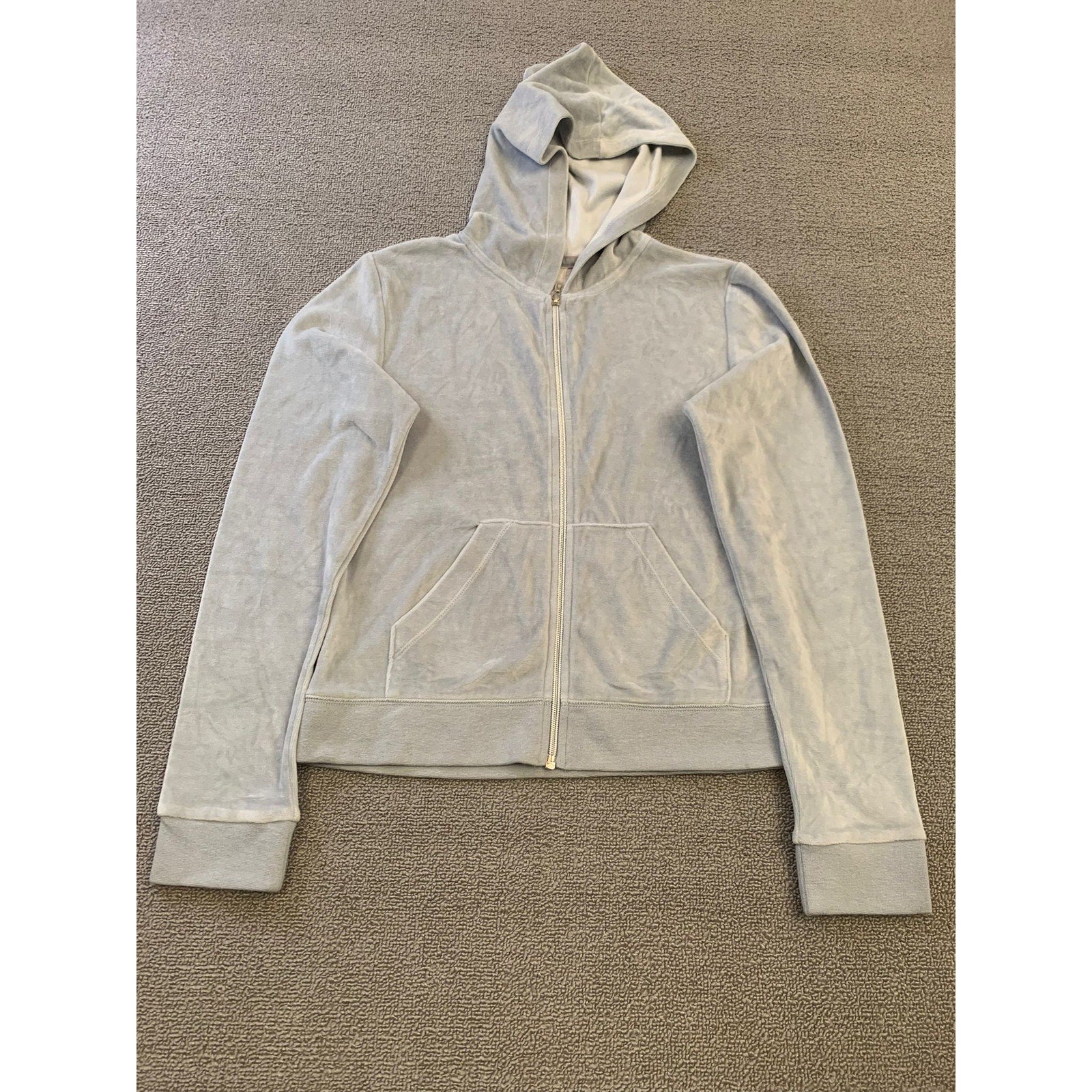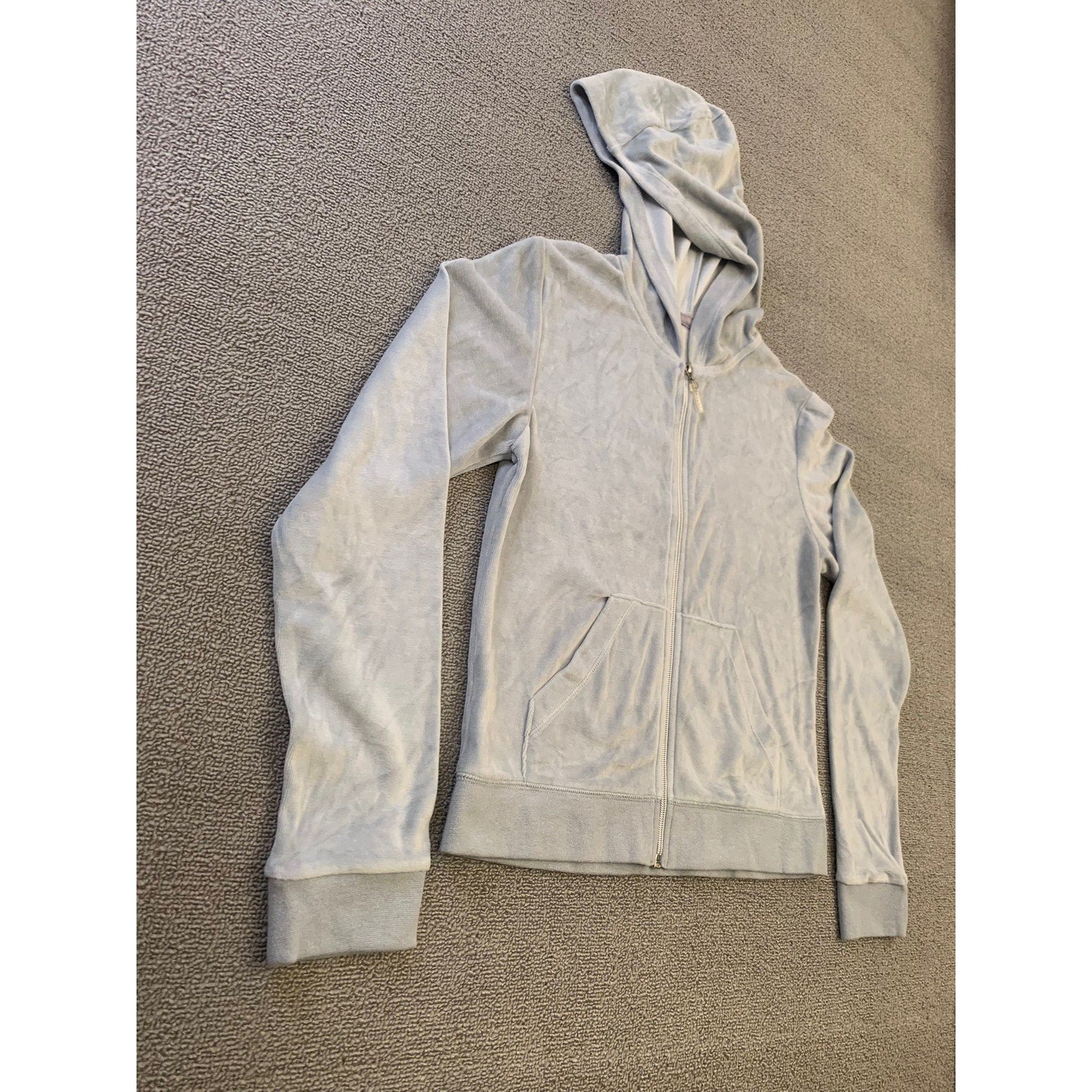 VERONA L Women's Gray Full Zip Velour Hooded Sweatshirt Soft Y2K