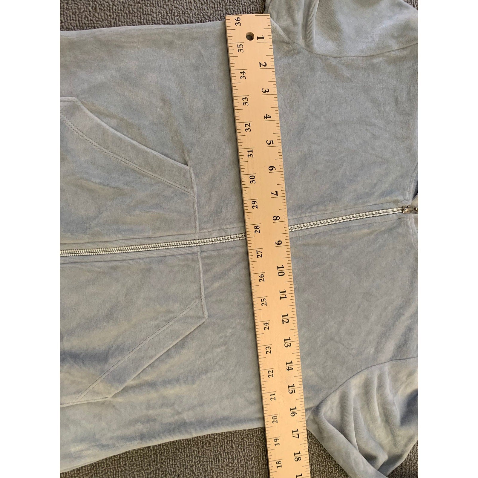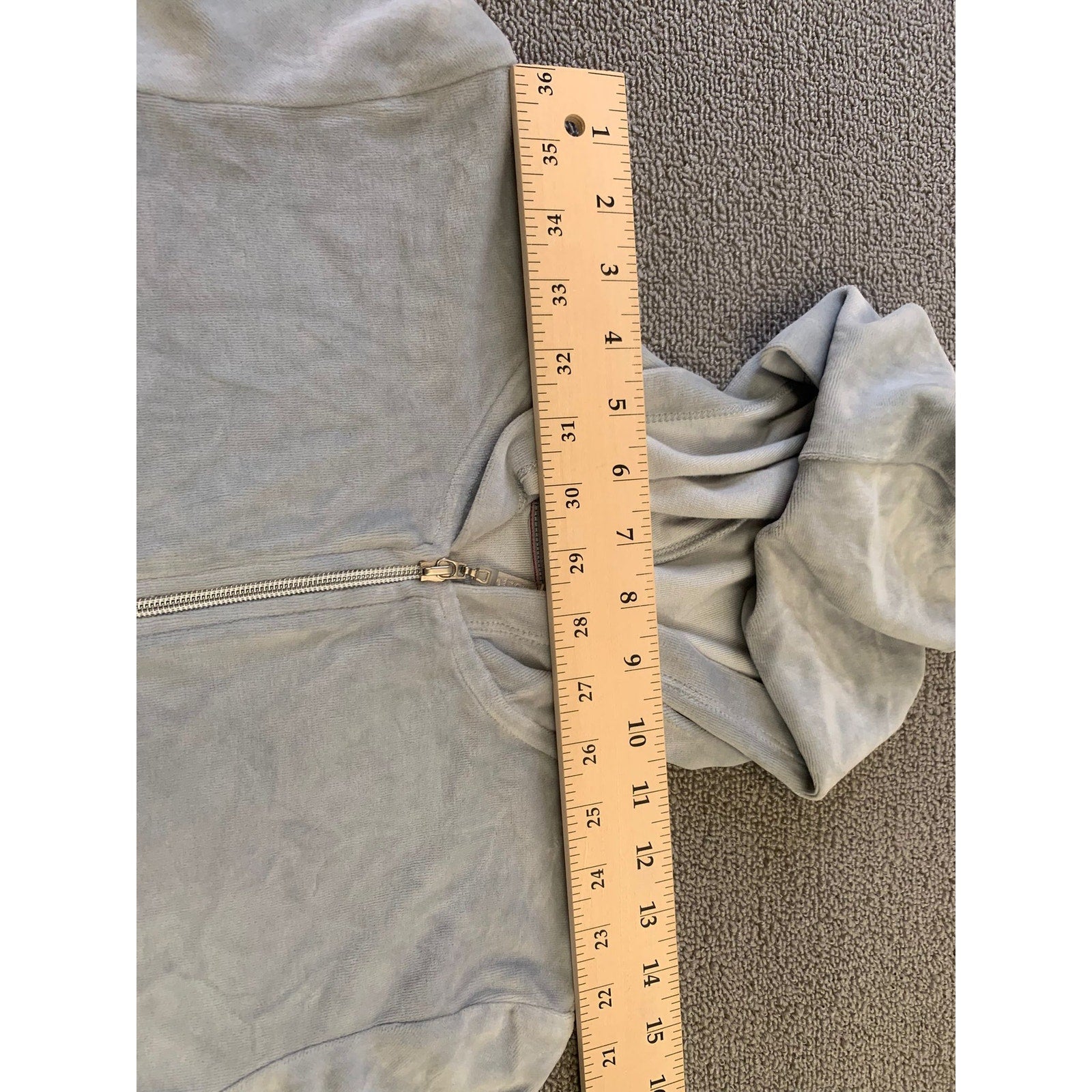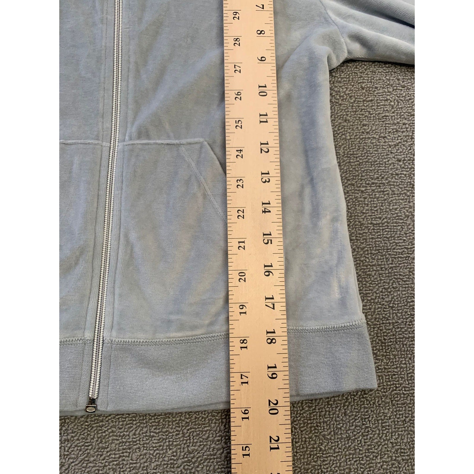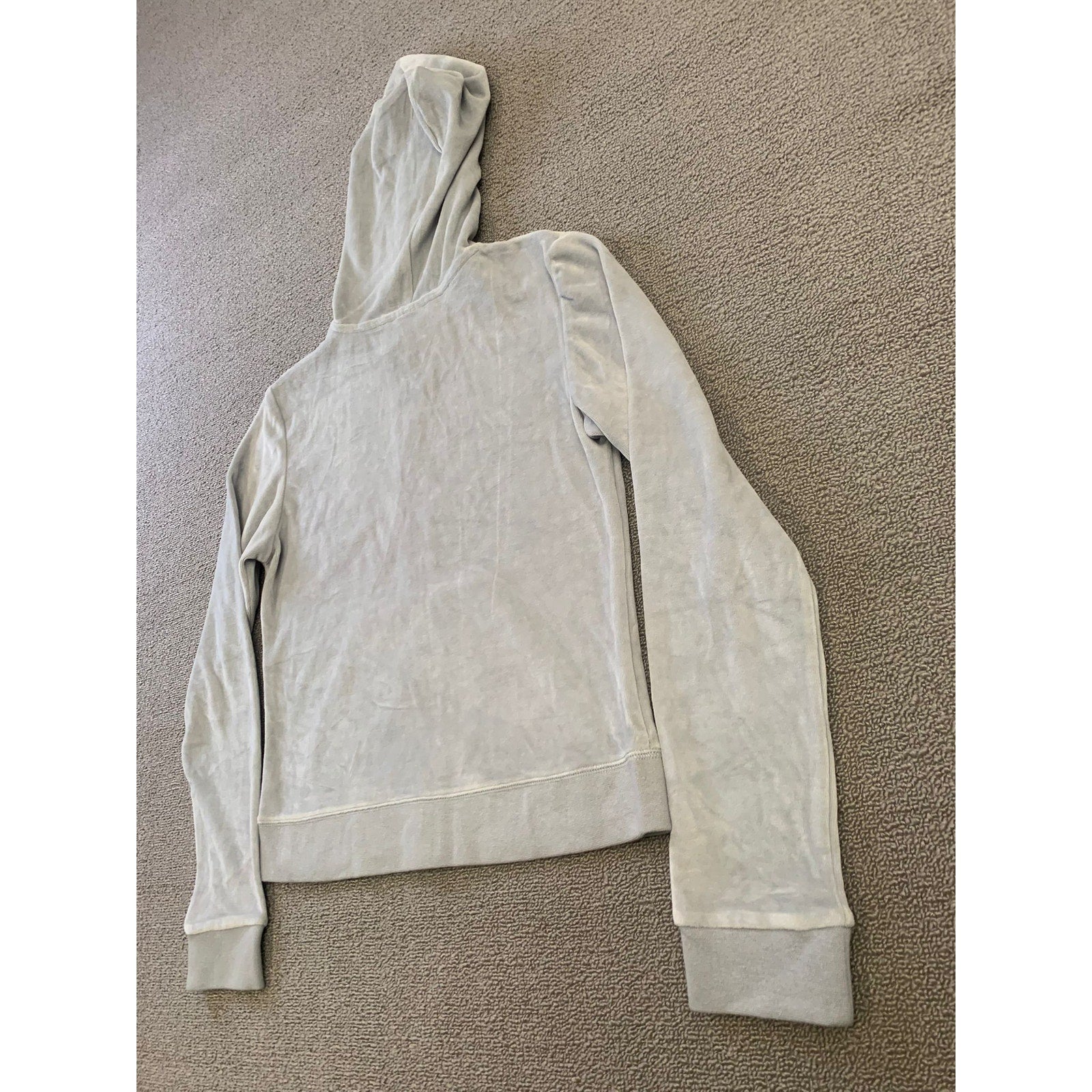VERONA L Women's Gray Full Zip Velour Hooded Sweatshirt Soft Y2K