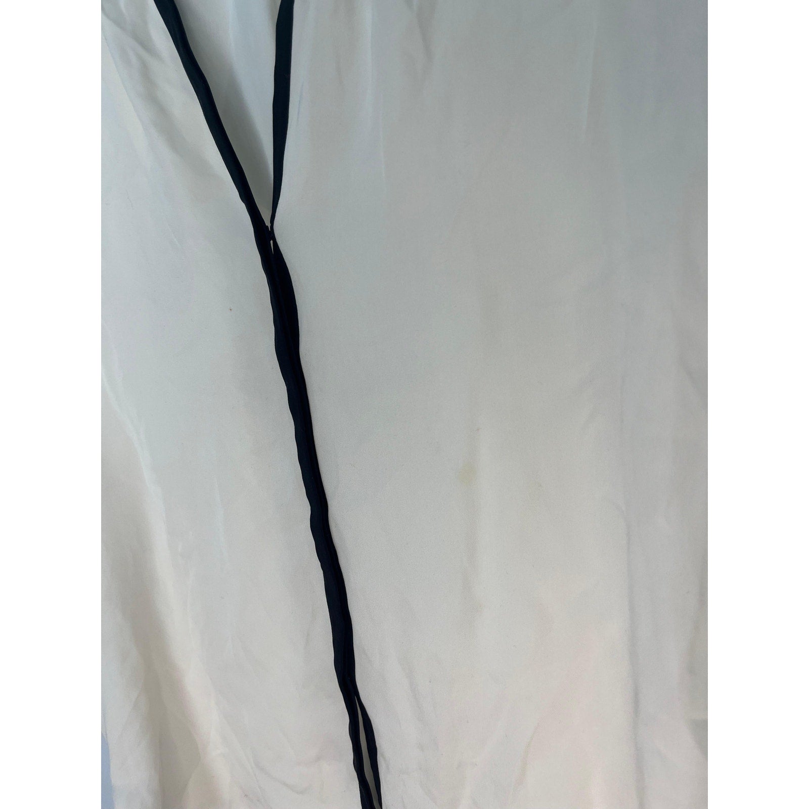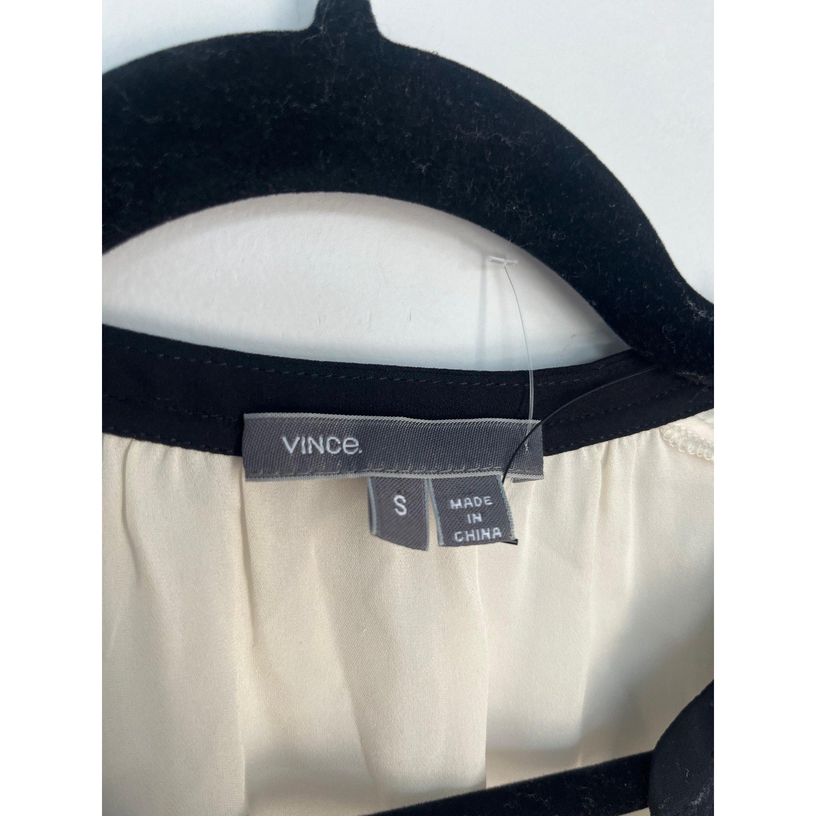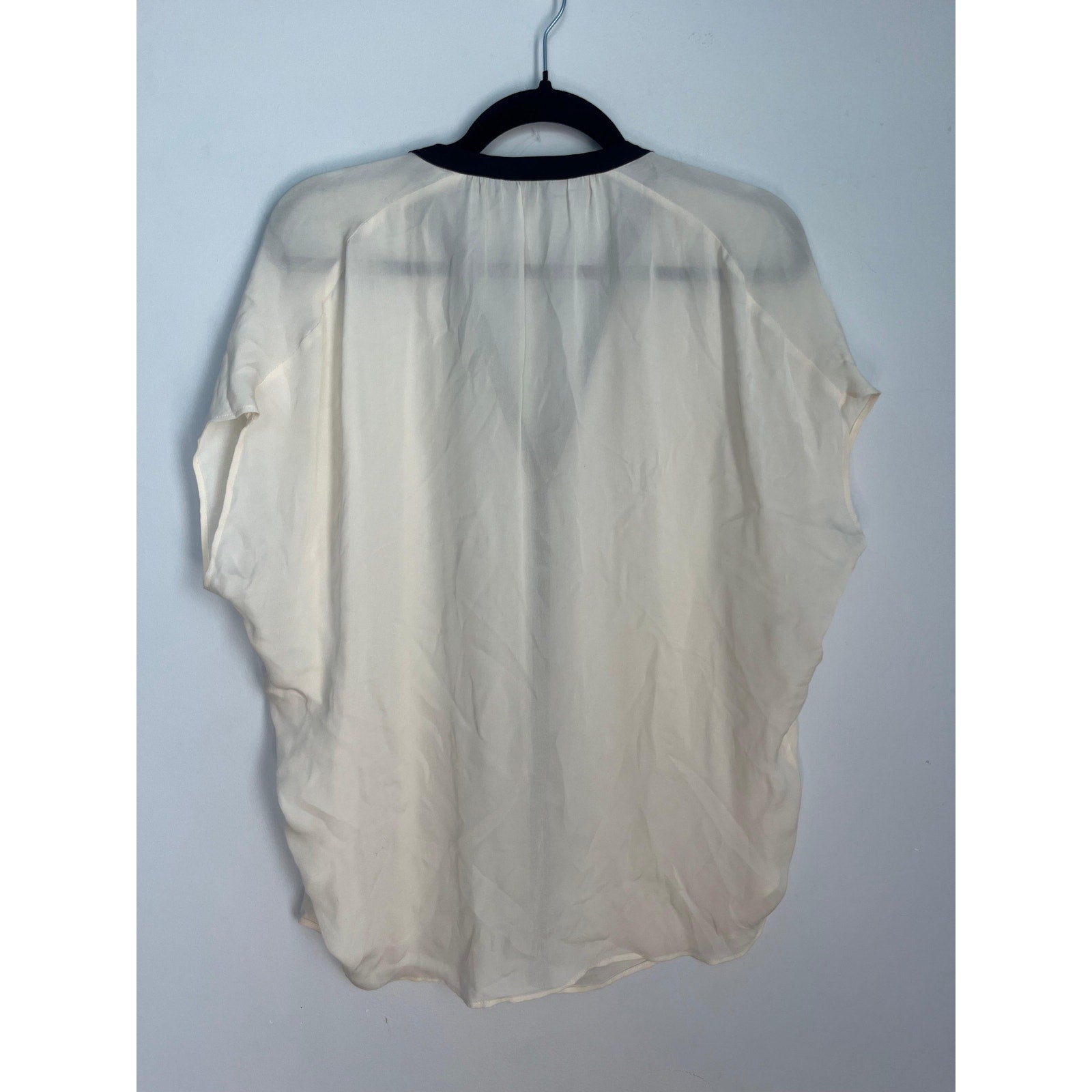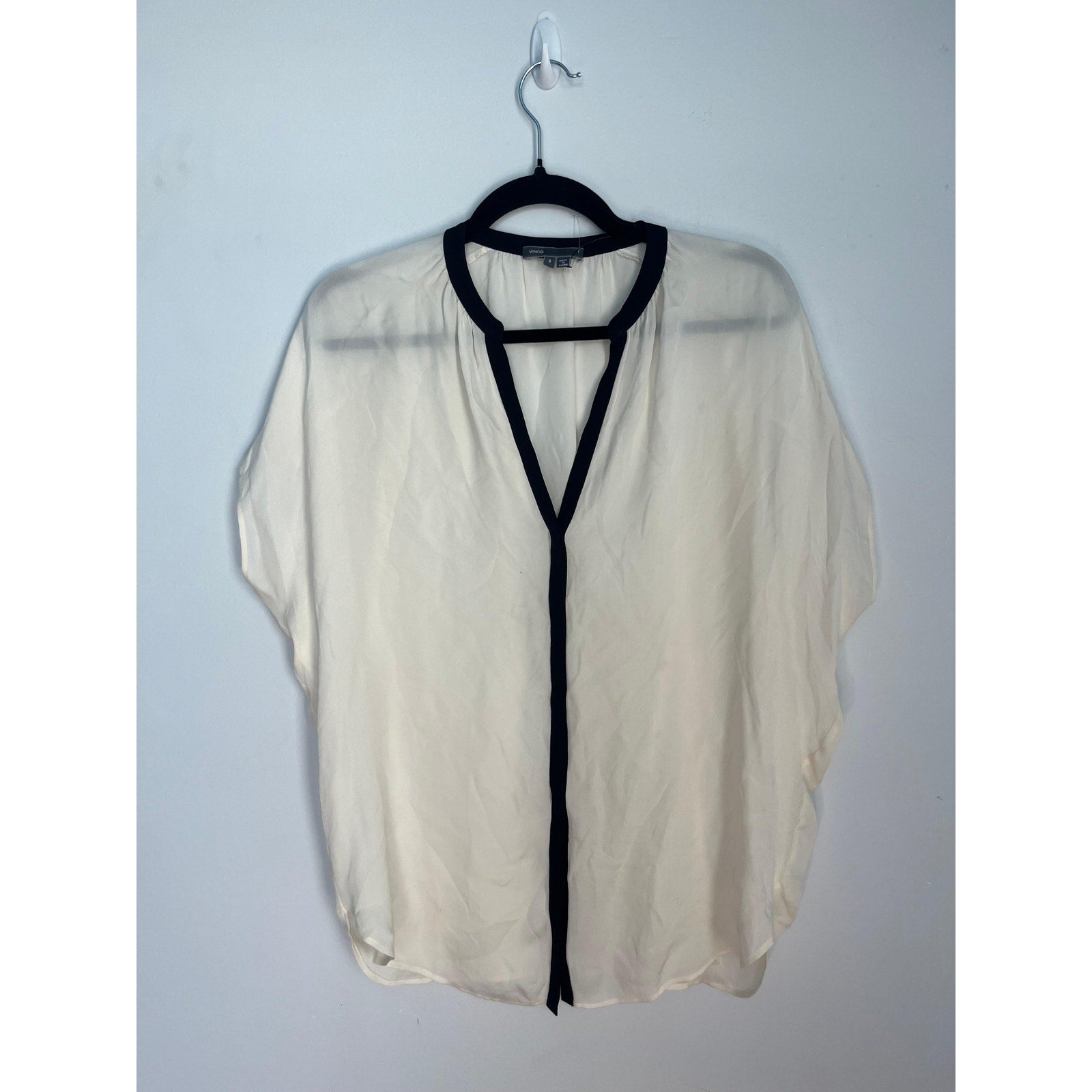 Vince Blouse Women Small Ivory Black Silk V Neck Contrast Trim Short Sleeve