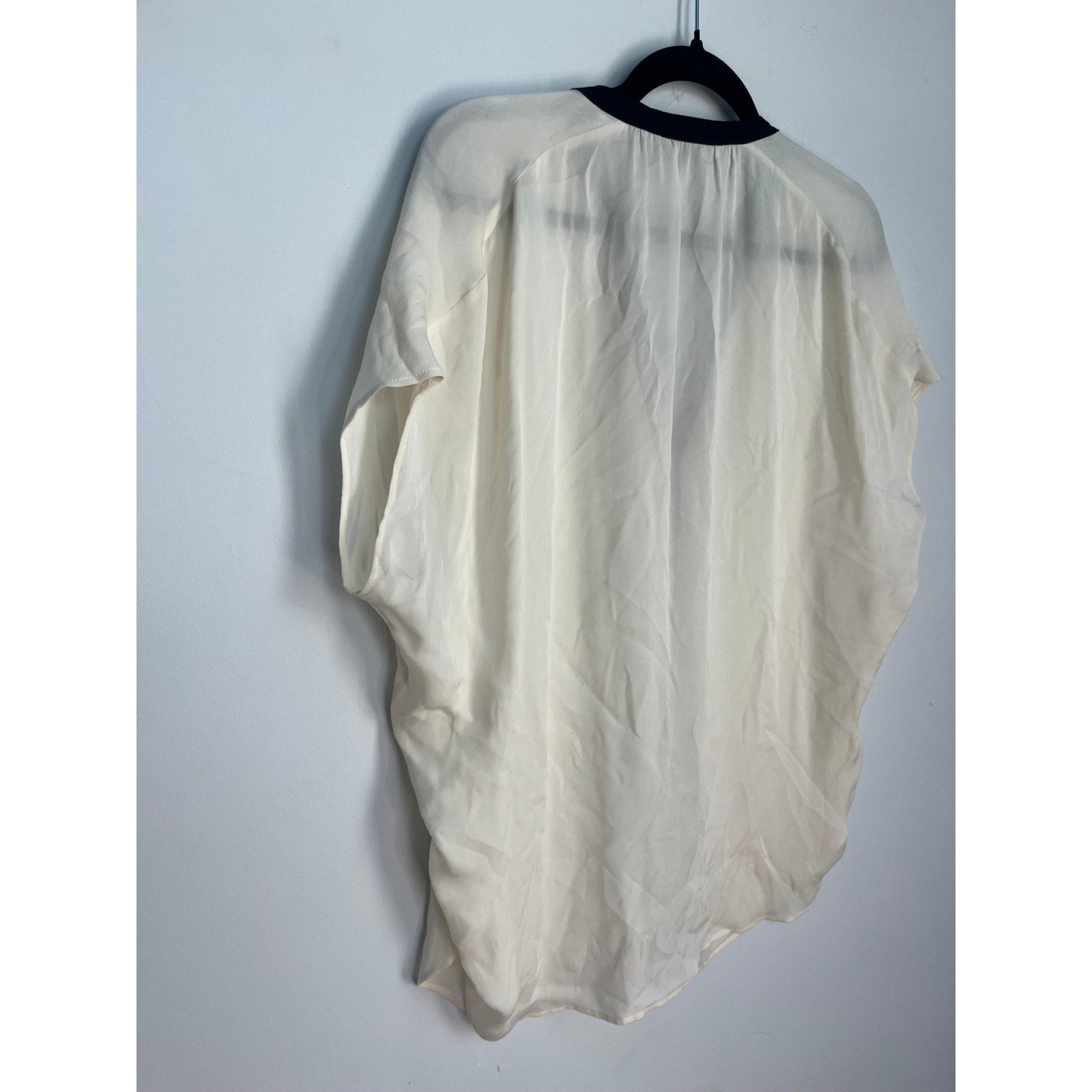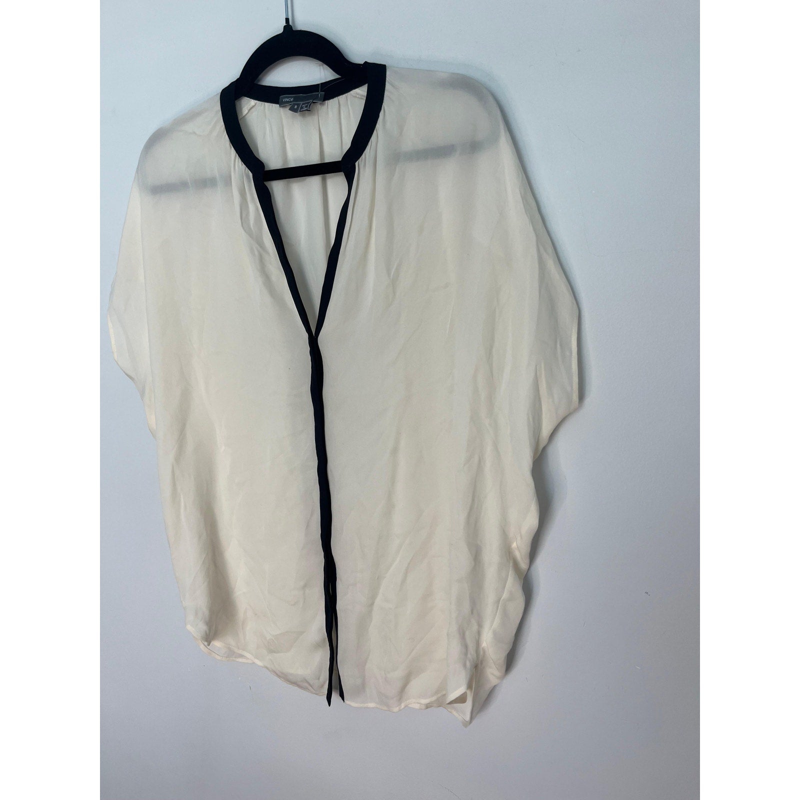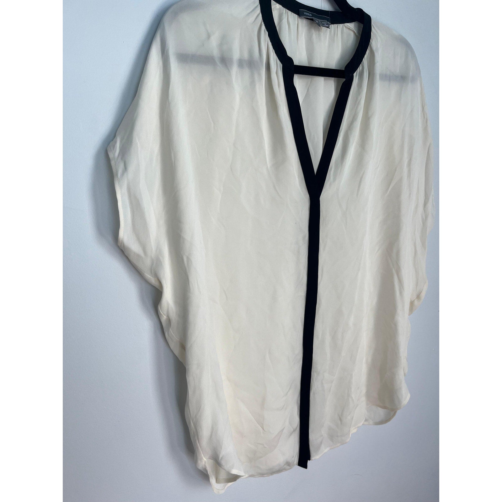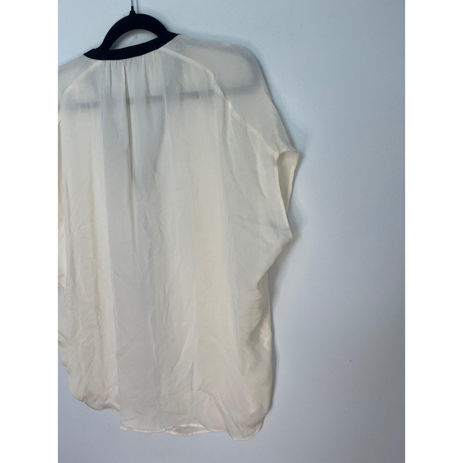 Vince Blouse Women Small Ivory Black Silk V Neck Contrast Trim Short Sleeve