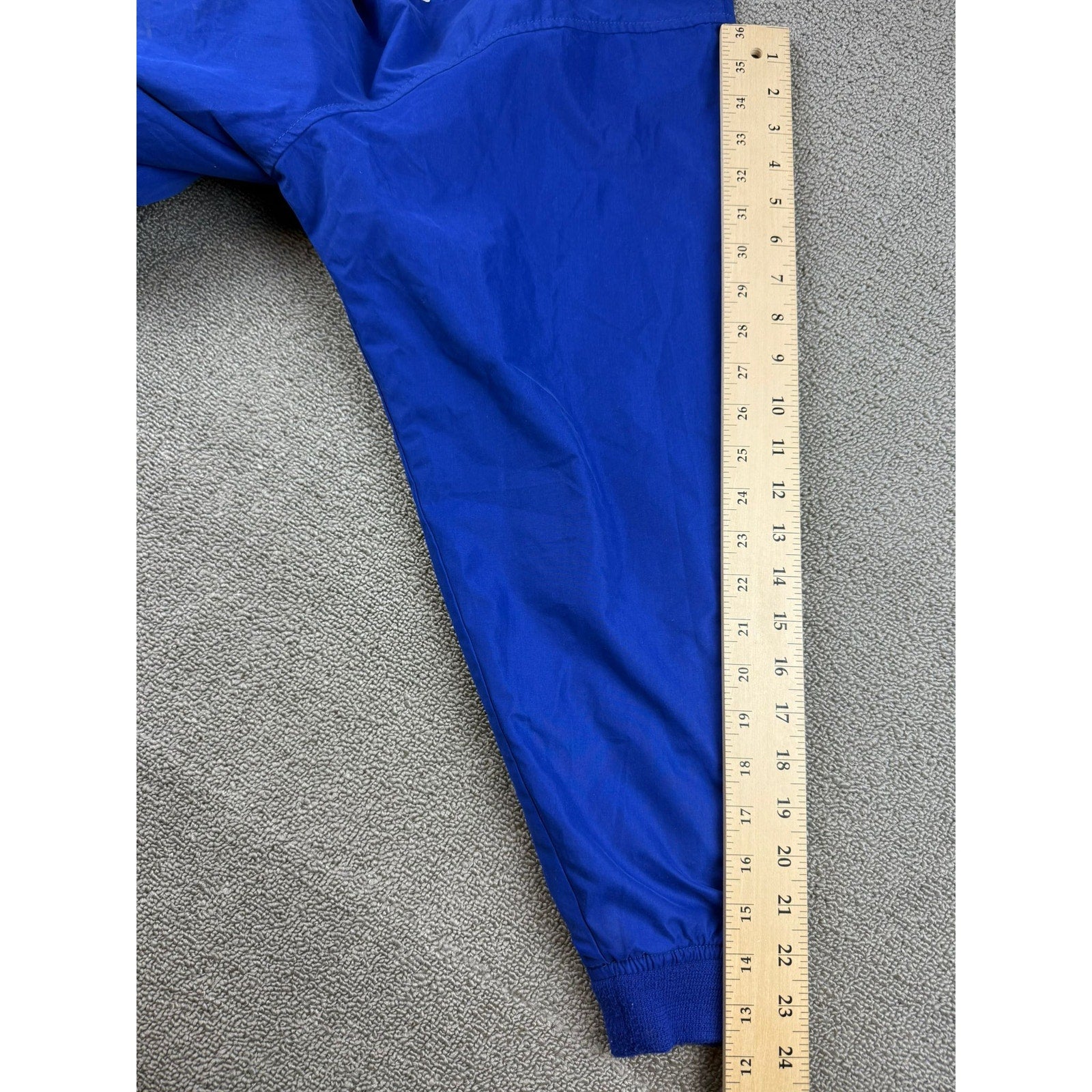 Lightweight 1996 Planet Mars M&M’s nylon pullover windbreaker with ribbed crew neck cuffs and hem. Left-chest embroidered Blue M character; lined with side pockets; made in Taiwan. Shell 100% polyester and lining 100% nylon. Made in Taiwan.