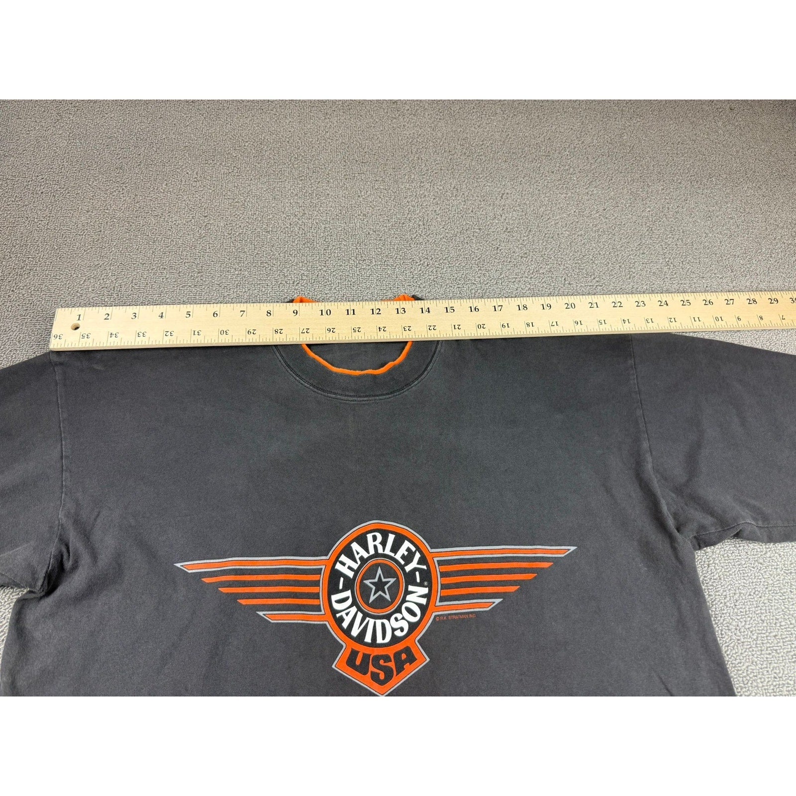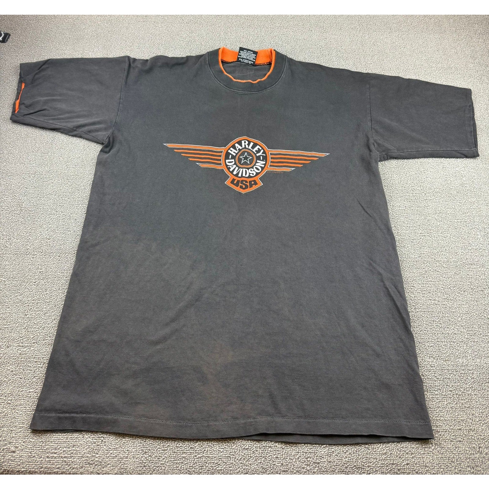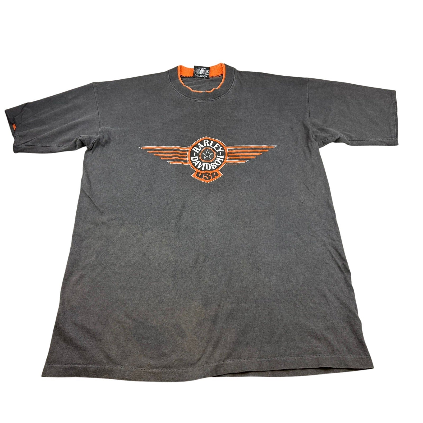 A bold black Harley‑Davidson USA graphic tee featuring the iconic logo and winged motifs with a premium vintage vibe. Ideal for fans of biker culture and retro streetwear.