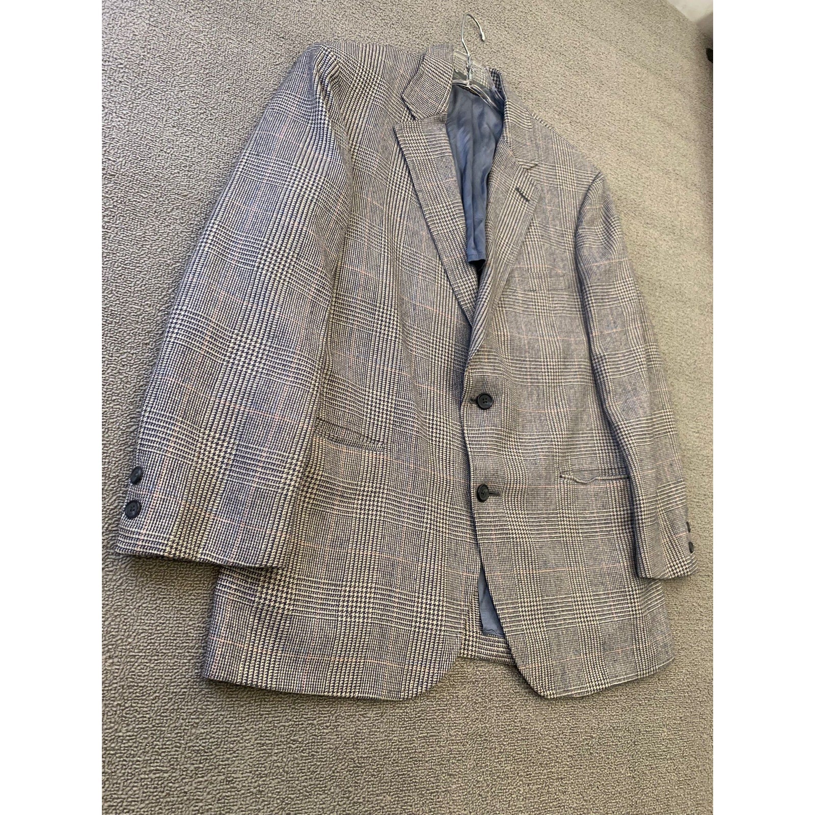 A vintage Brooks Brothers 346 men’s blazer featuring a timeless glen‑plaid pattern in neutral tones and a two‑button front. Tailored construction shows classic notched lapels, flap pockets, and structured silhouette with lining—expertly crafted in the USA.