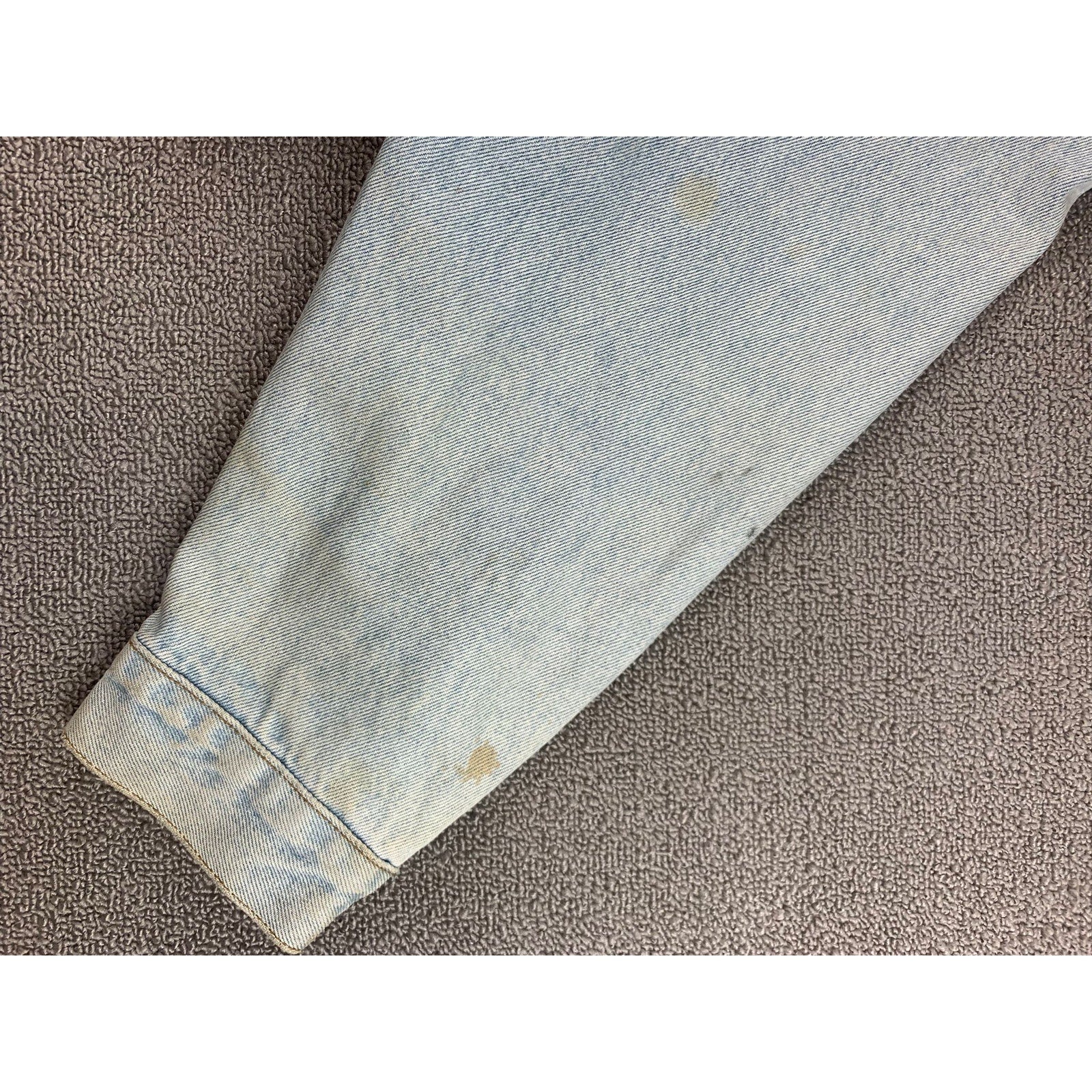 Classic light wash denim trucker with button front, flap chest pockets and slant hand pockets with DIY patches. 100% cotton with 90s/Y2K style wash and contrast stitching; relaxed boxy fit. Made in Indonesia.