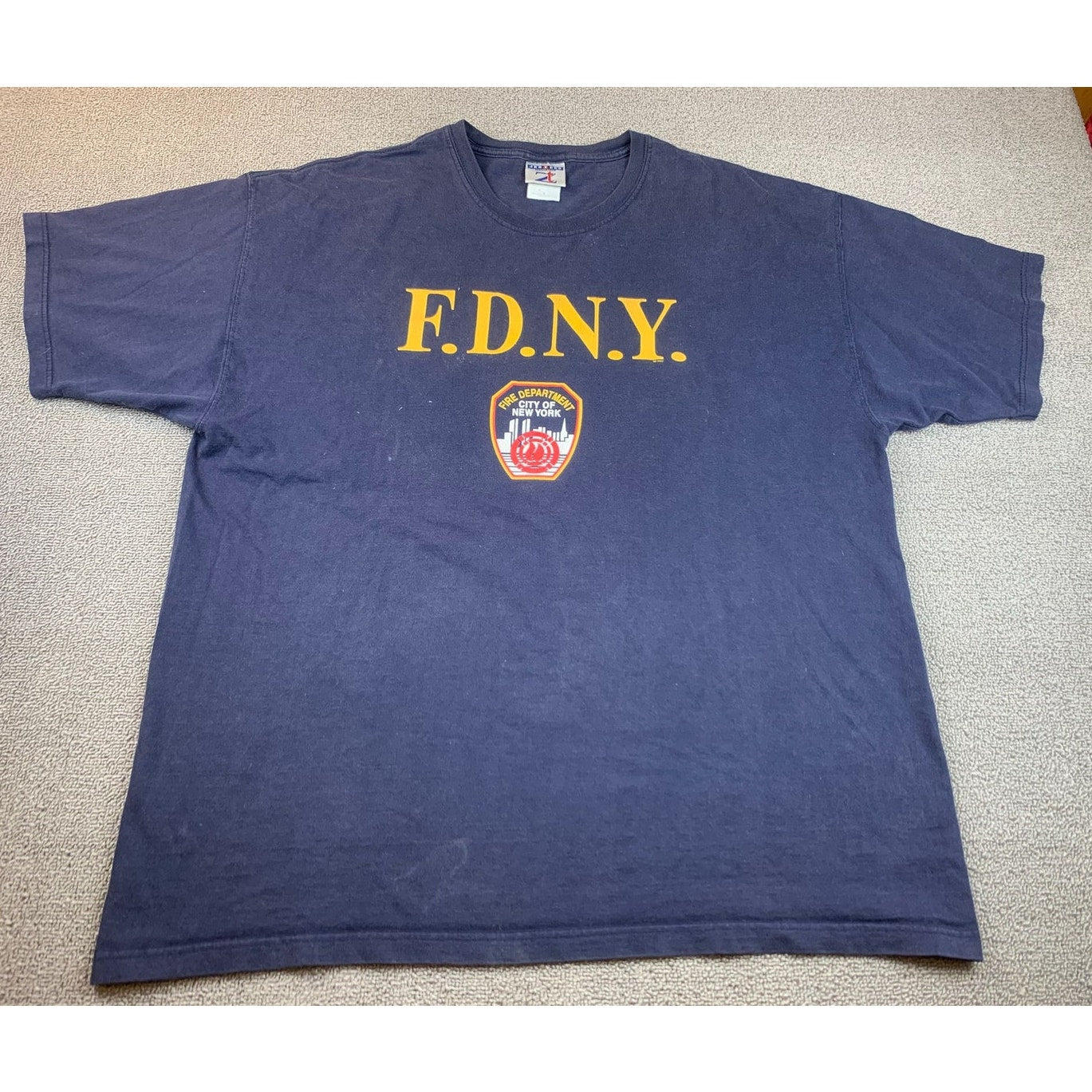 Vintage Jerzees Men's XL Dark Blue Fire Department FDNY NYC Graphic T-Shirt