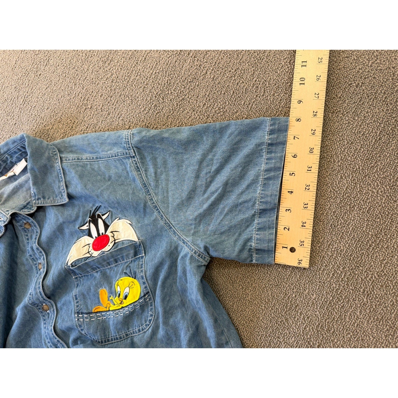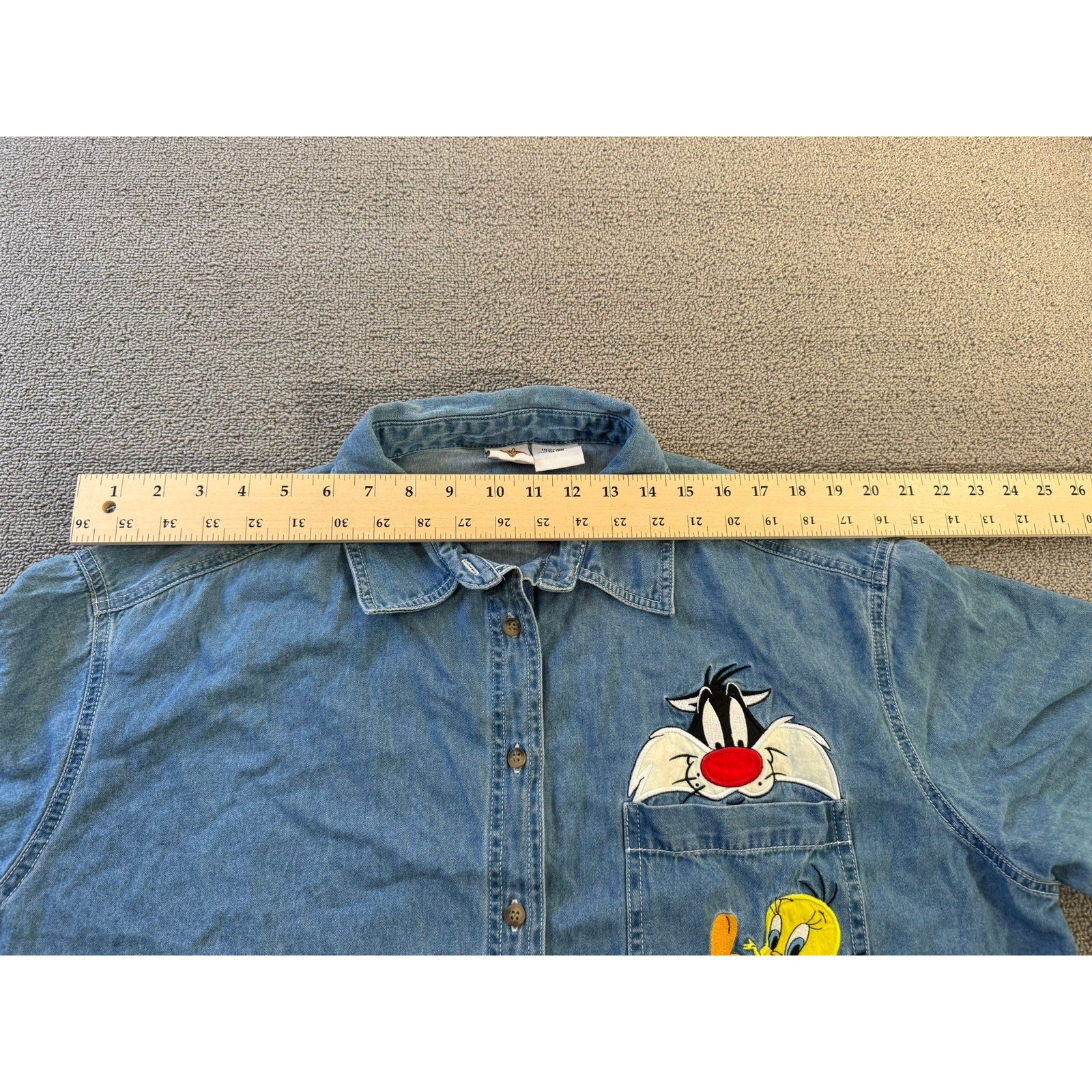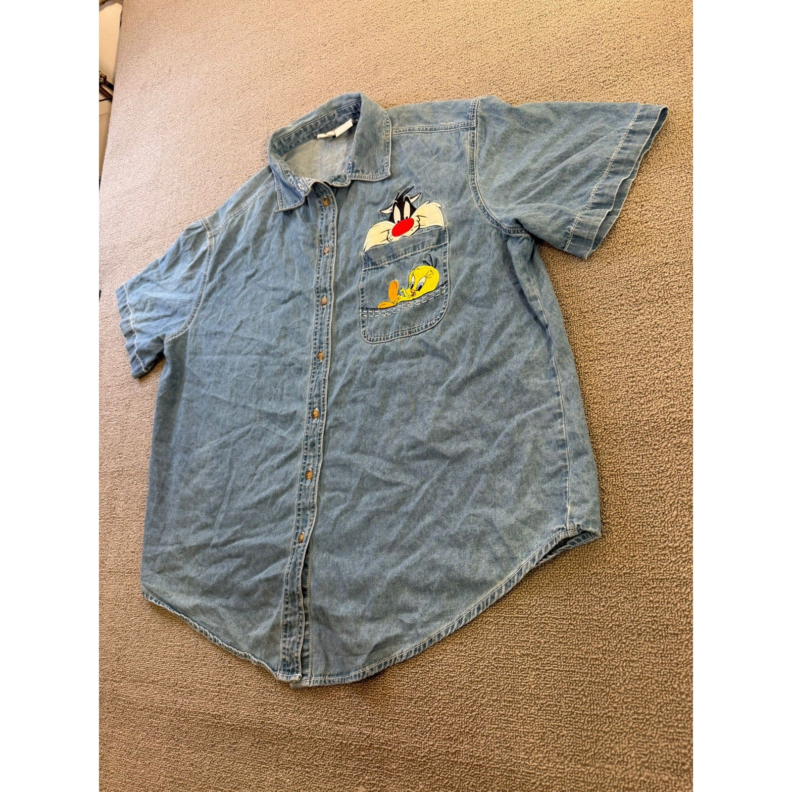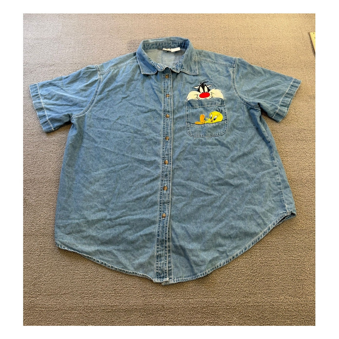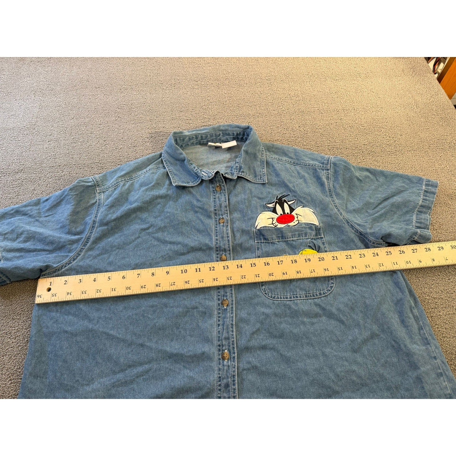 Vintage Looney Tunes Women's 18W/20W Cotton Denim Shirt Syl & Tweety