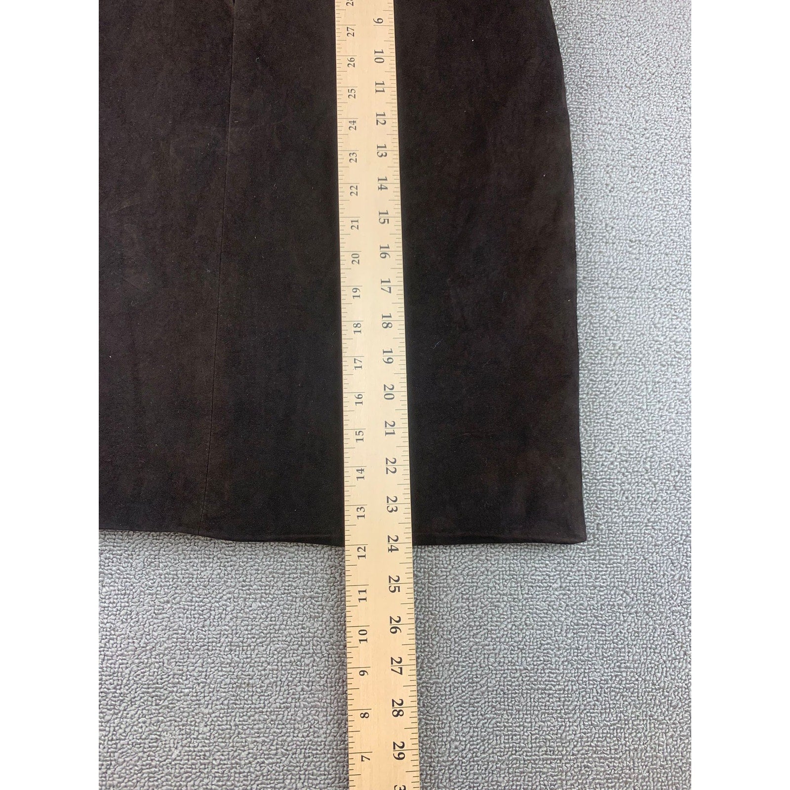 Vintage Ralph Lauren Women 14 Dark Brown Suede Pencil Skirt With Button Closure