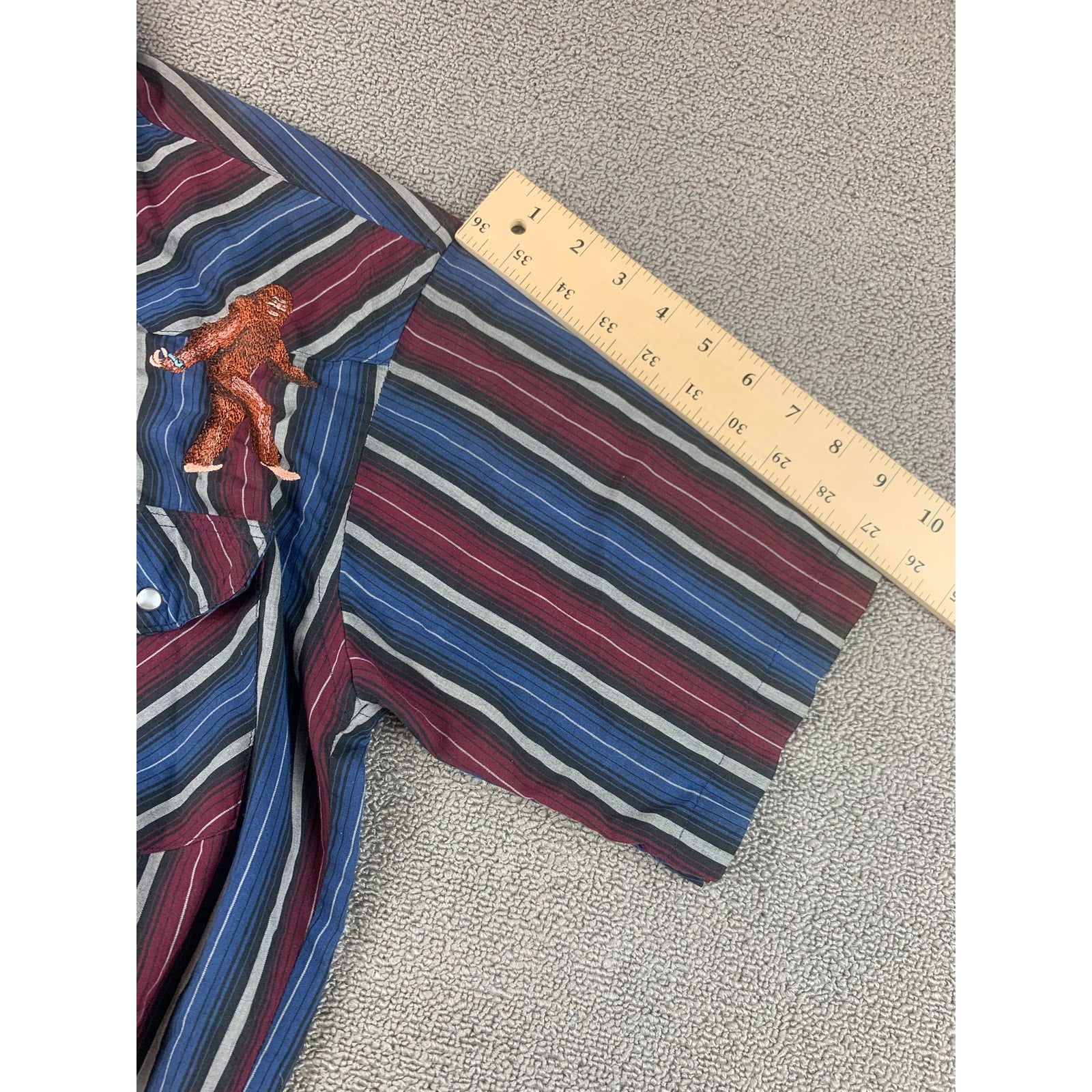 Vintage Wrangler Western Pearl Snap Shirt Short Sleeve Embroidered Bigfoot SZ M