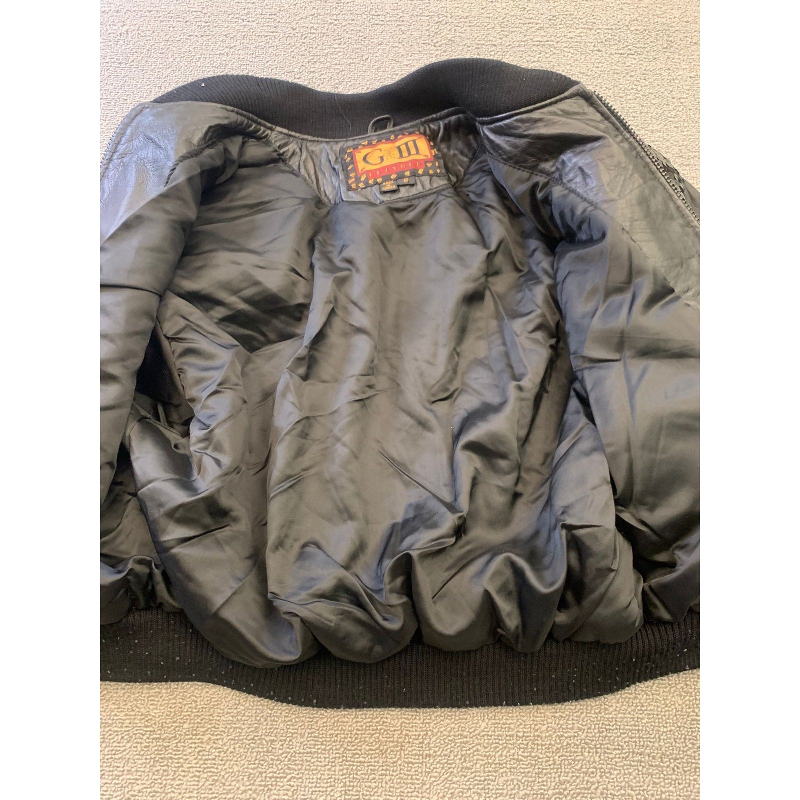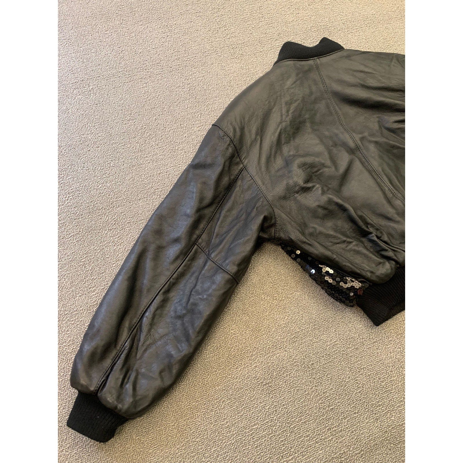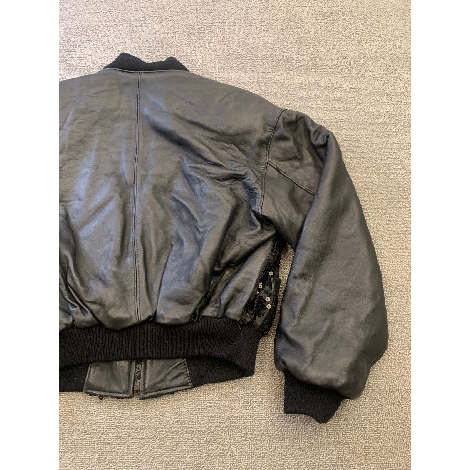 Vintage Y2K G-III LEATHER Women Small Black Sequin Leather Bomber Jacket