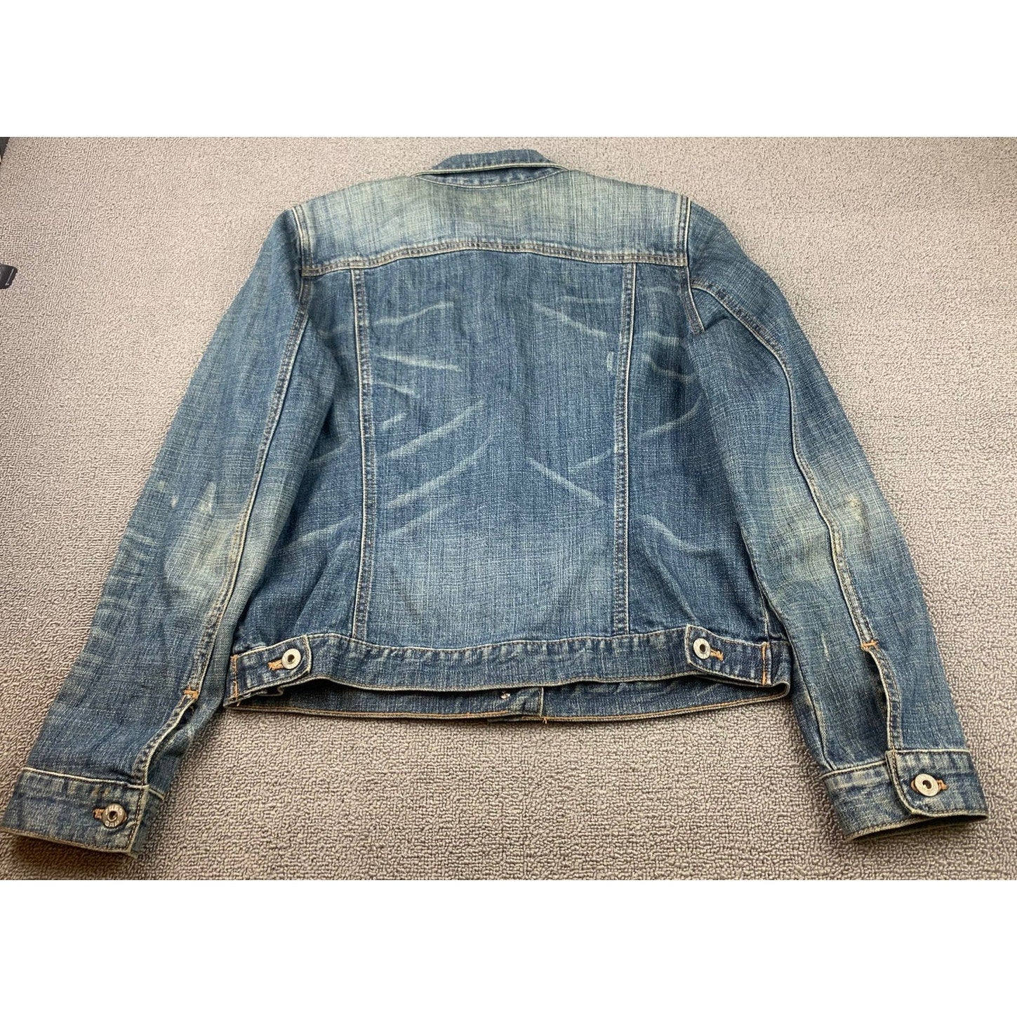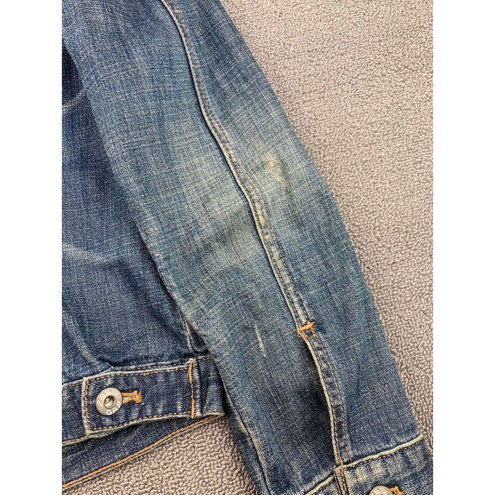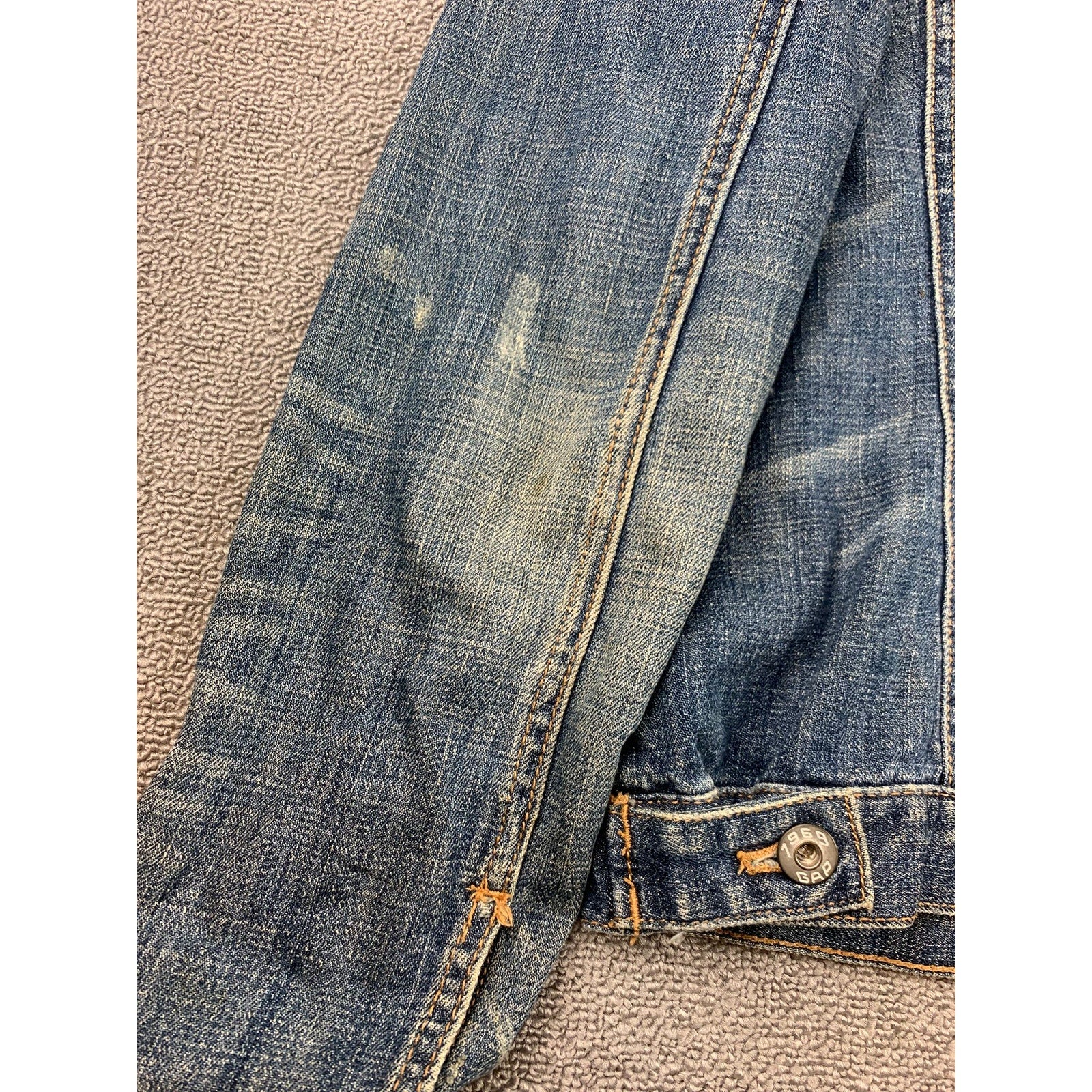 Vintage Y2K Gap Women's Large Blue Washed Distressed Fit Denim Jacket