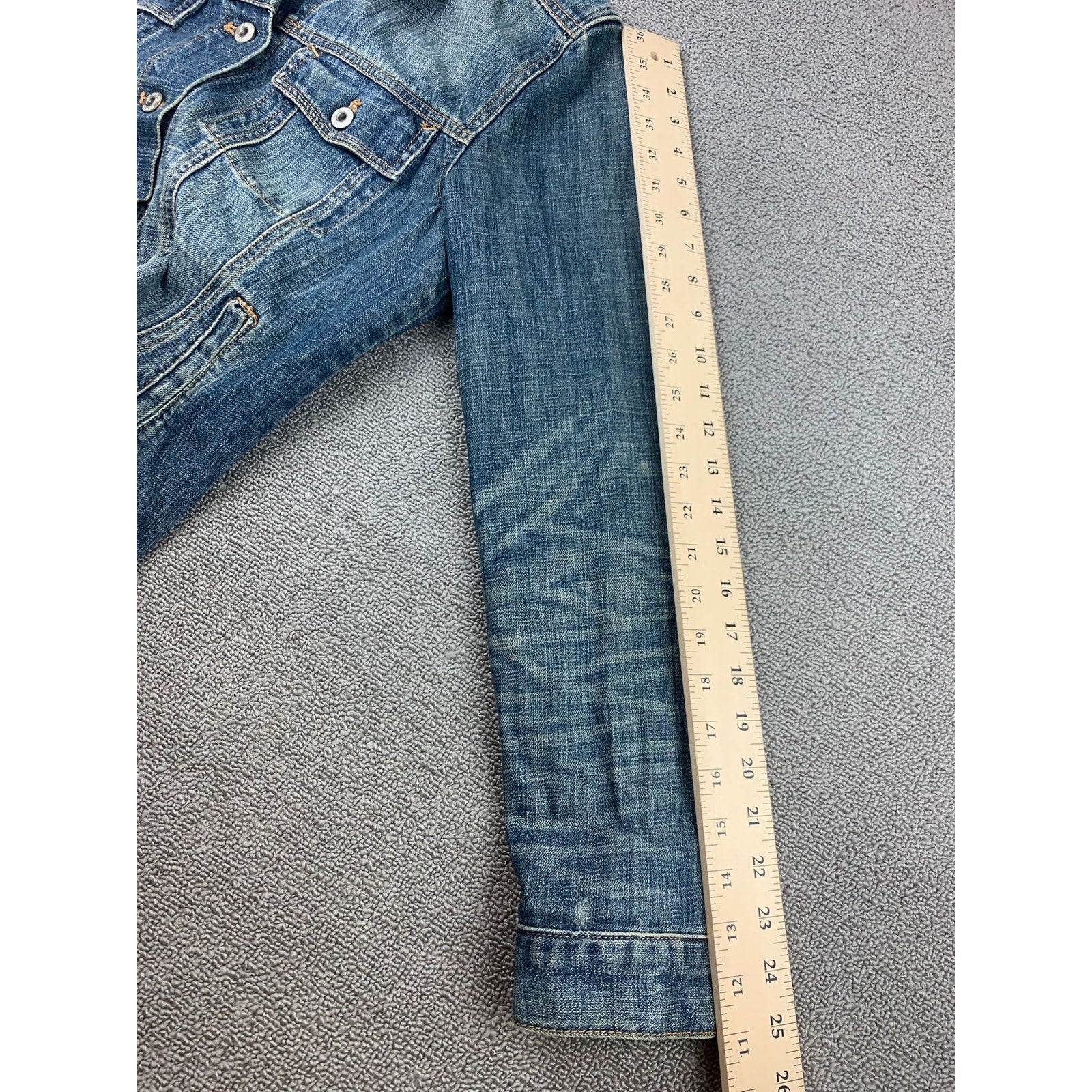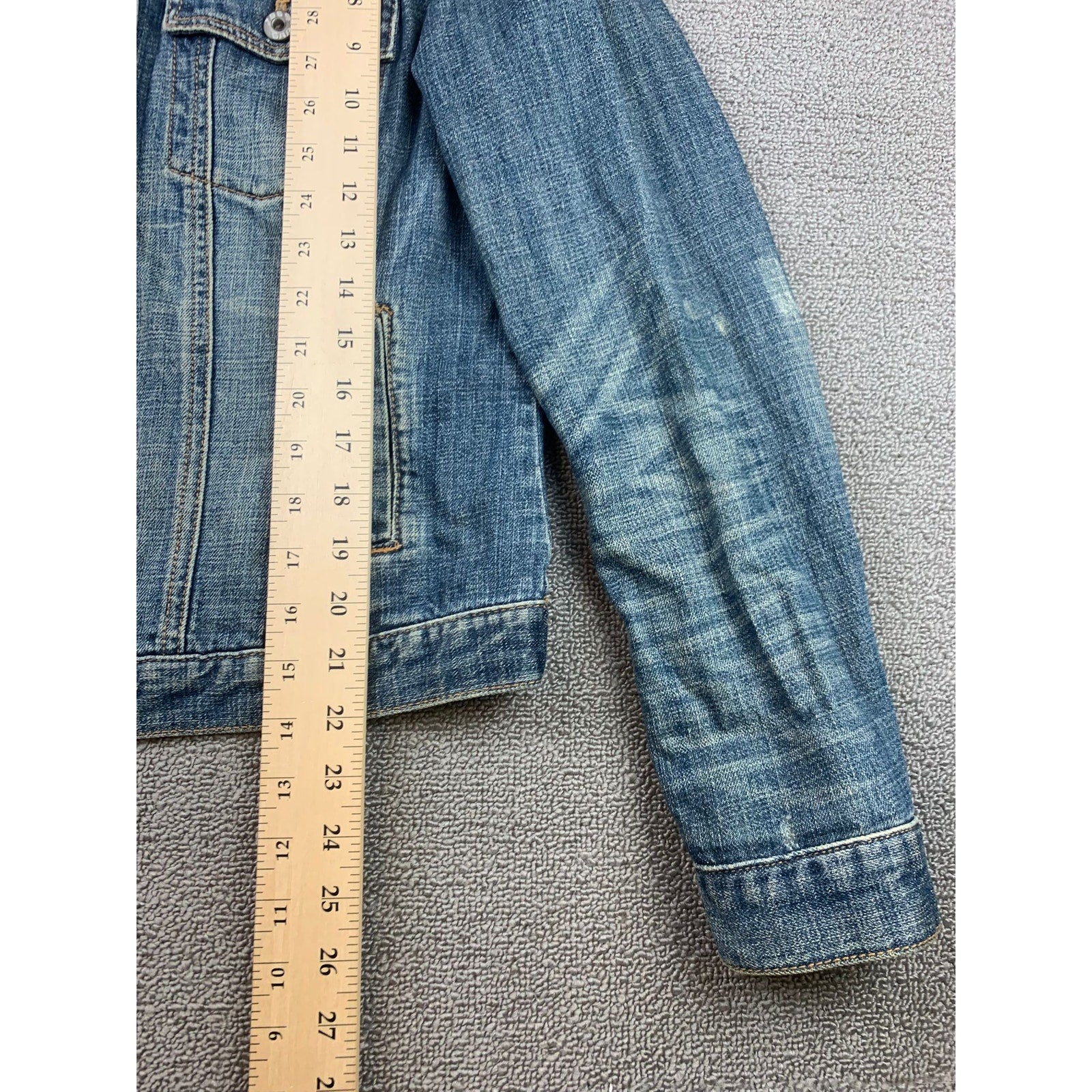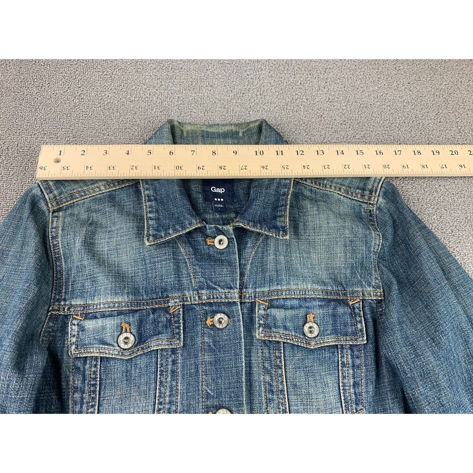 Vintage Y2K Gap Women's Large Blue Washed Distressed Fit Denim Jacket