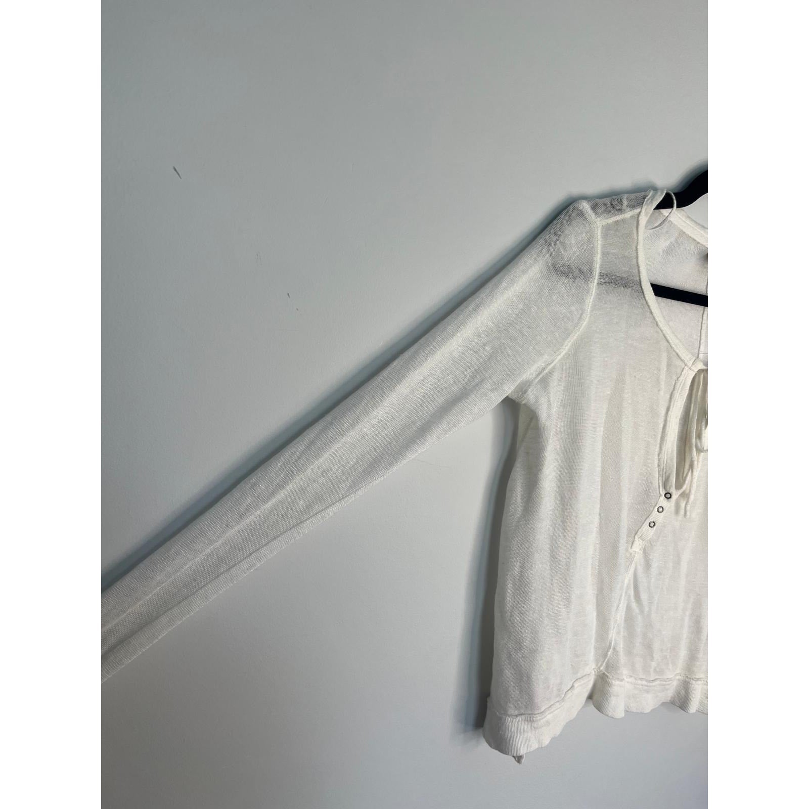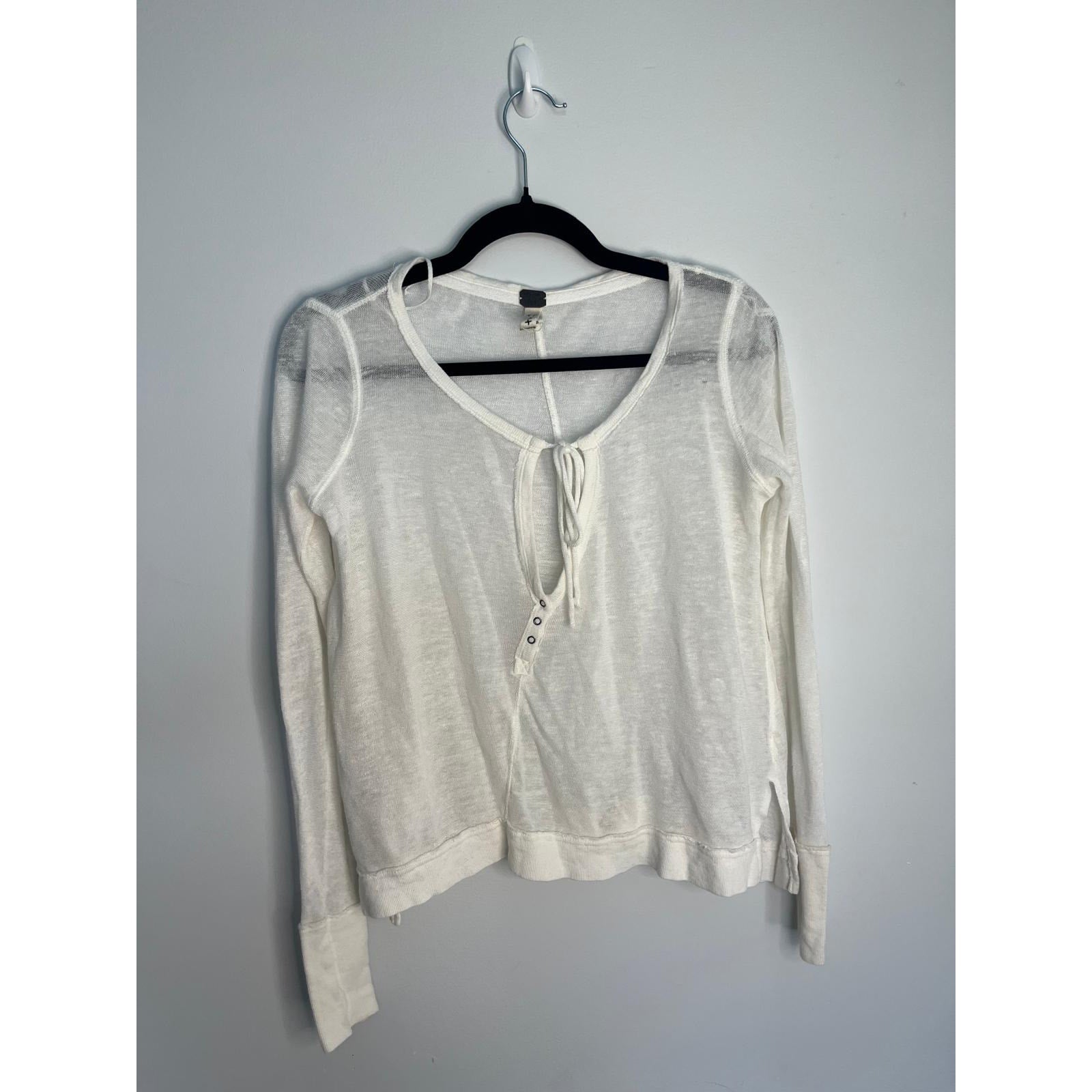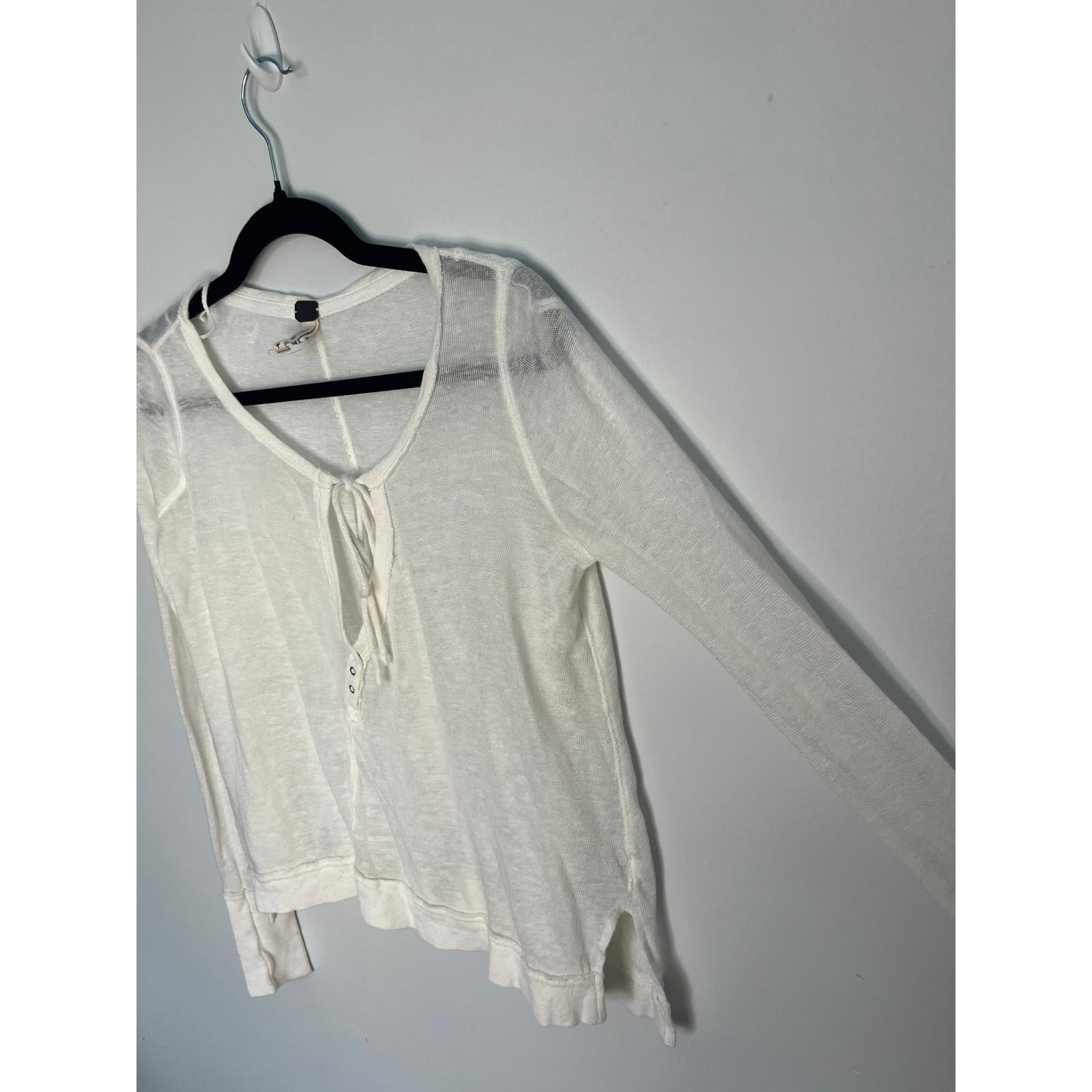 We The Free Long Sleeve Tie Front Top Women XS Sheer Layering Boho White