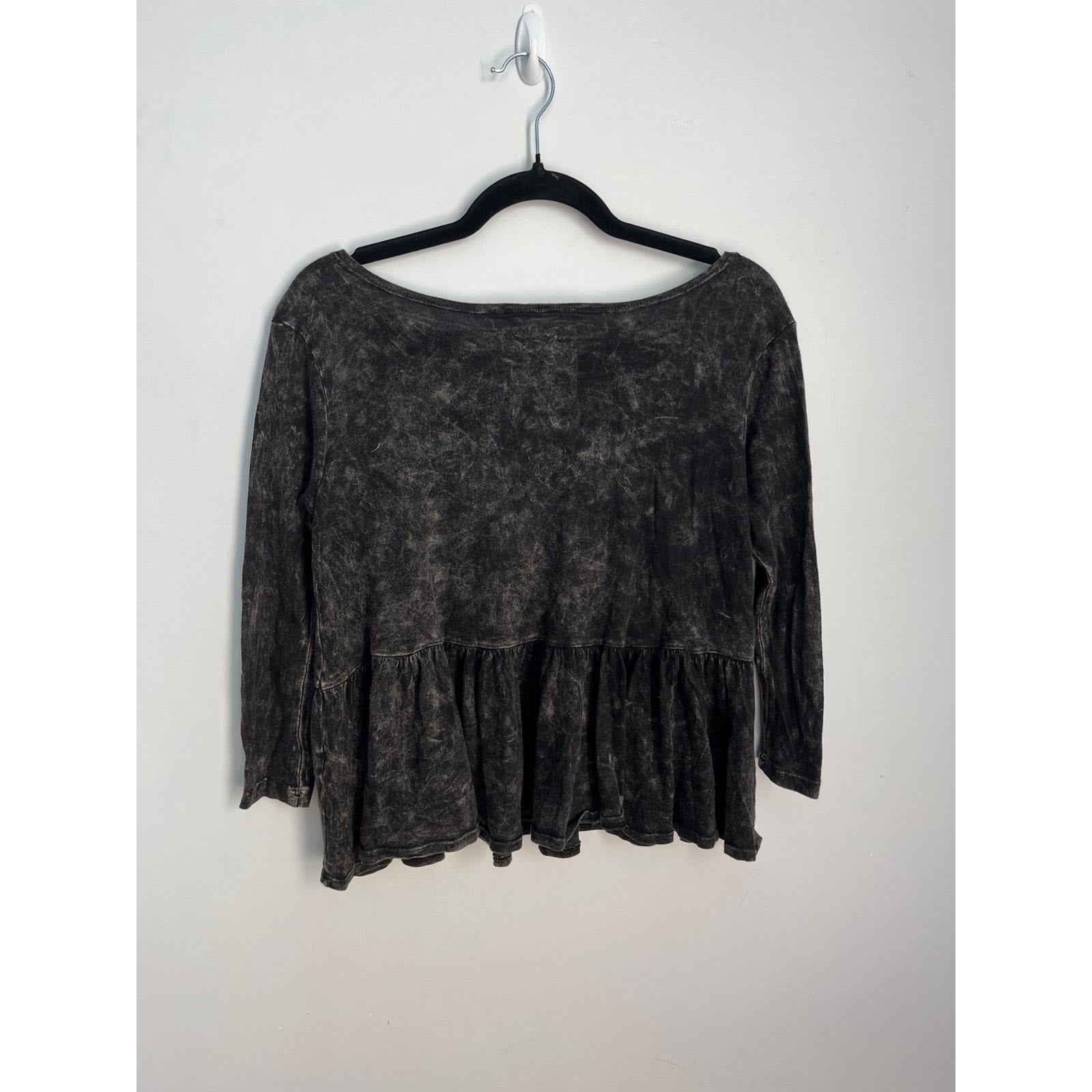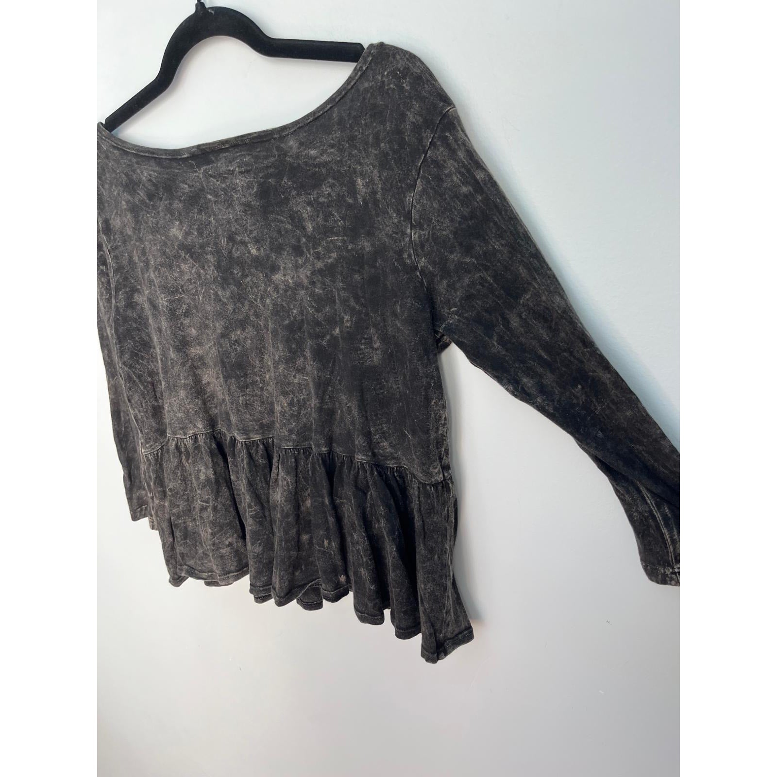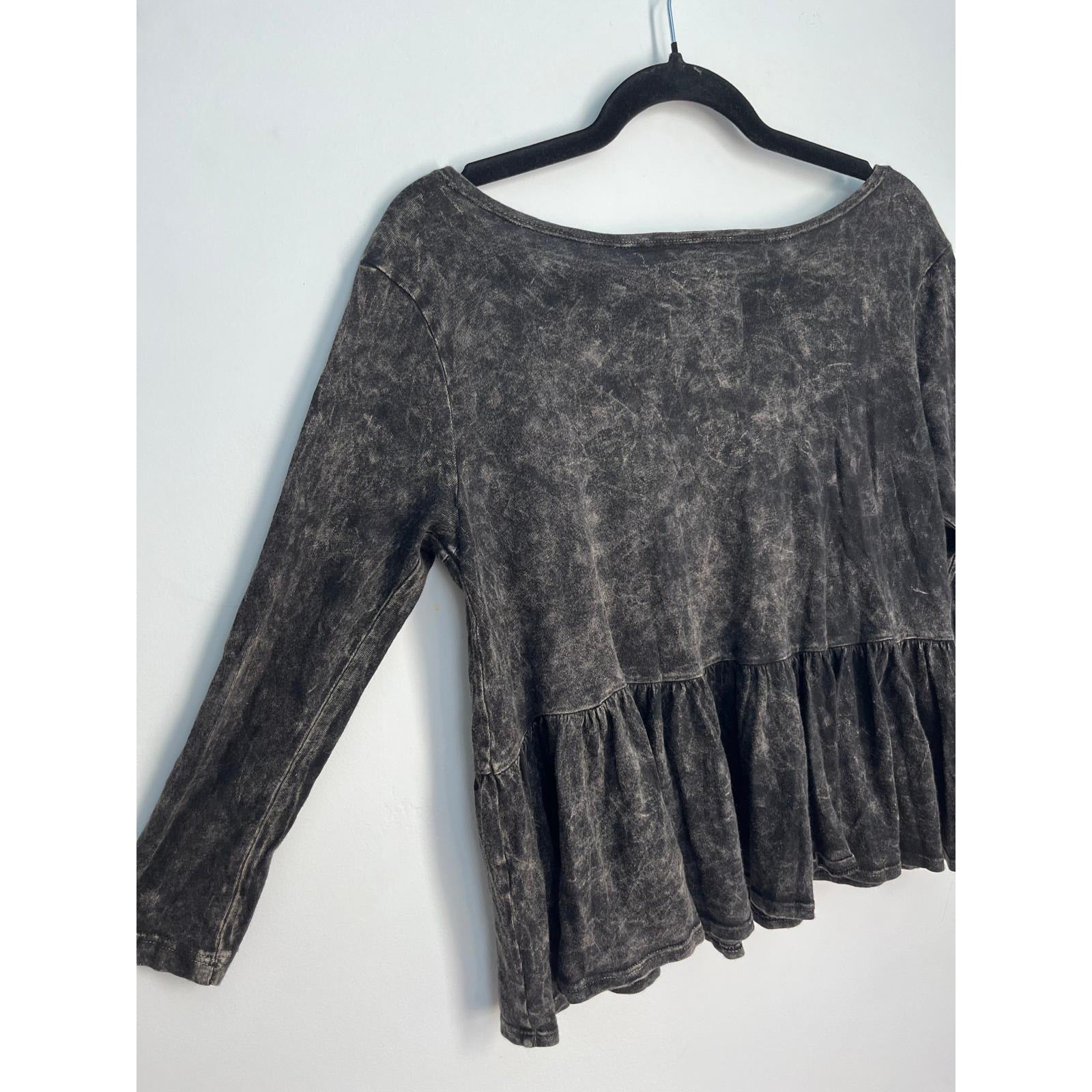 We The Free Project Social T Peplum Top Women XS Black Acid Wash Long Sleeve