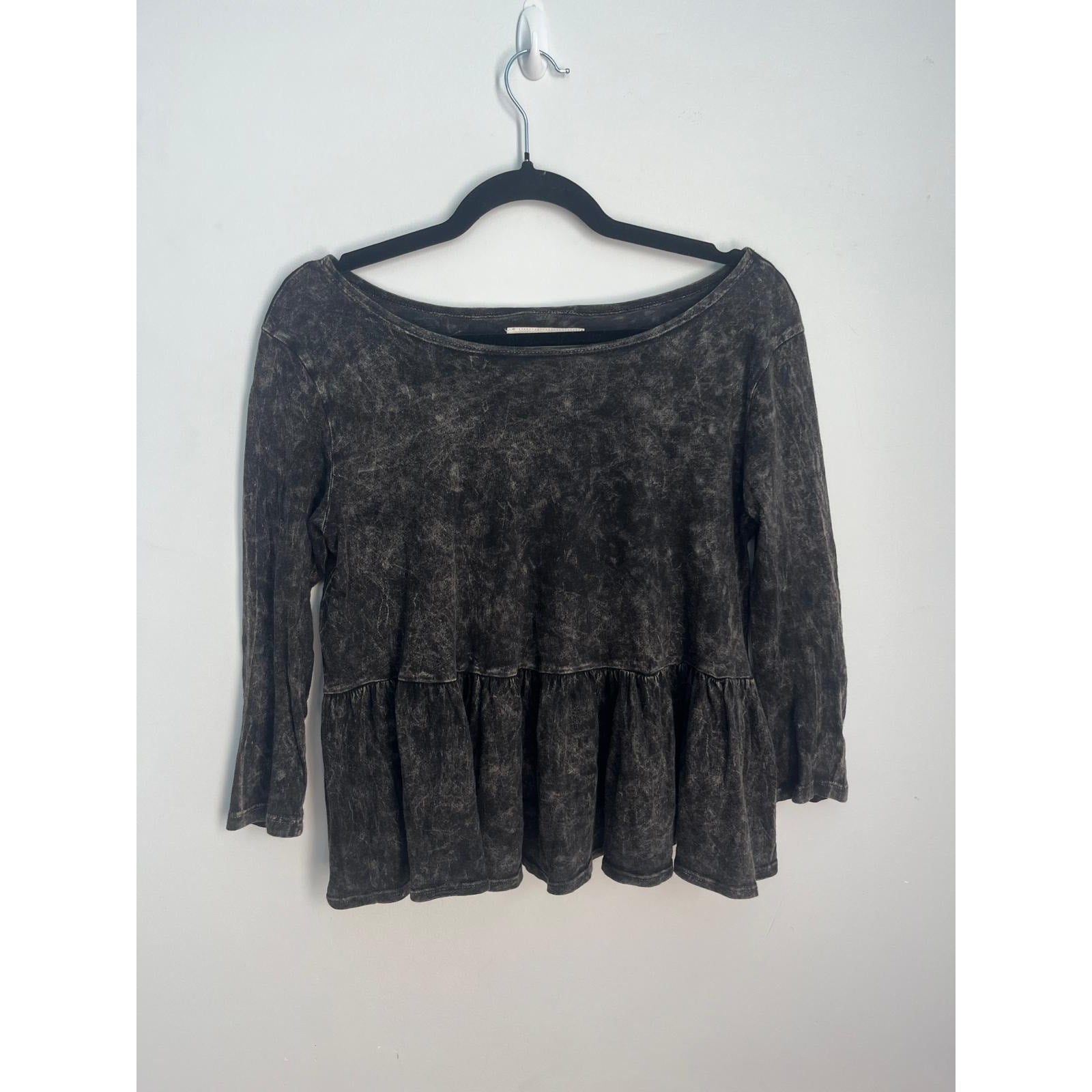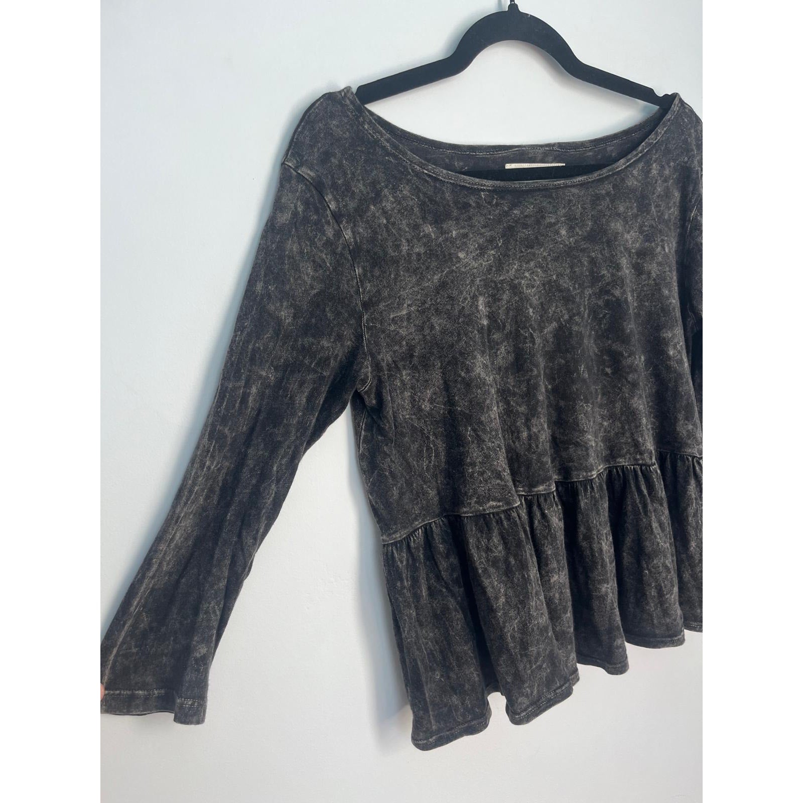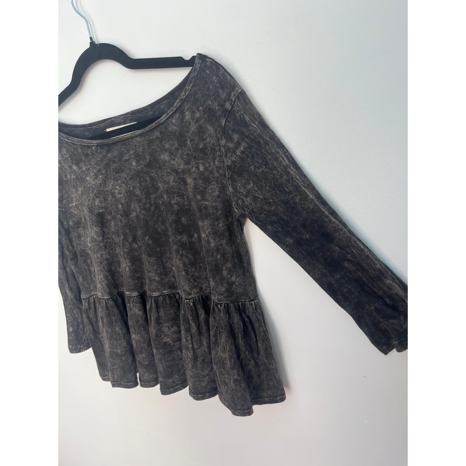 We The Free Project Social T Peplum Top Women XS Black Acid Wash Long Sleeve