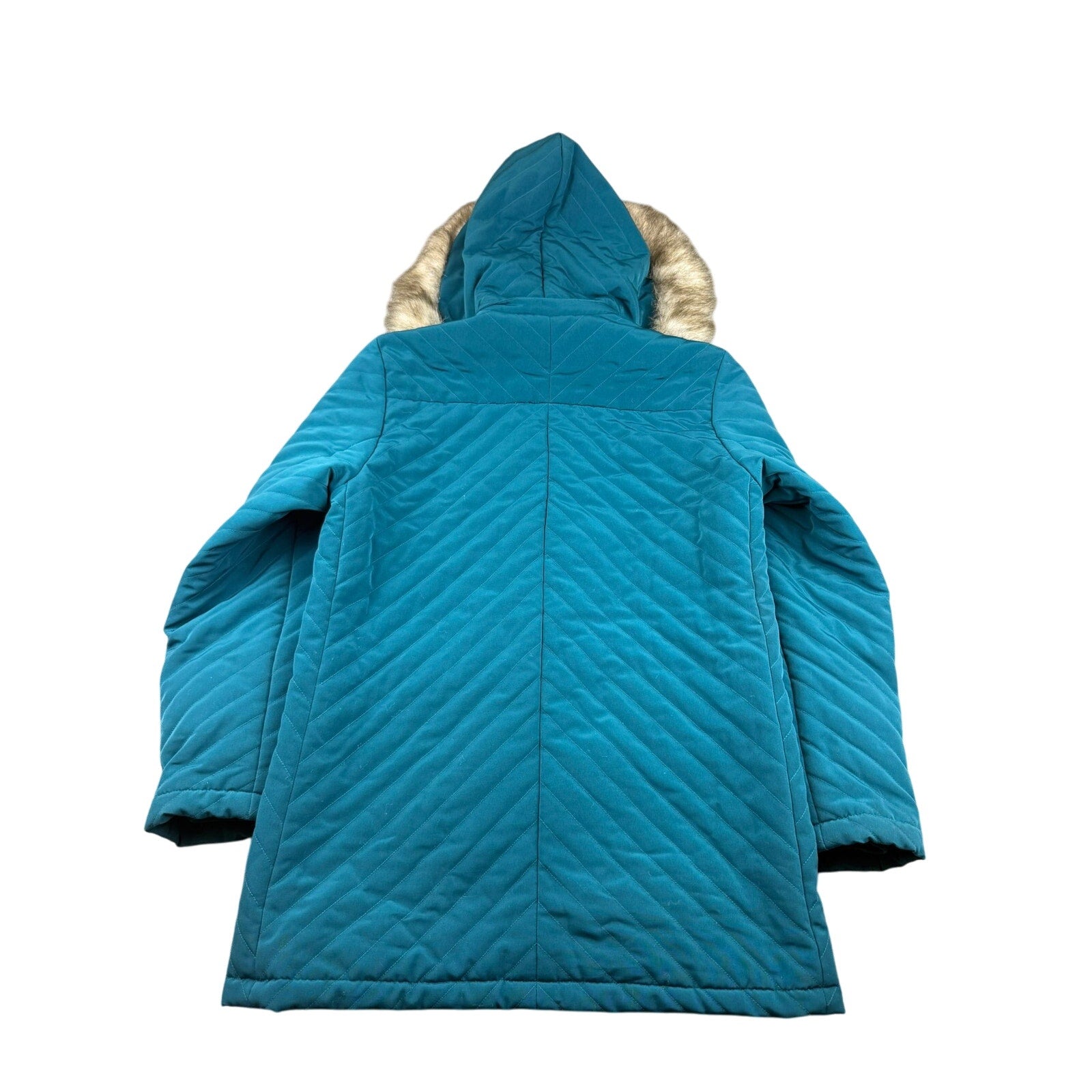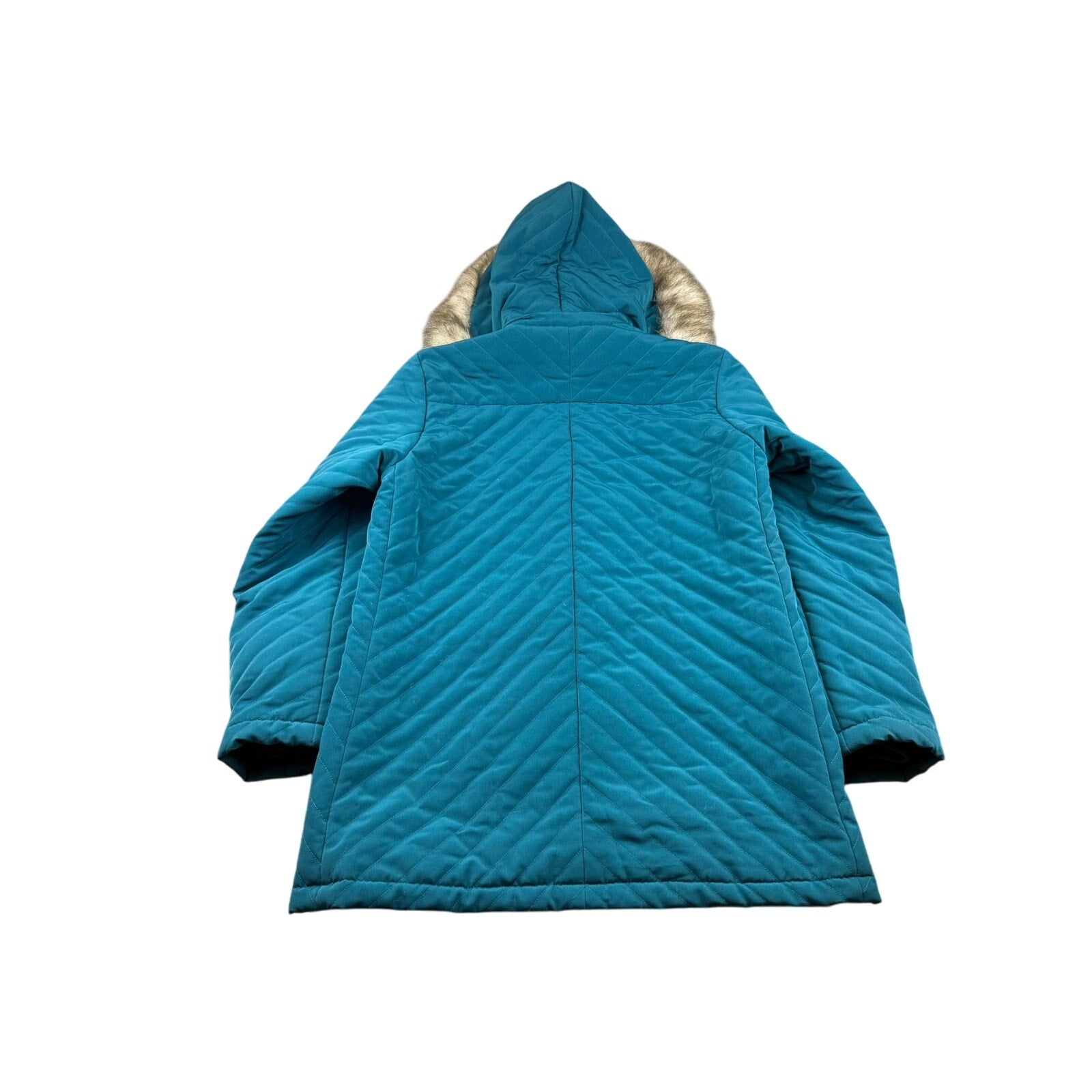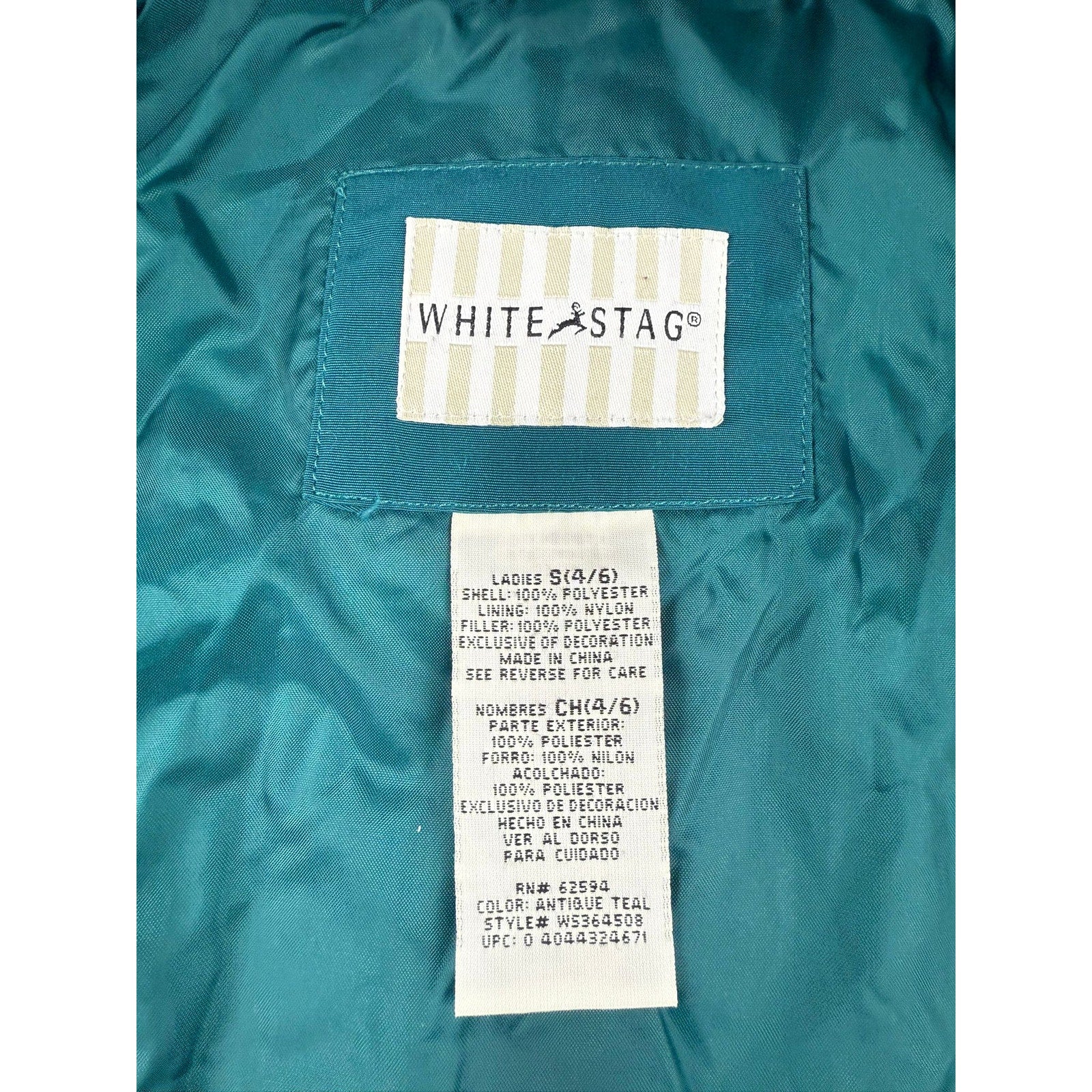 Stay warm in style with this White Stag women’s puffer coat in antique teal. Features a quilted design, full front zipper, detachable faux fur hood trim, and zippered side pockets. Perfect for cold weather and casual everyday wear.