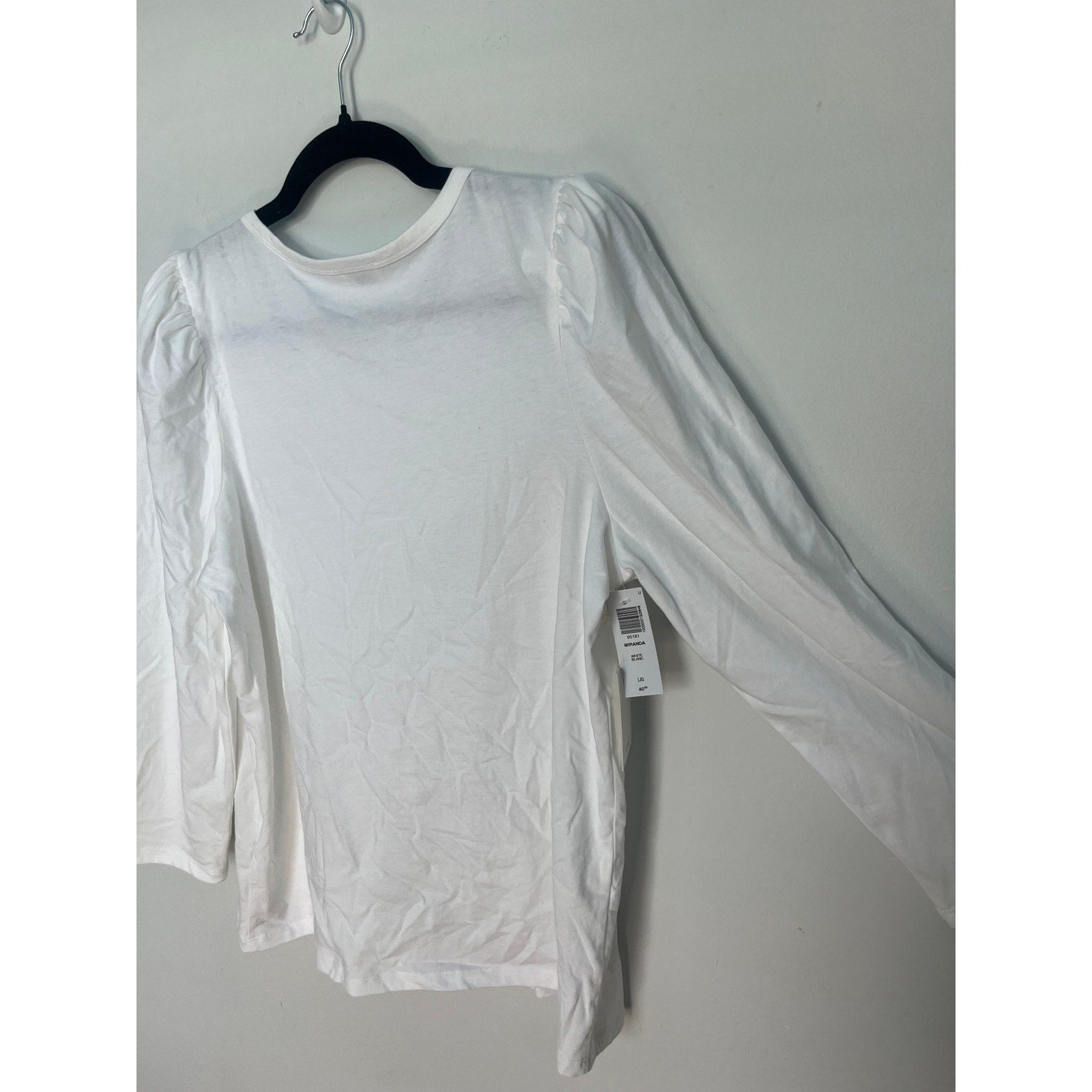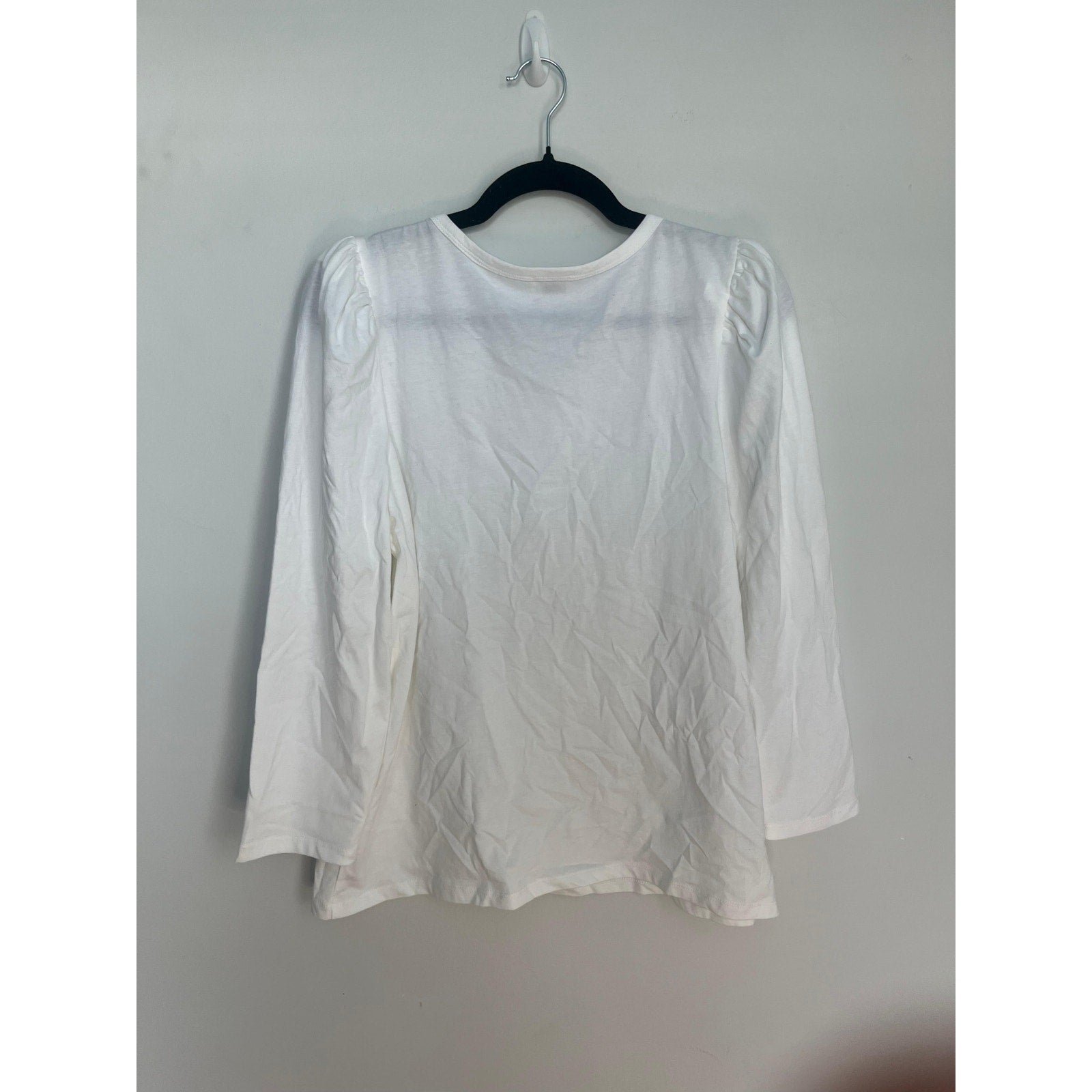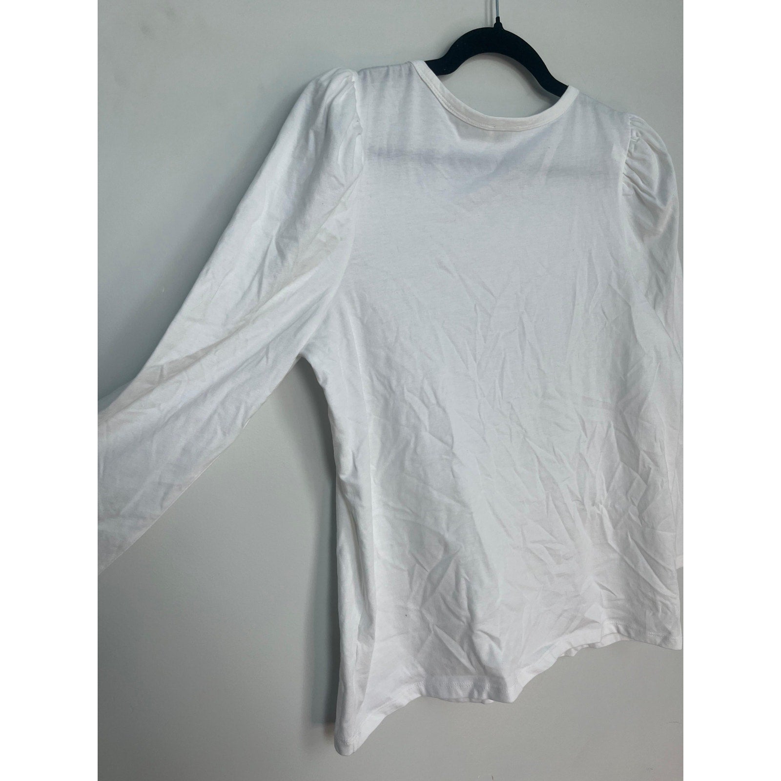 Classic long sleeve puff shoulder tee with a minimalist silhouette and subtle structure. Made from soft white cotton with slight stretch and a crew neckline.