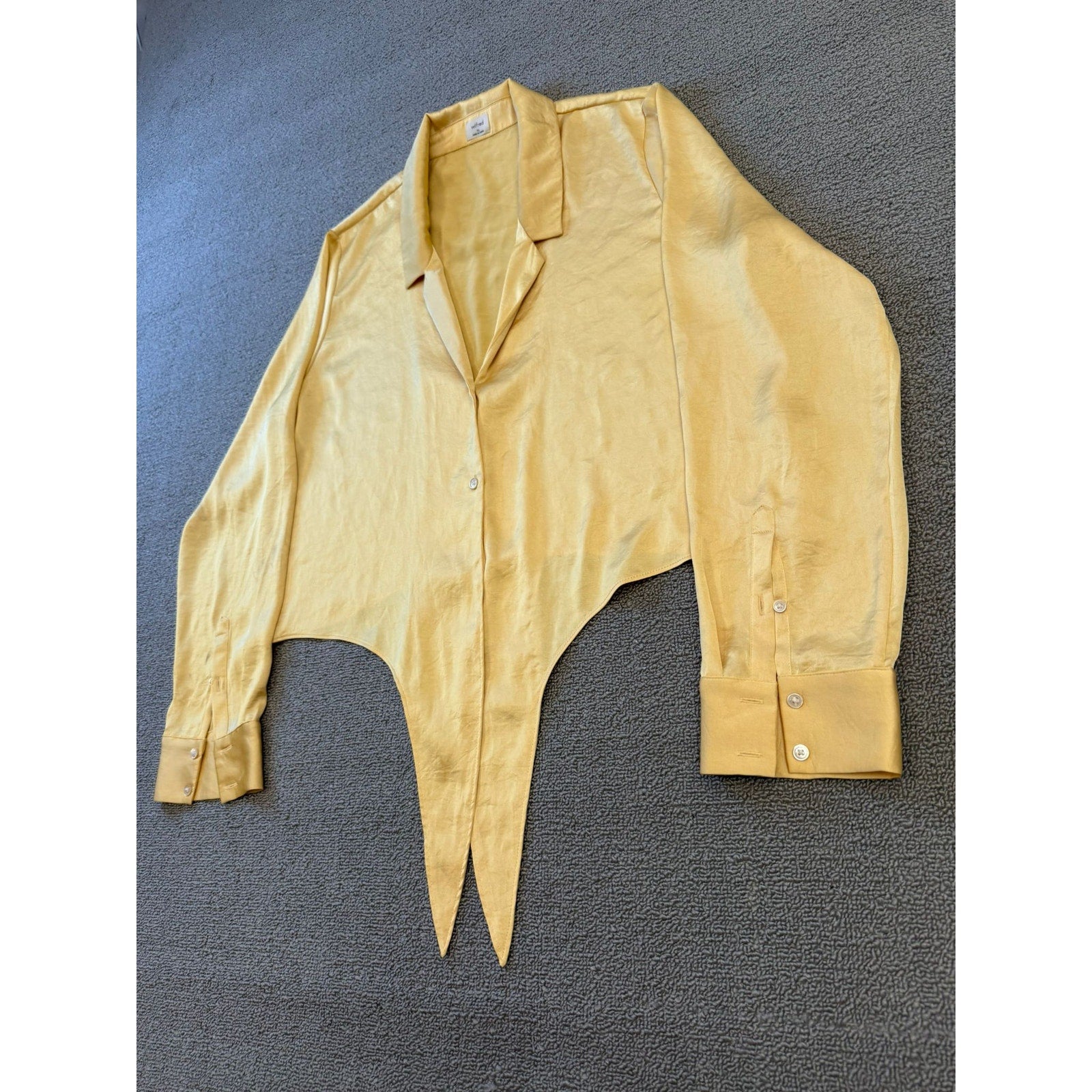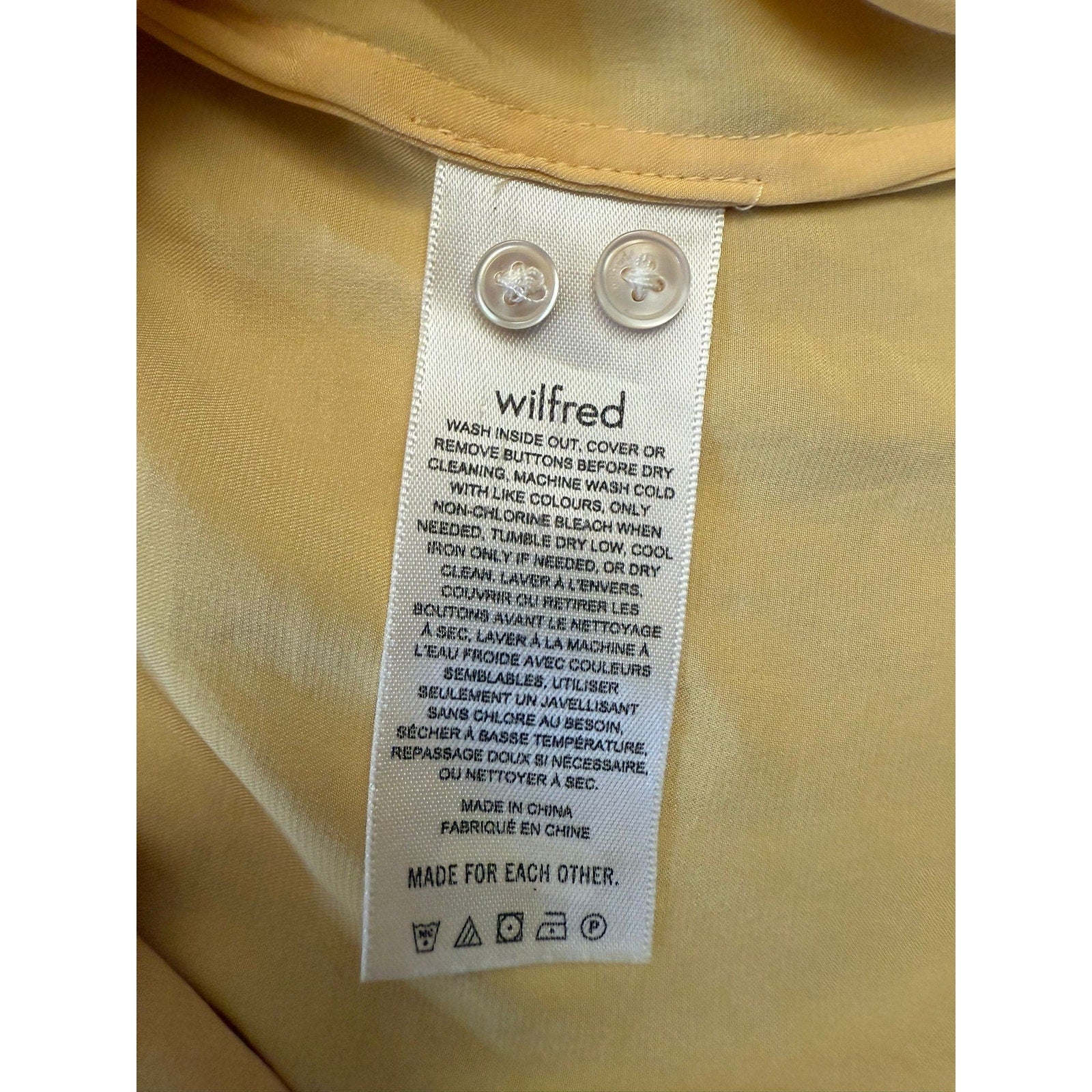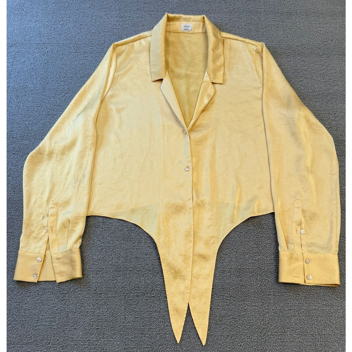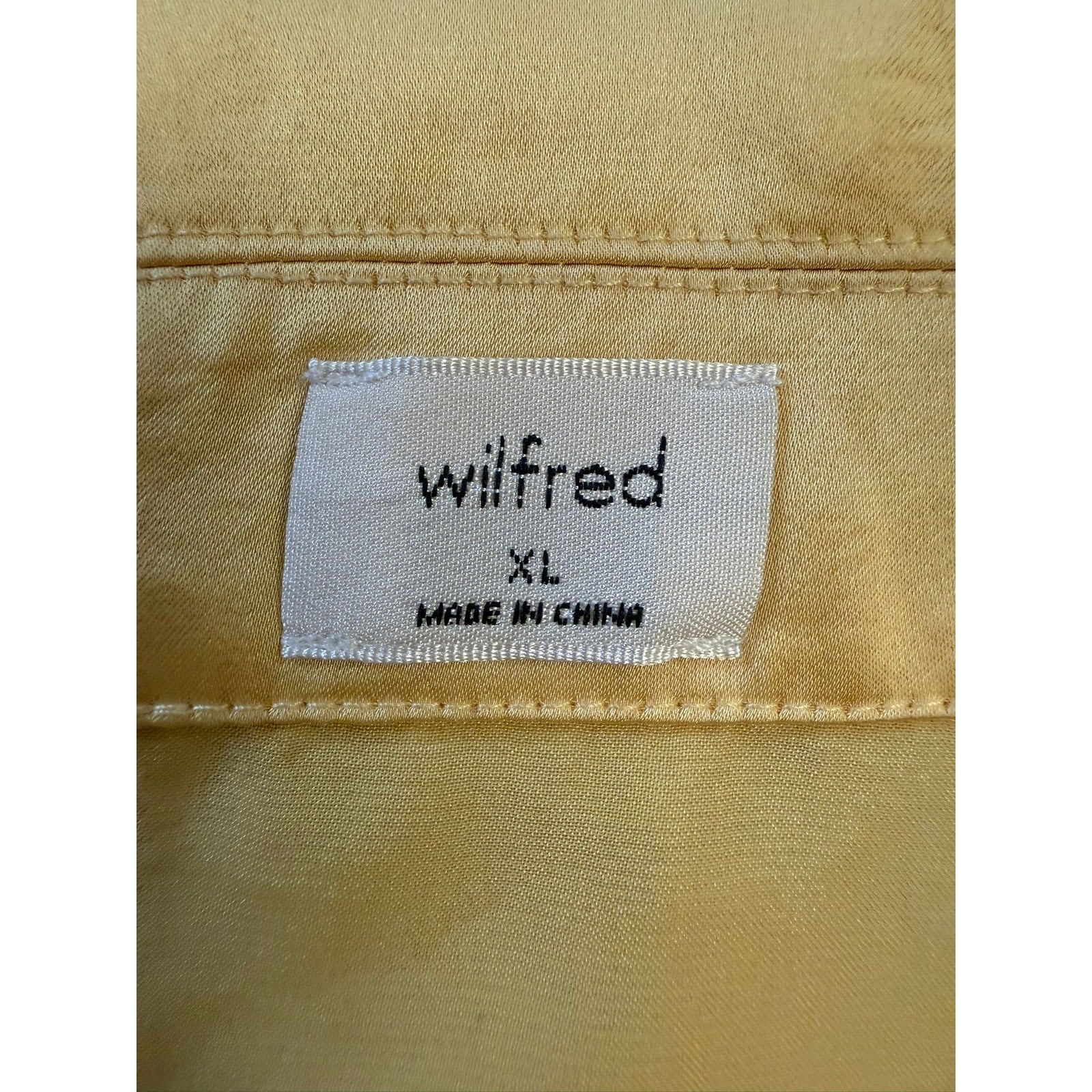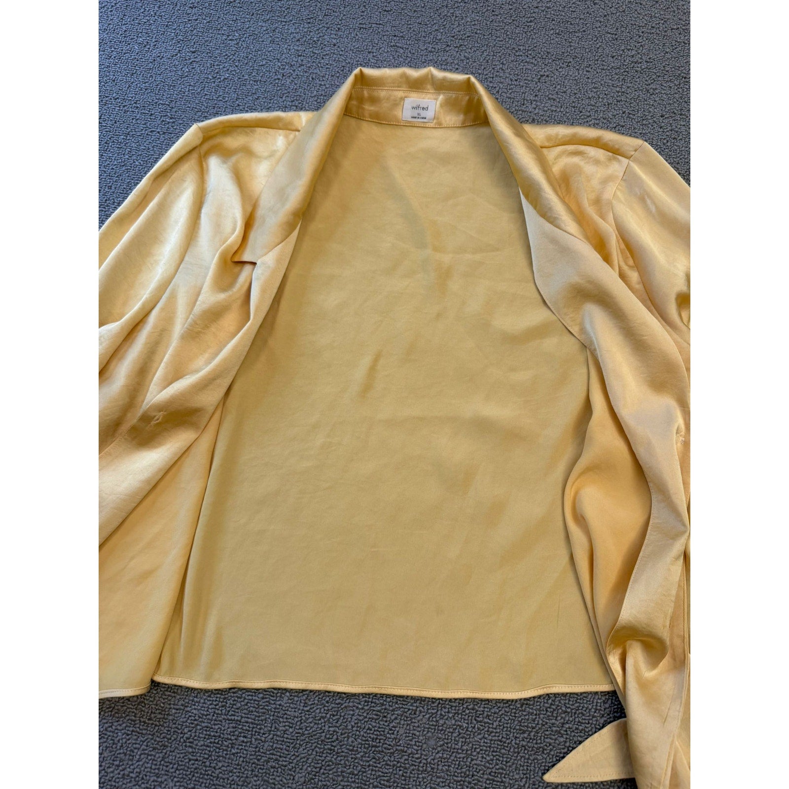 WILFRED Women's XL Yellow Tie-Front Satin Blouse with Long Sleeves and Button-Up Top