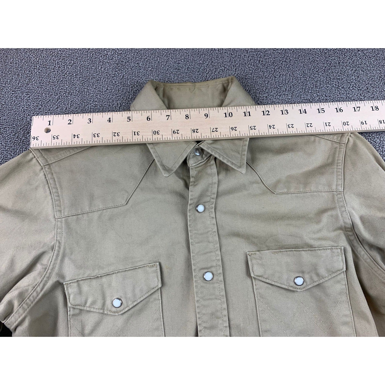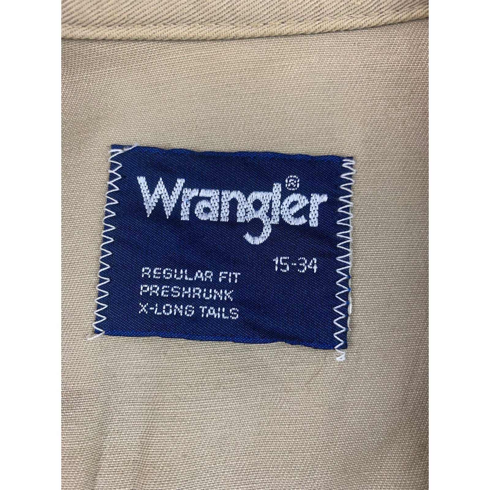 Wrangler Western Snap Shirt Mens 15 34 Khaki Beige Pearl Long Sleeve Regular Fit