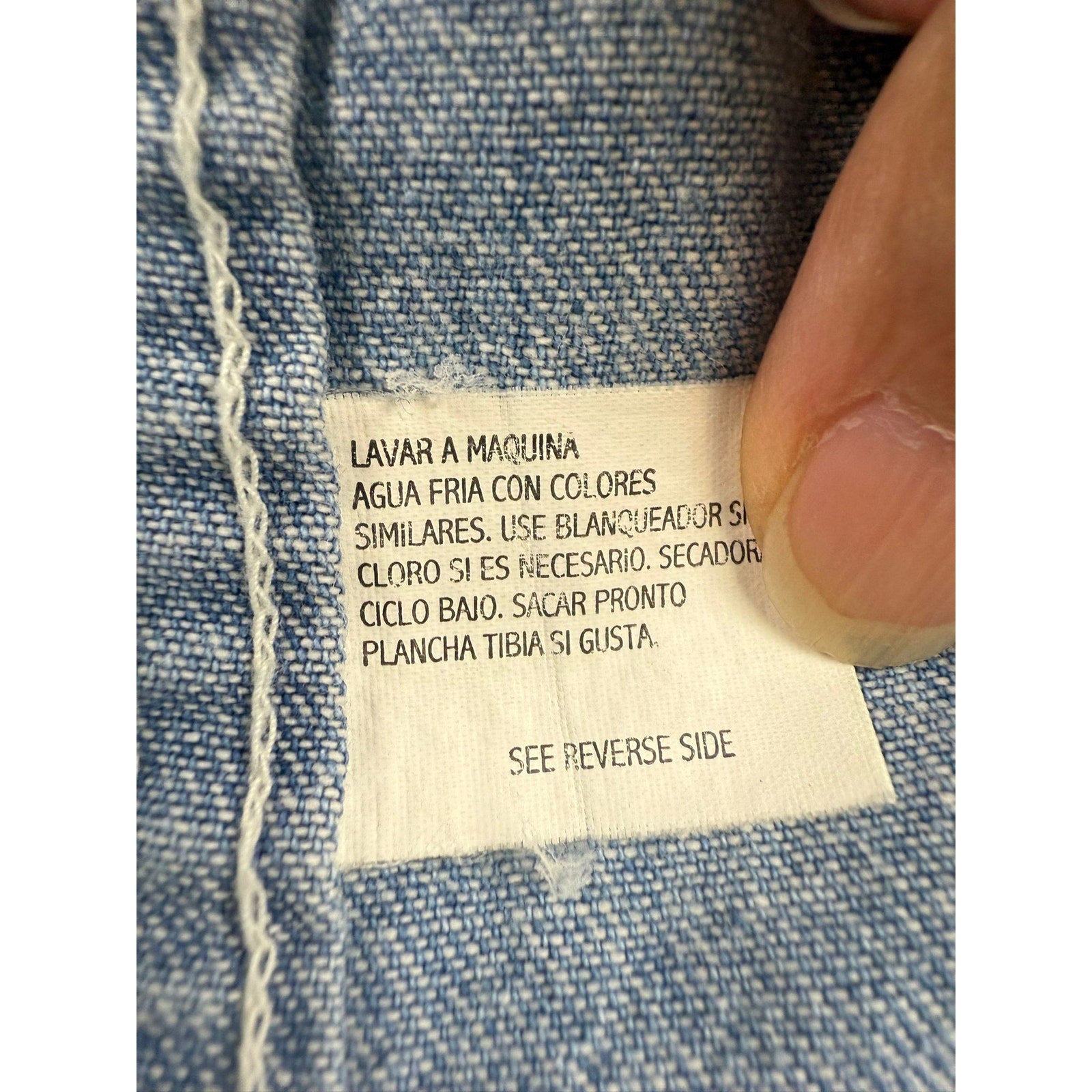 Classic denim work shirt with button front, two button flap chest pockets, and curved hem. Small embroidered logo with Italy flag at left chest. Made in Bangladesh, materials made of cotton.