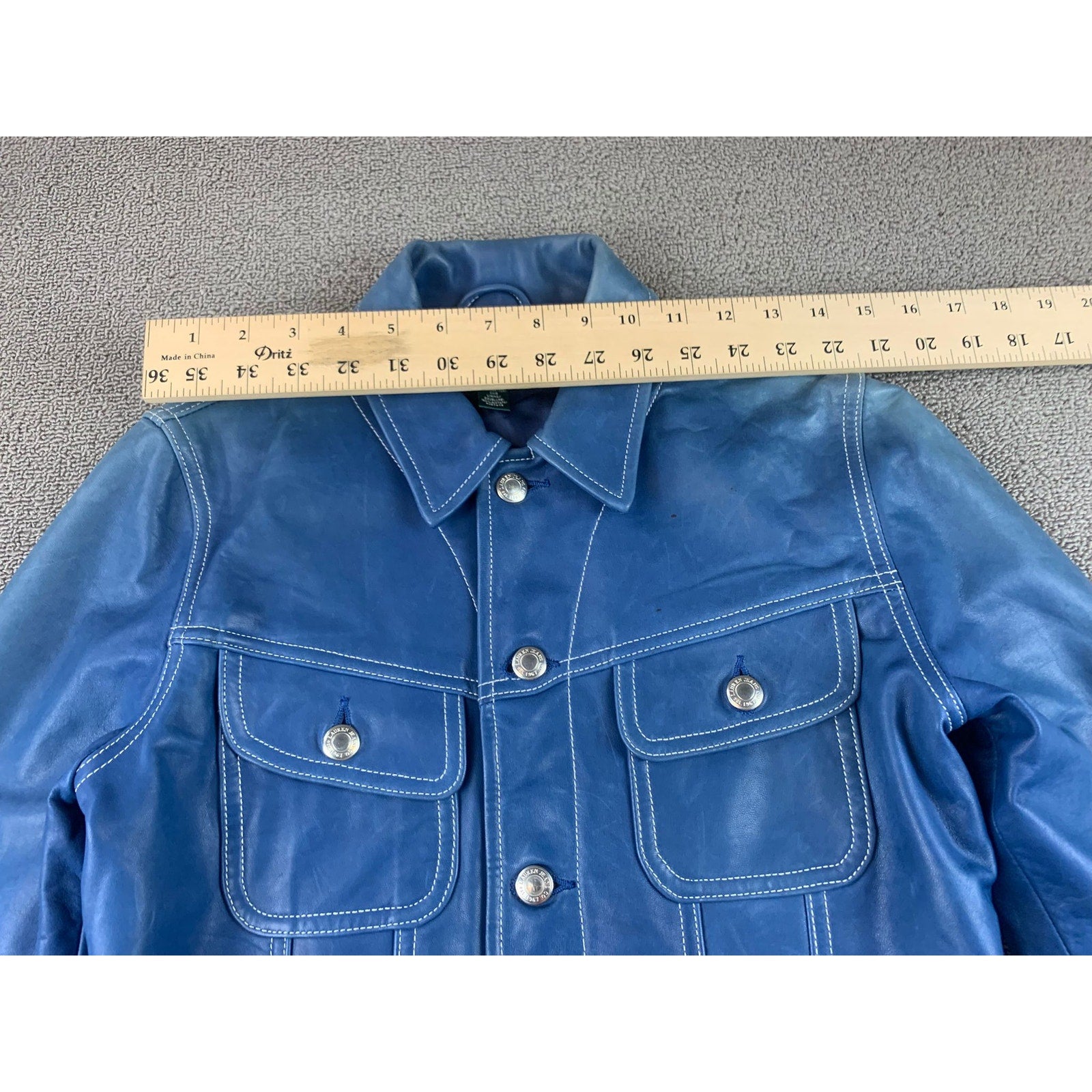 Y2K Lauren Ralph Lauren Women's Medium Blue 100% Leather Trucker Jacket