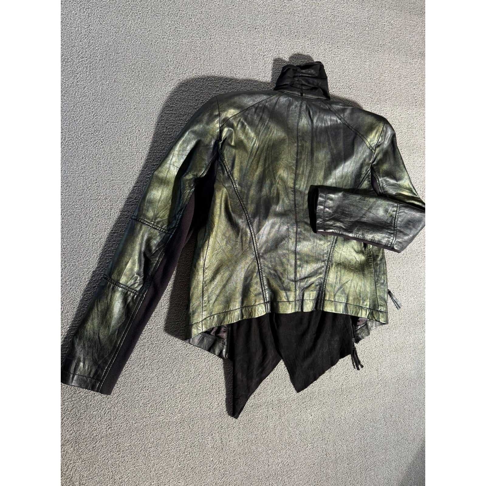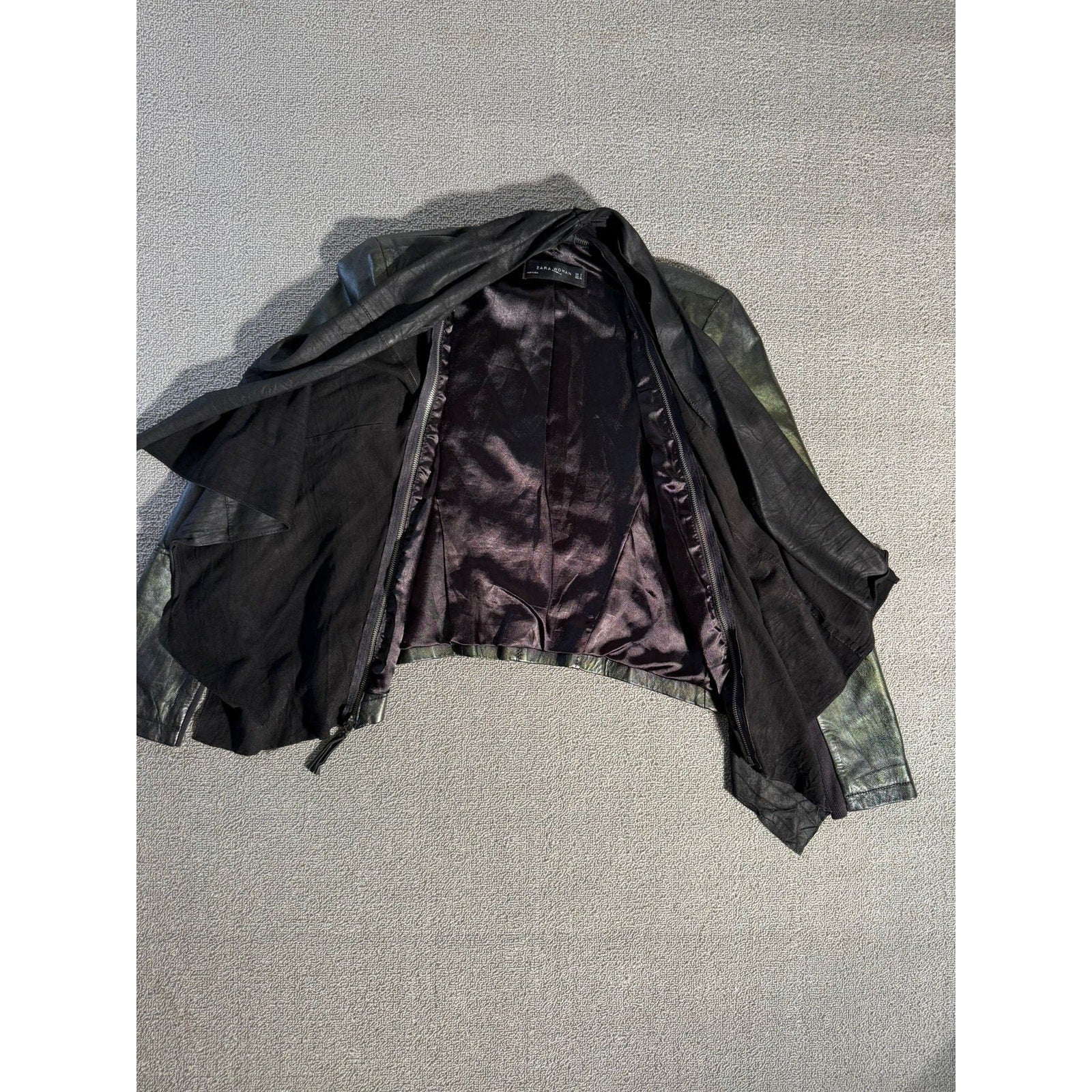 Zara Woman Black Waterfall Draped Leather Jacket S Fall Goth