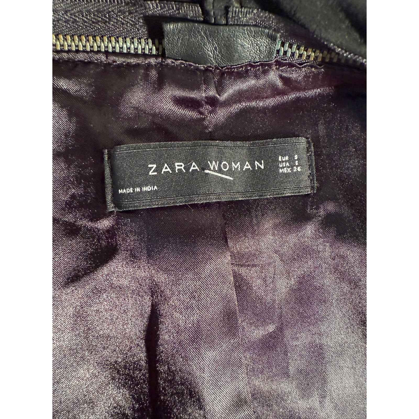 Sophisticated black waterfall‑style leather jacket from Zara Woman featuring a draped open front, sleek tailoring, and textured paneling—modern and versatile for layering.