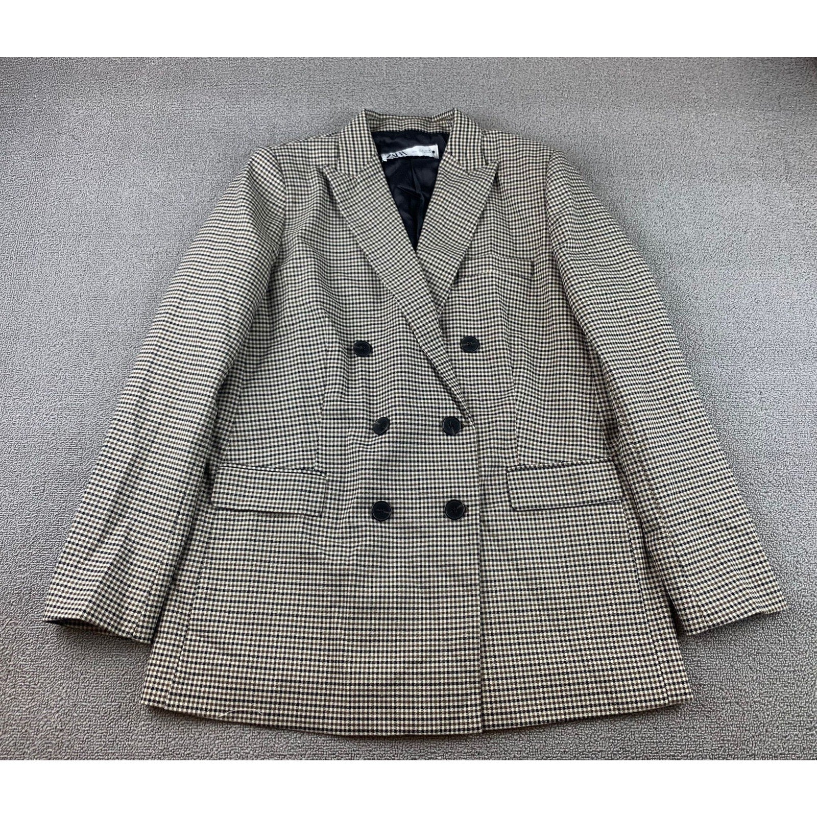 Zara Women's Large Plaid Doble Breasted Blazer Fall Winter