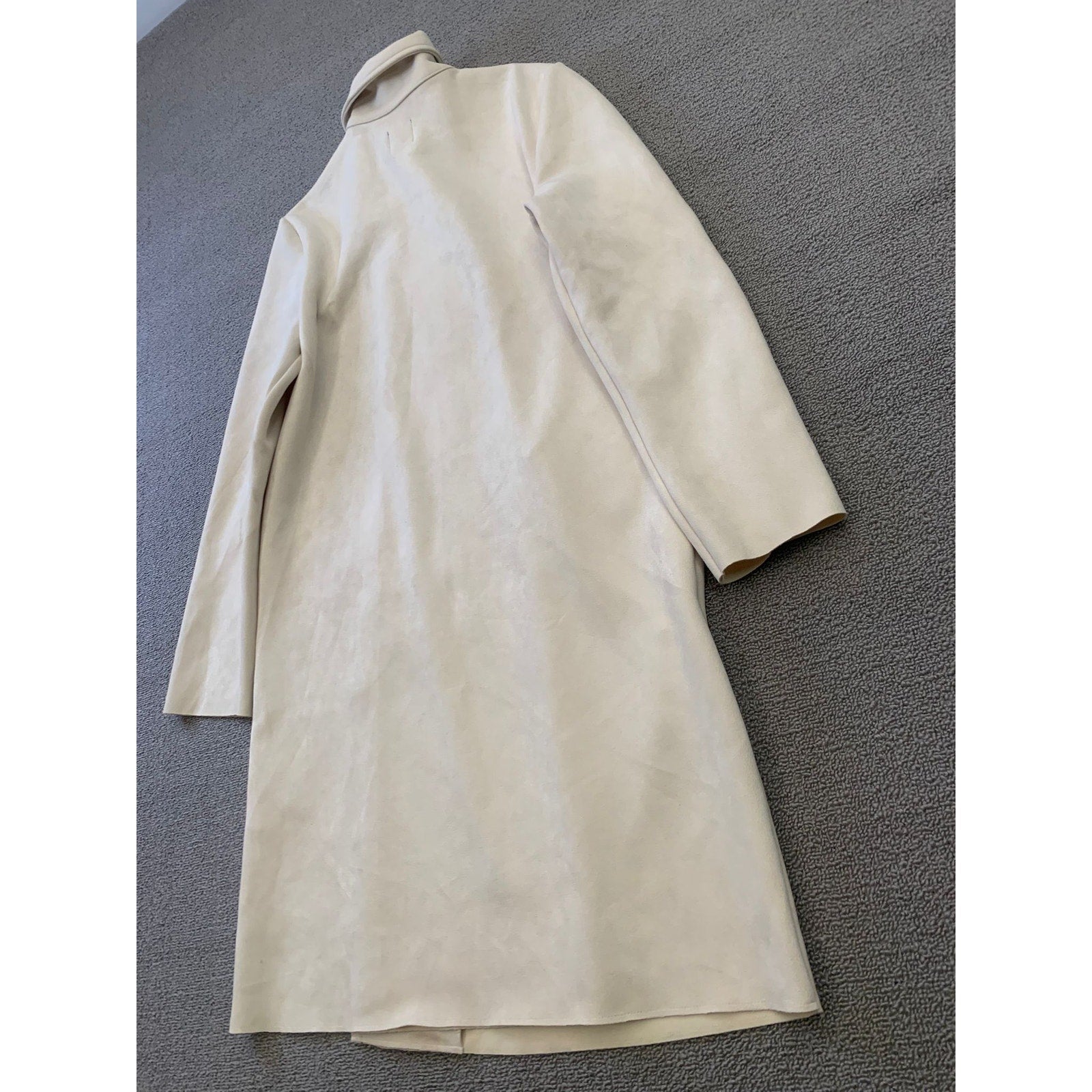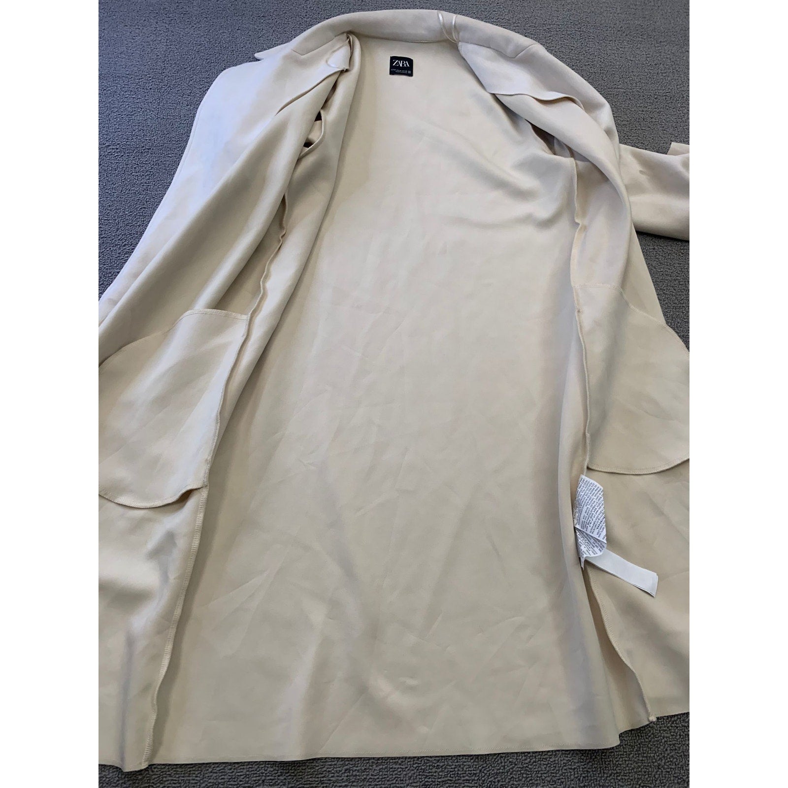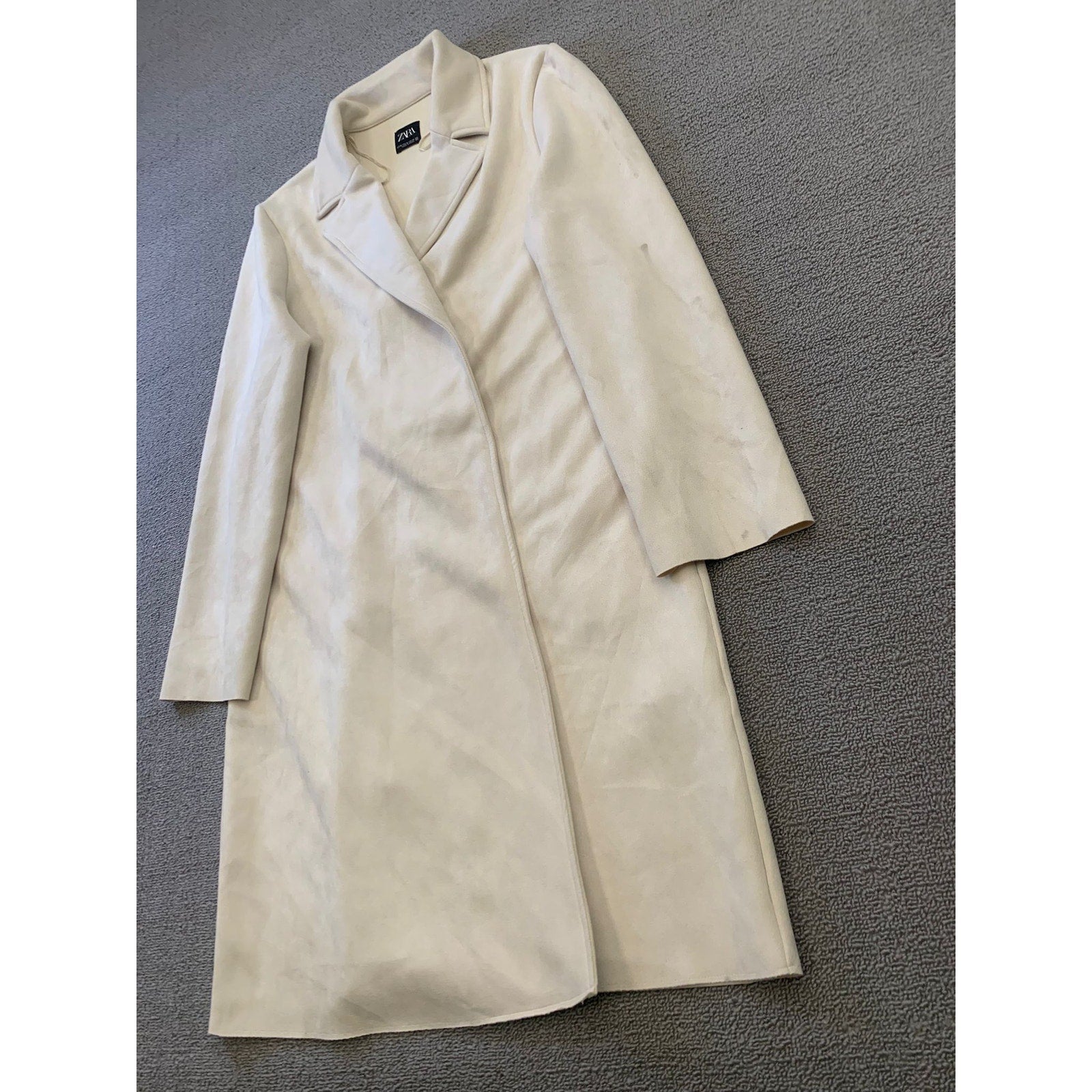 A Zara long coat, minimalist tailoring with a notch lapel collar and an open‑front silhouette. The mid‑weight fabric drapes softly for a sleek, polished look—perfect for styling over both workwear and weekend outfits.
