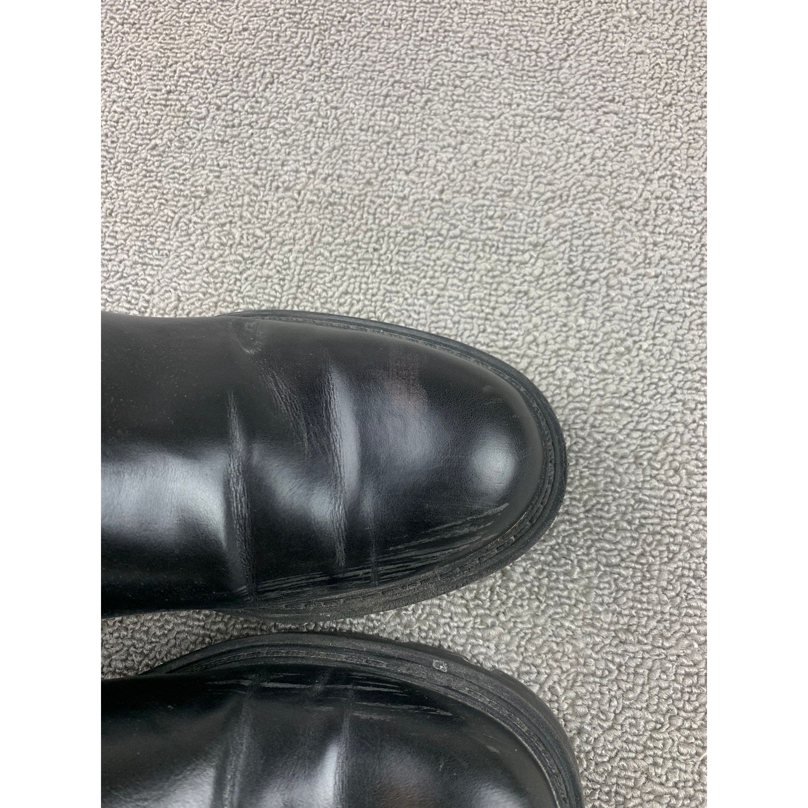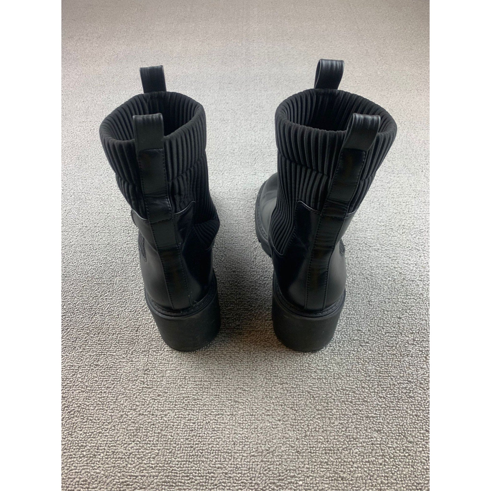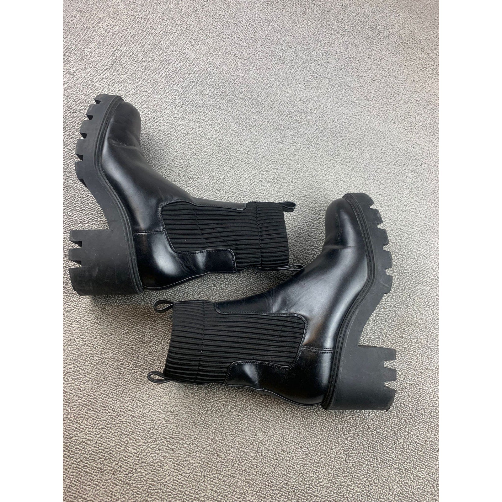 Zara Womens Sz 40 Black Faux Leather Chelsea Boots Lug Sole Ribbed Sock Mid Calf