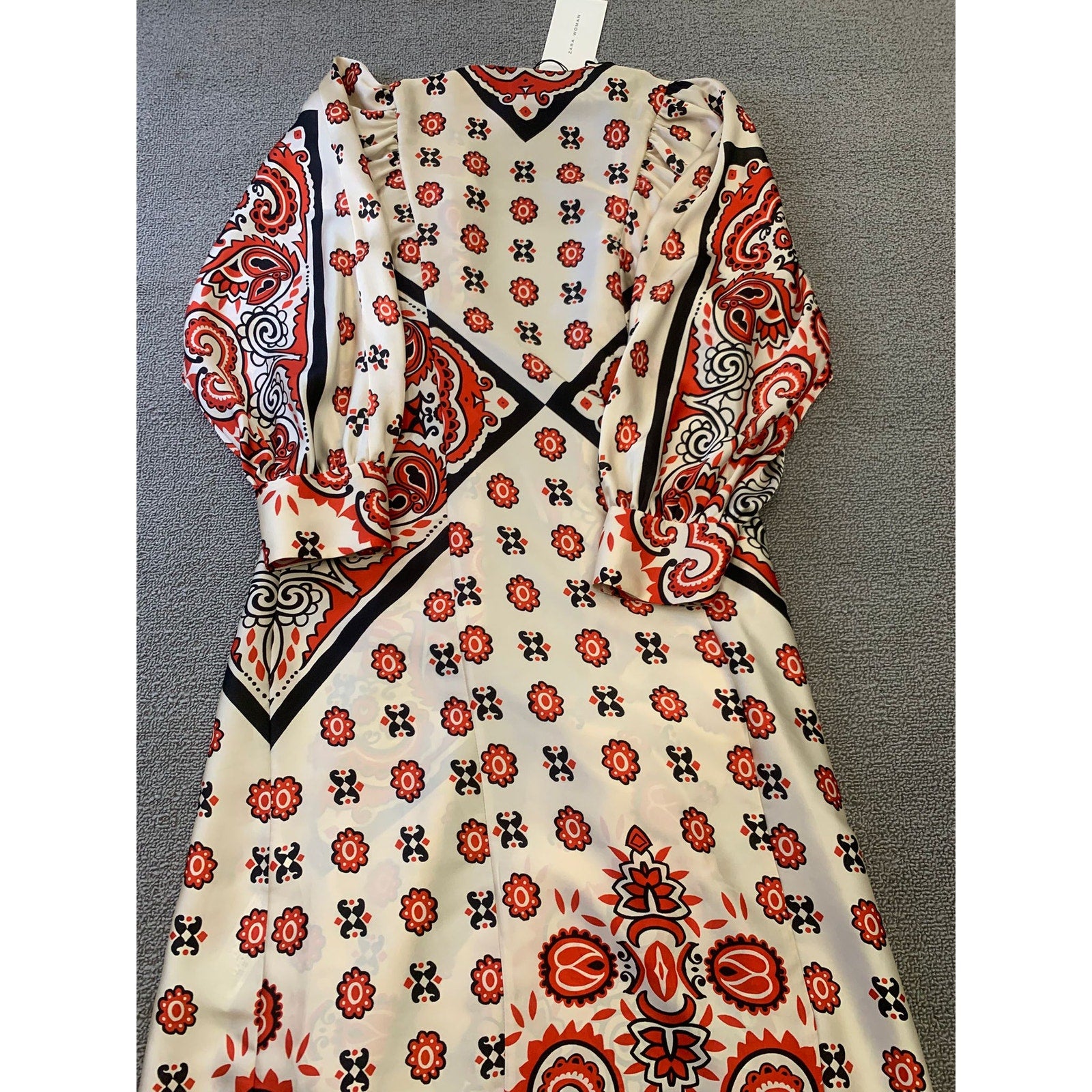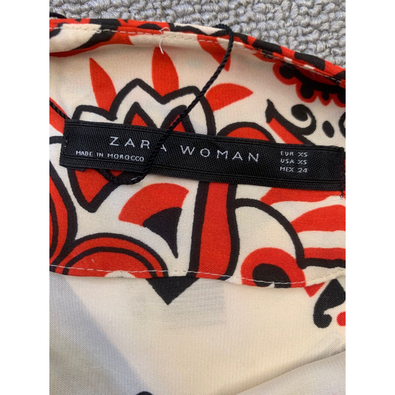 Zara Women's XS White Red Black Patterned Long Sleeve Dress