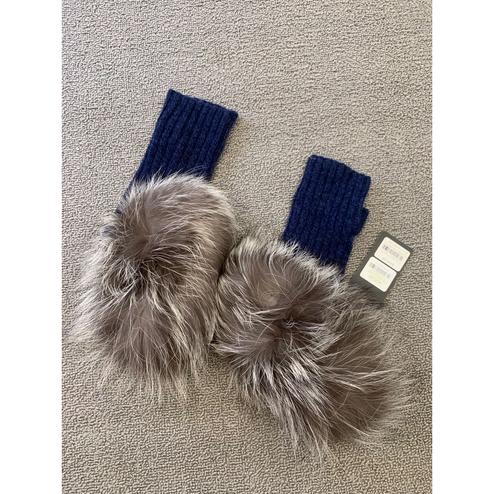 Luxurious and stylish, these Zoe Couture fingerless gloves are crafted from soft cashmere with statement fur trim at the cuffs. The navy blue knit adds a chic touch while the fur cuffs provide warmth and elegance, perfect for cold-weather layering.